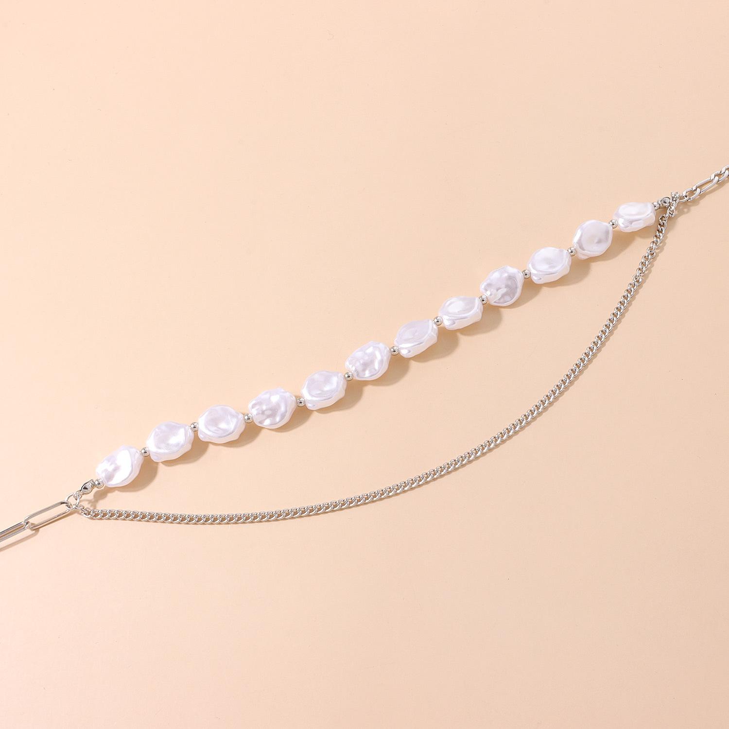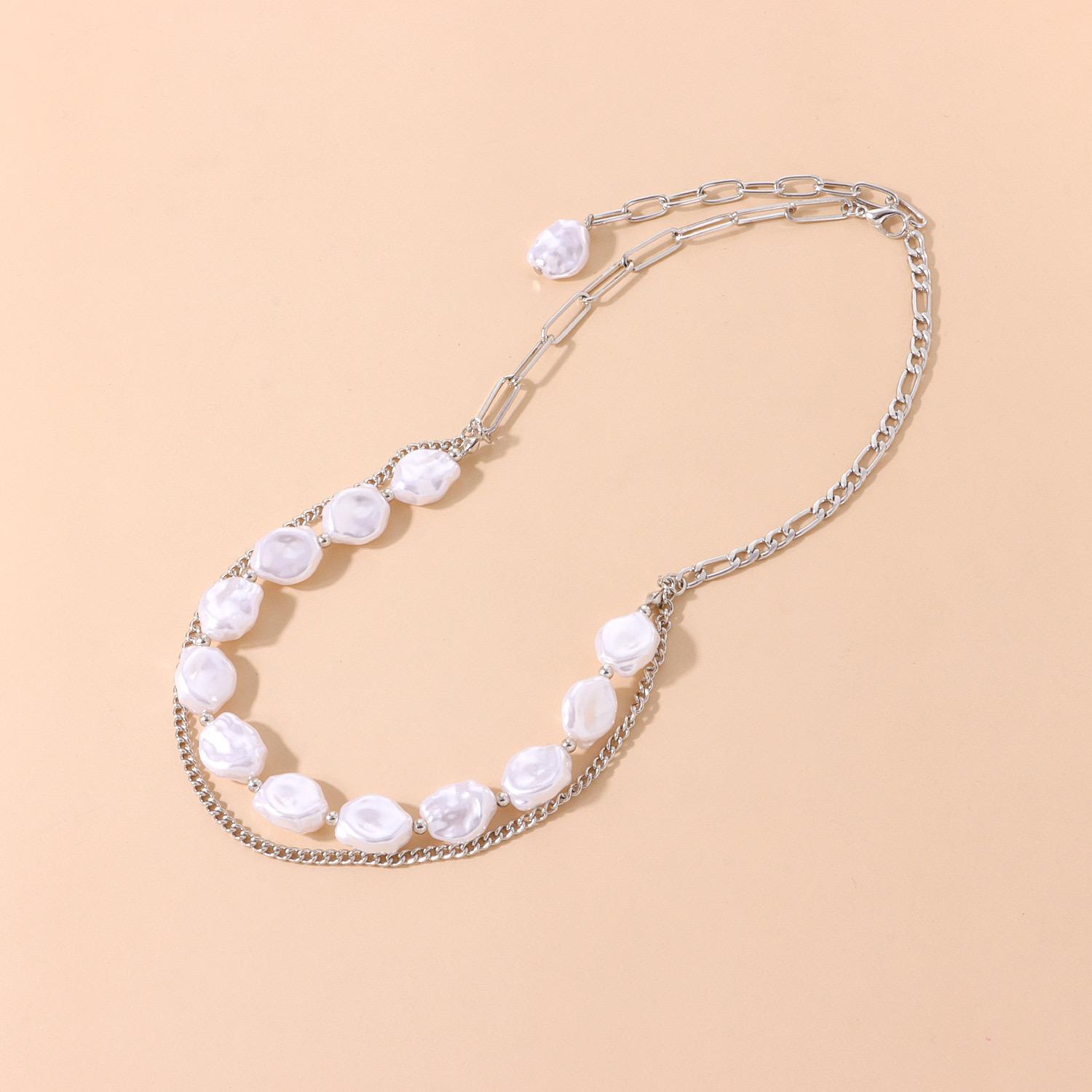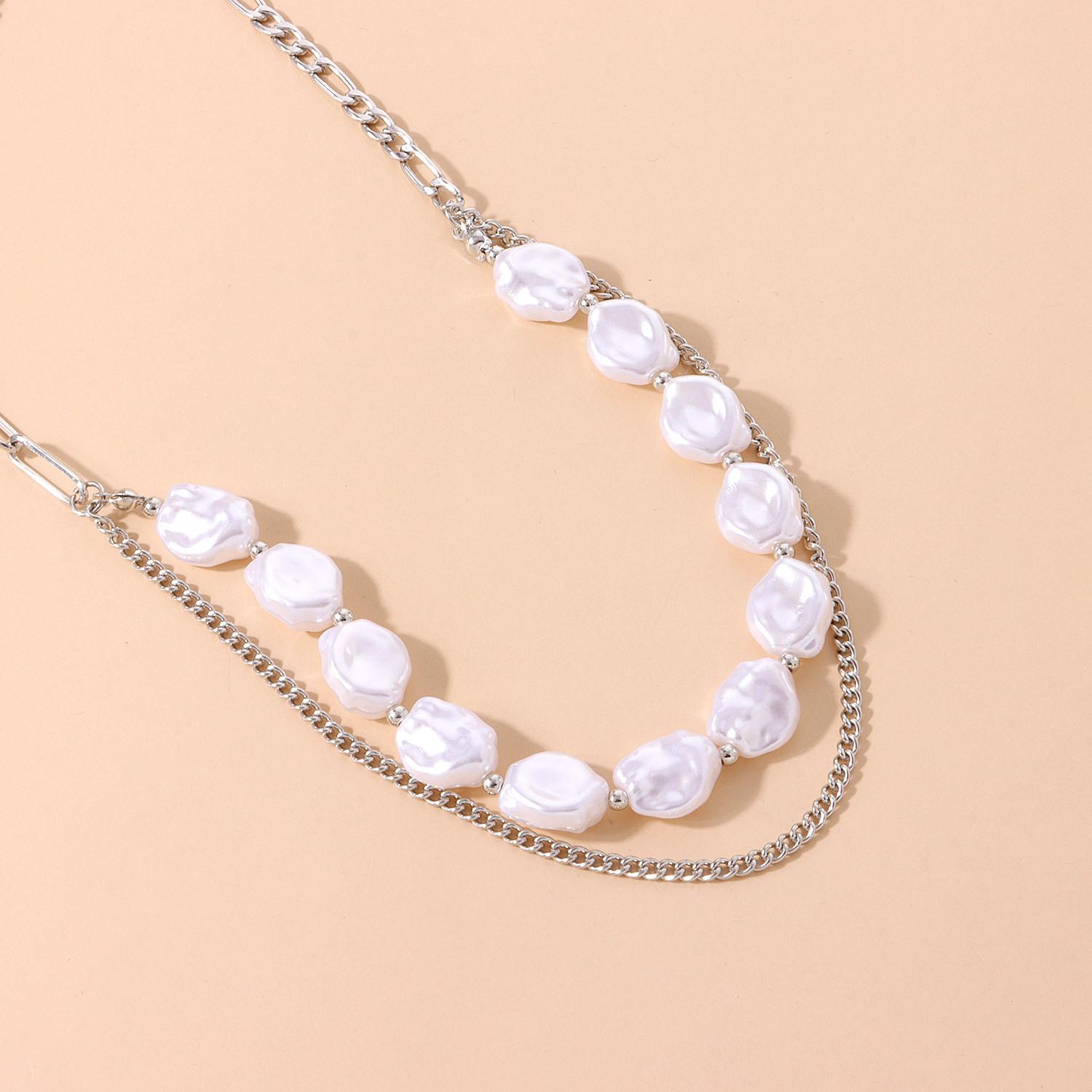 Collar de perlas planas irregulares para mujer, joyería transfronteriza europea y americana, nuevo collar de cadena personalizado punk creativo