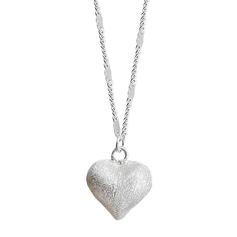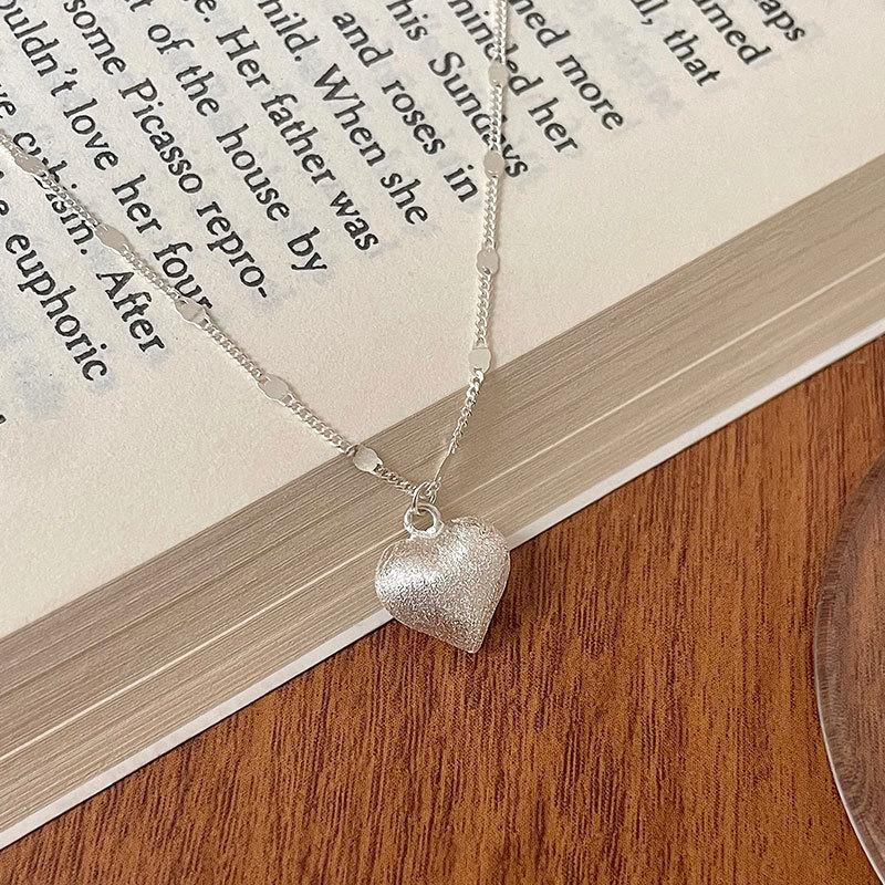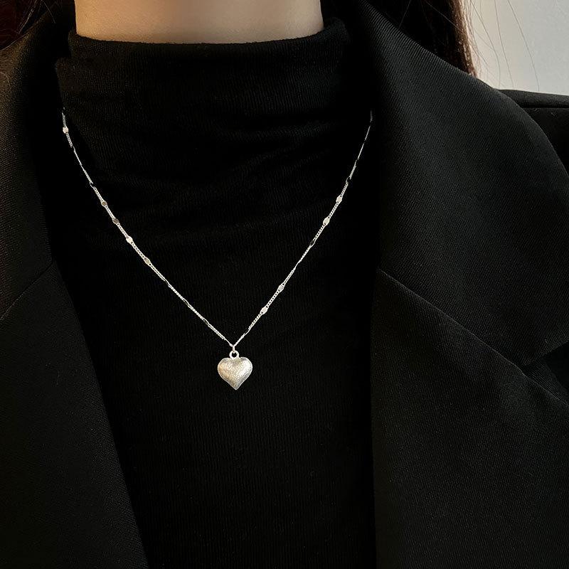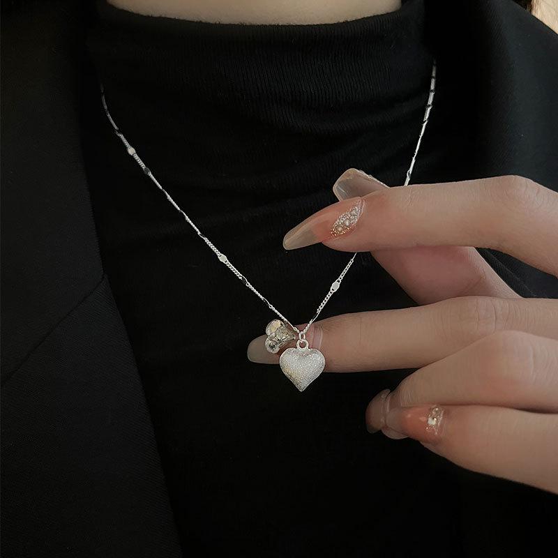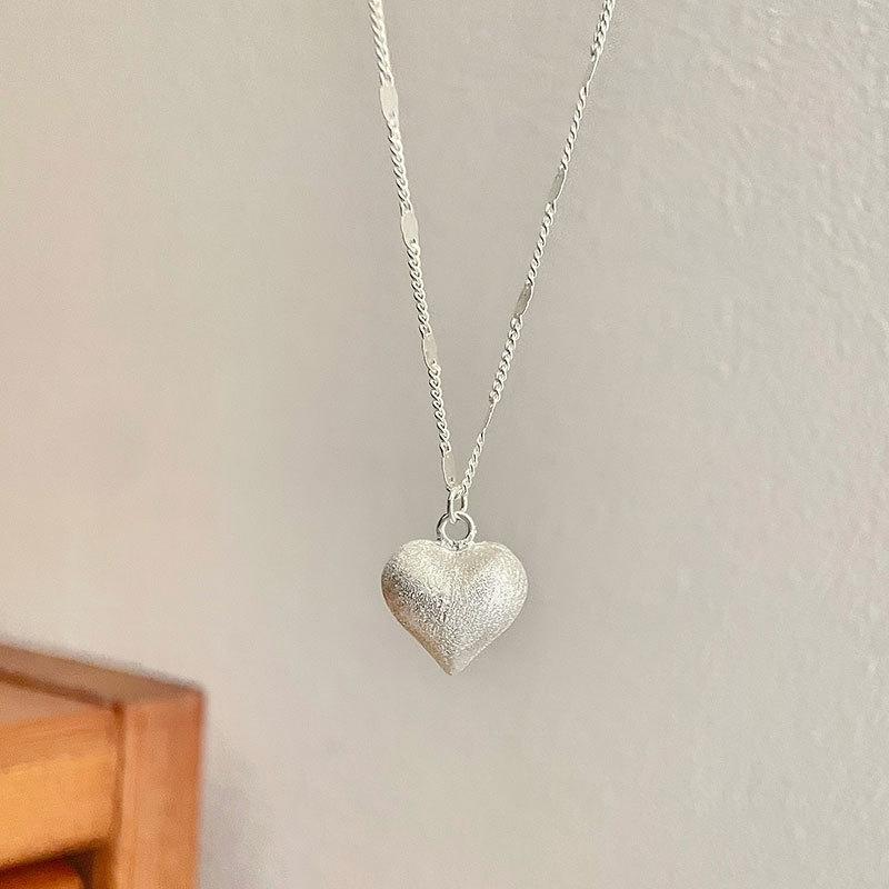 Collar de plata esterlina S925 dulce amor cepillado cadena de clavícula tridimensional con forma de corazón diseño viento frío 2024