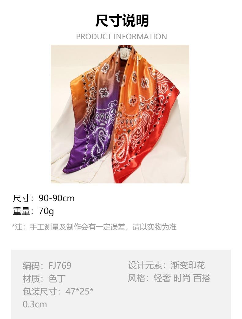 Turbante para exteriores de 90 cm con tendencia de degradado transfronterizo, personalidad de comercio exterior, bufanda cuadrada grande con estampado de anacardo y hip-hop