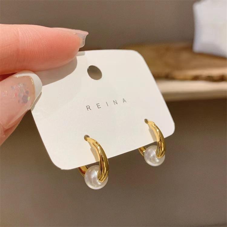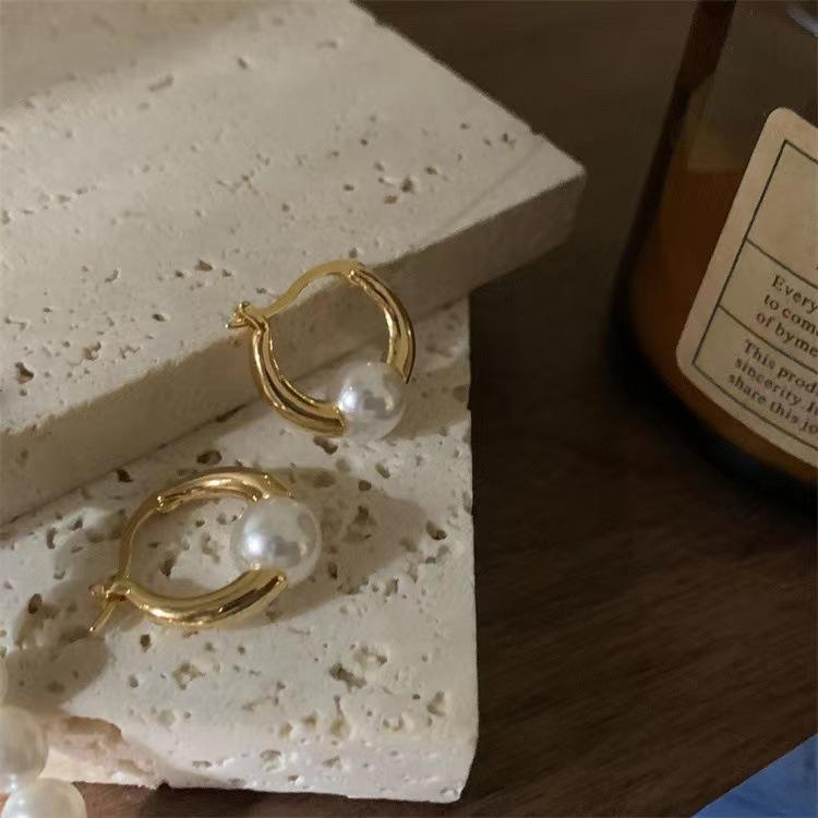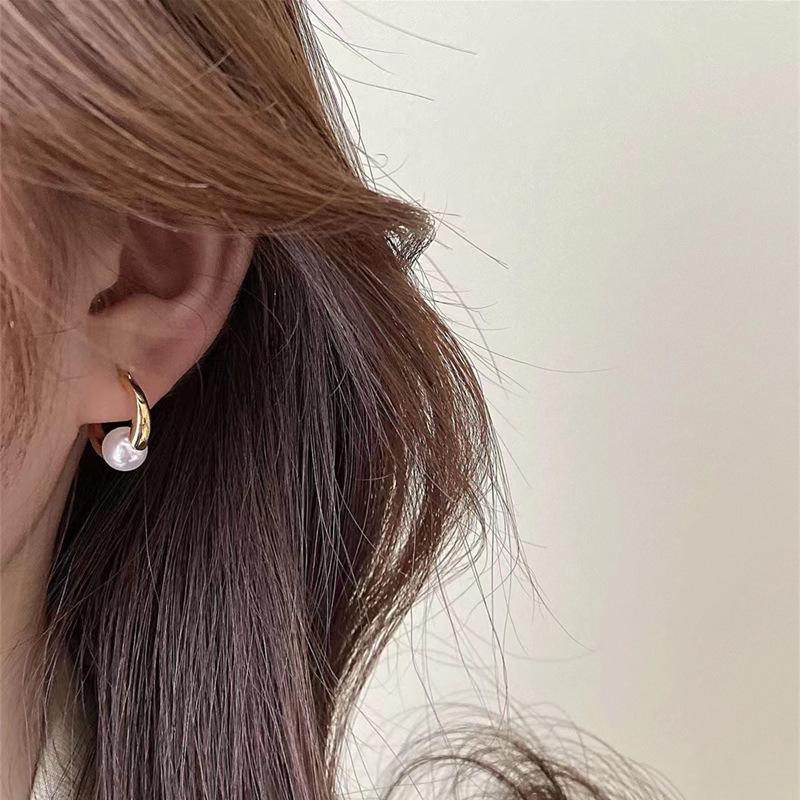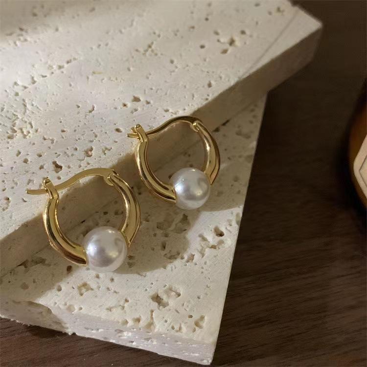 Aretes de Perlas Simples, Lujo Ligero, Aretes Retro Redondos Estilo Perla, Personalidad Moderna, Aretes de Diseño Moderno para Mujer