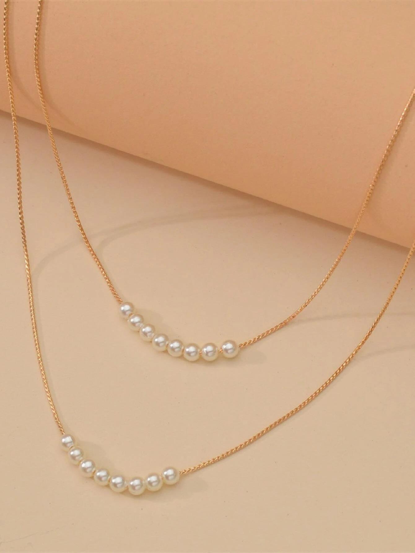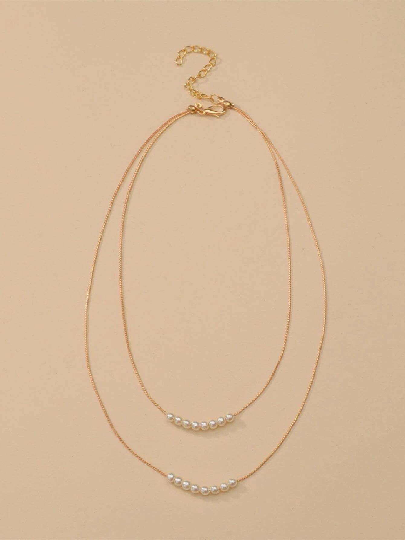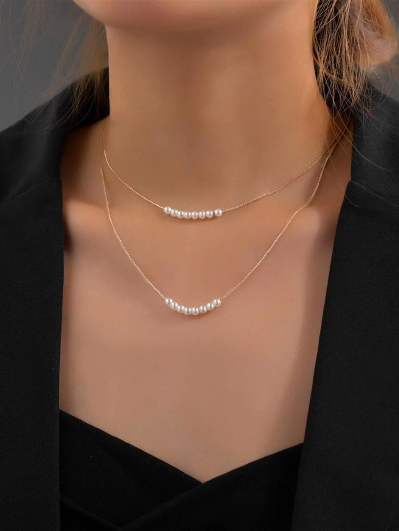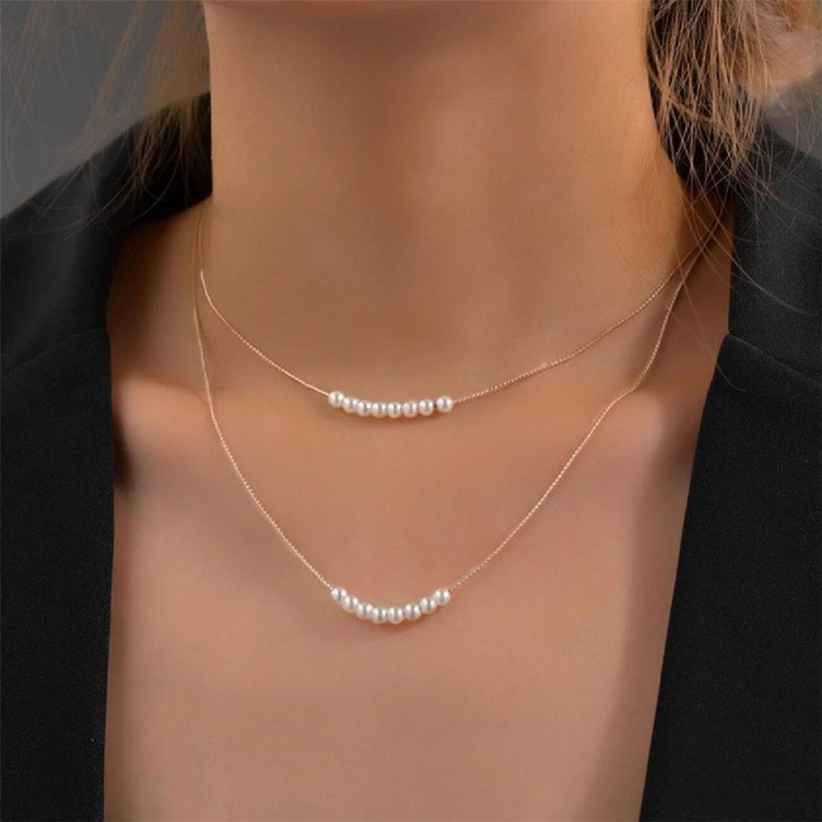 Jianla - Nuevo collar minimalista de doble capa con perlas de agua dulce de imitación, estilo cruzado, para mujer, 6181