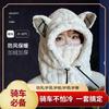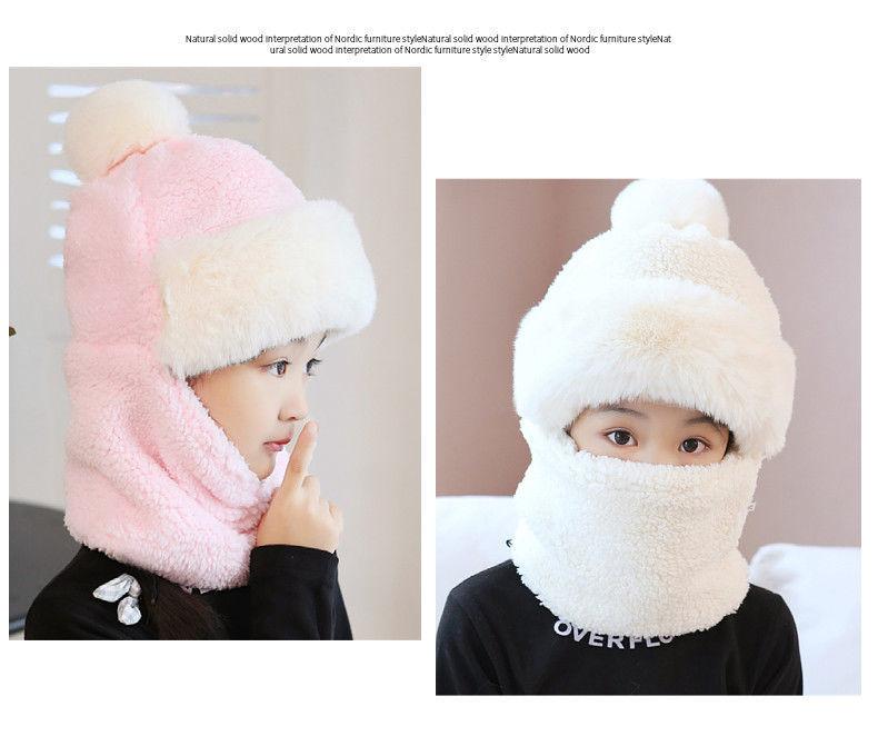 Gorro a prueba de viento para niños, otoño e invierno, ciclismo, cálido, protección para los oídos, gorro tipo jersey, gorro de felpa con cuello y máscara integrada.