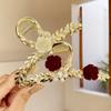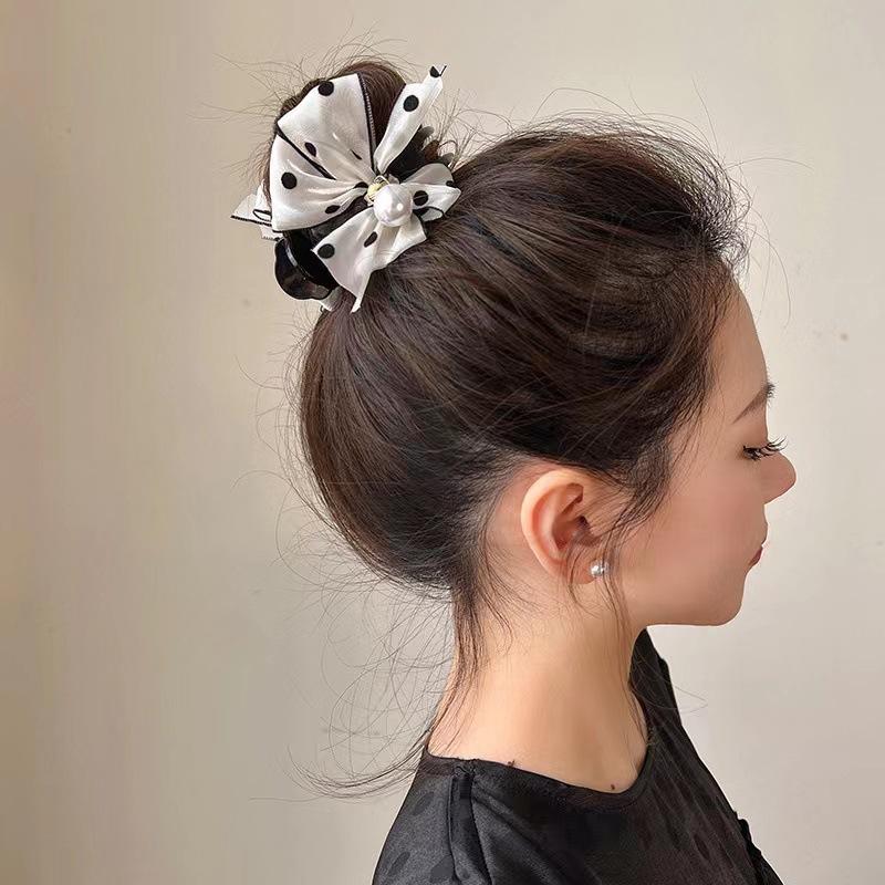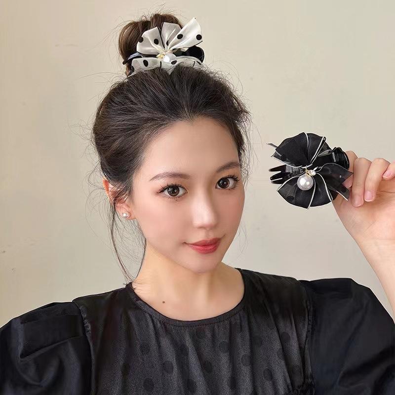 Pinza para el pelo con lazo y perla estilo coreano para mujer, elegante pinza para la nuca con bola, tocado de tiburón de verano