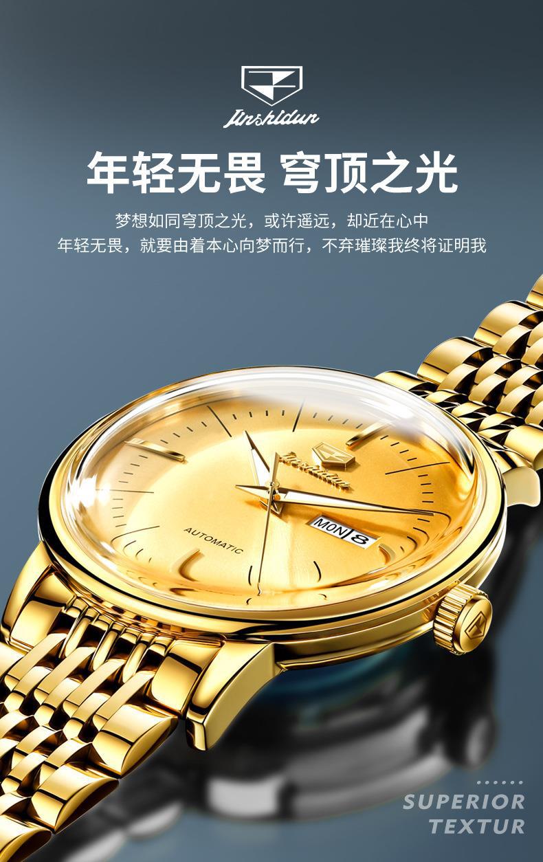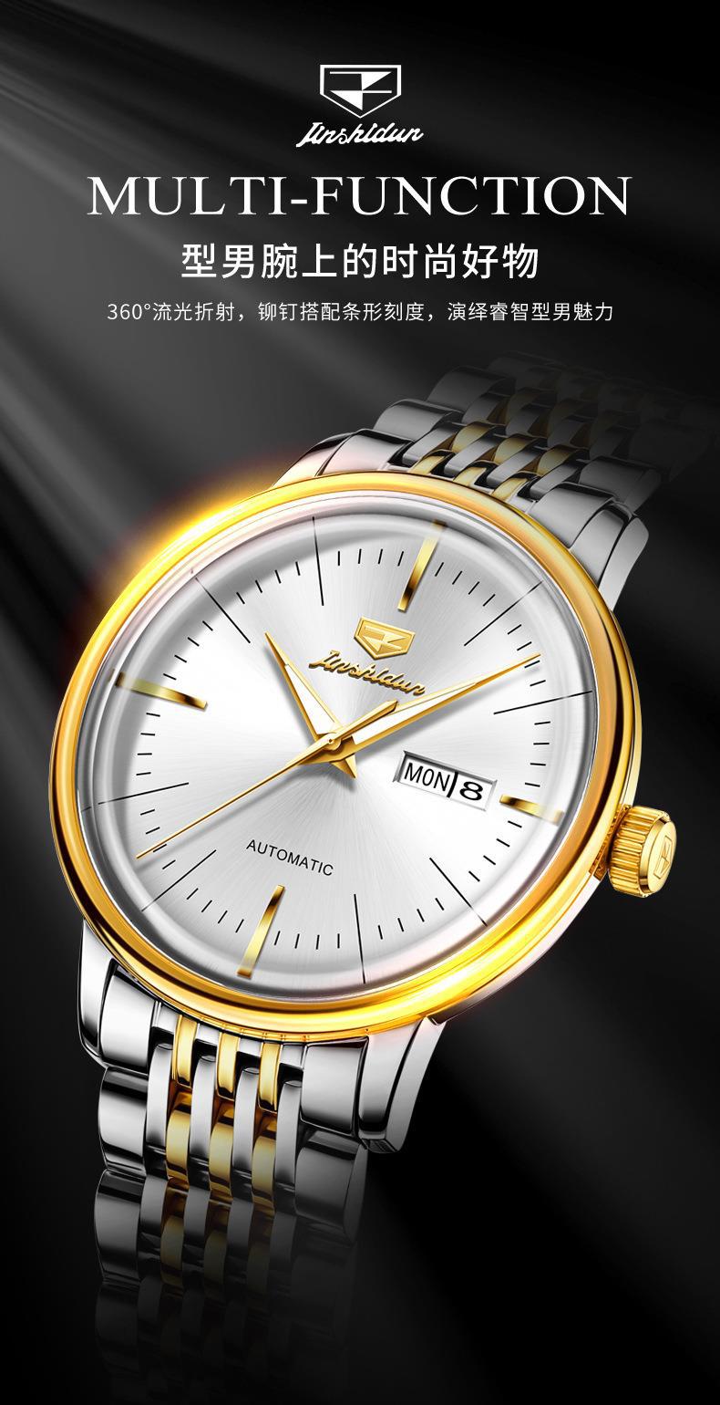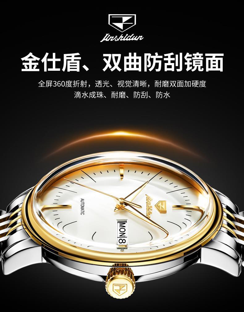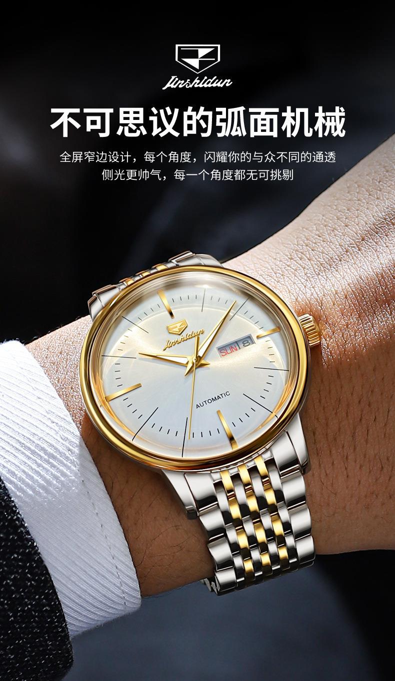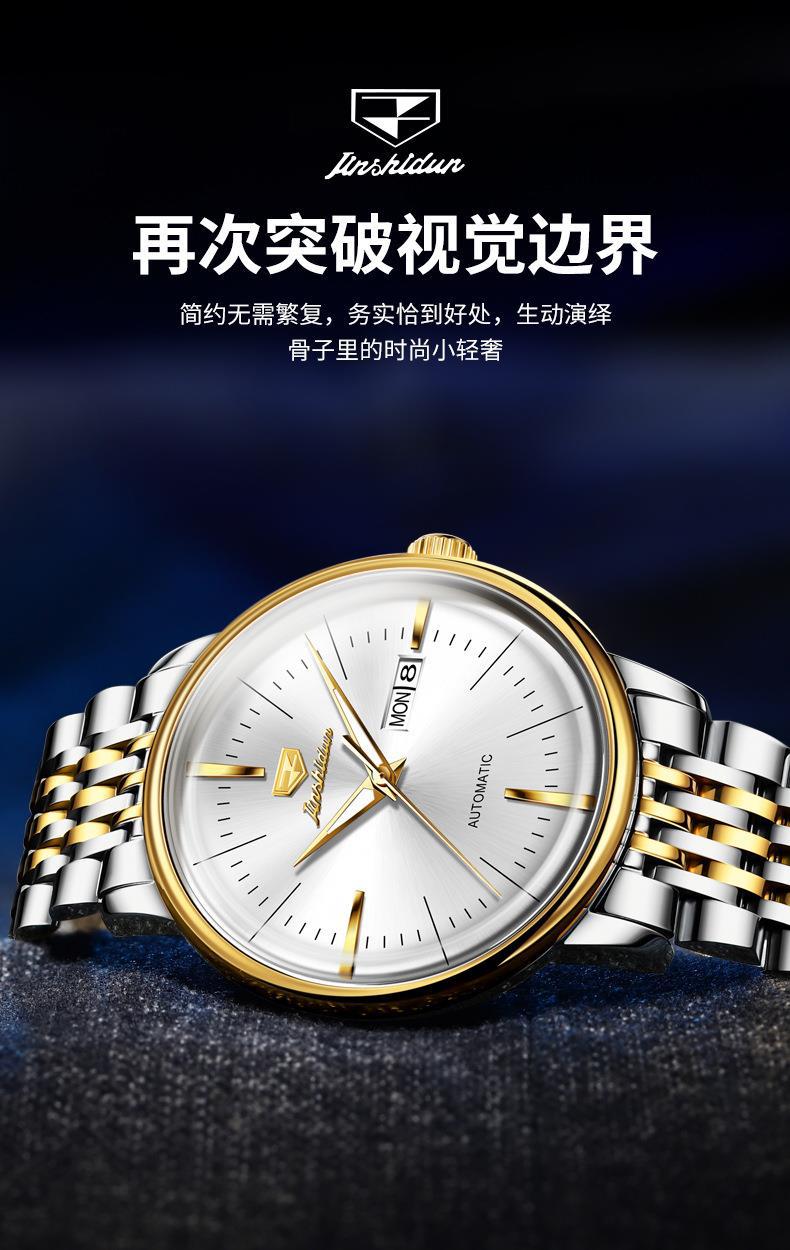 Reloj Nuevo Marca Jinshi Dun Venta al por Mayor Reloj Mecánico Automático Doble Calendario Impermeable Correa de Acero Reloj para Hombre Reloj para Hombre