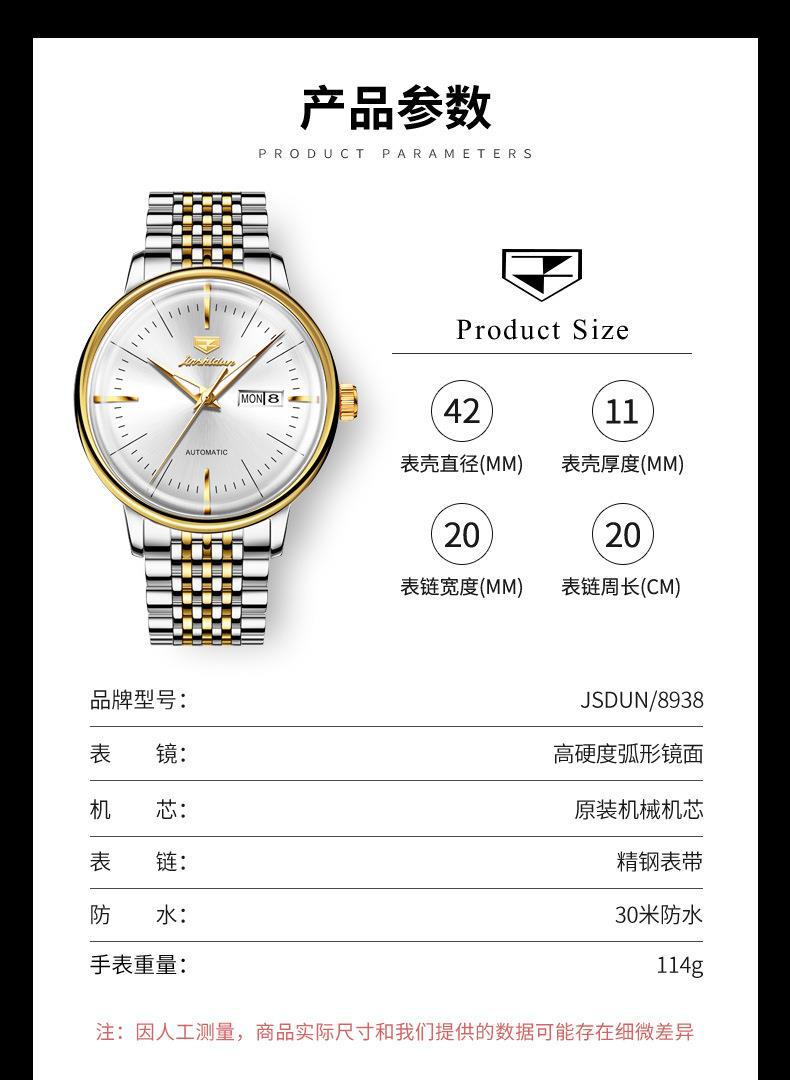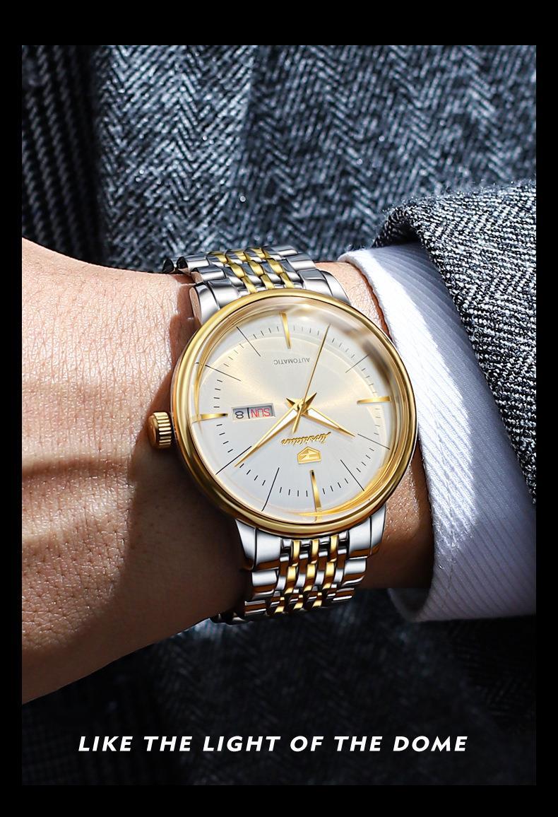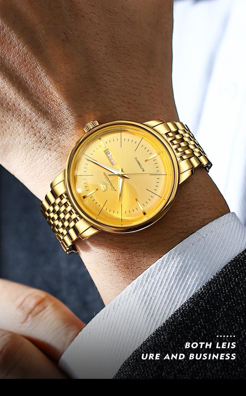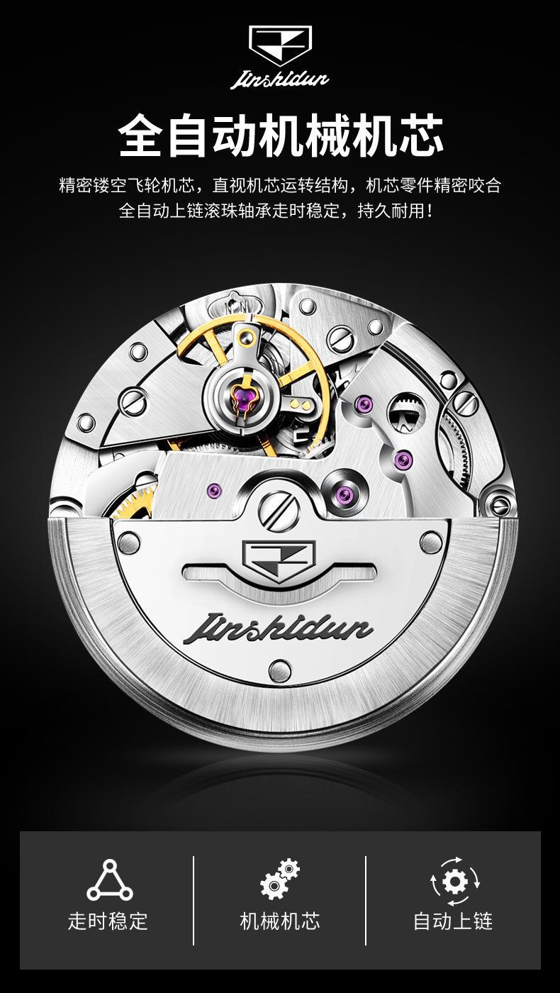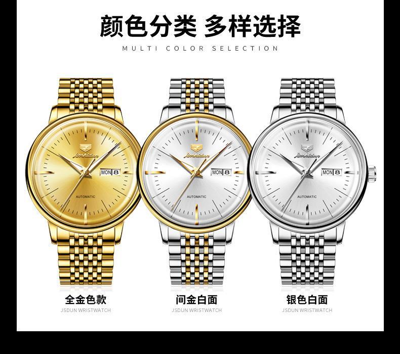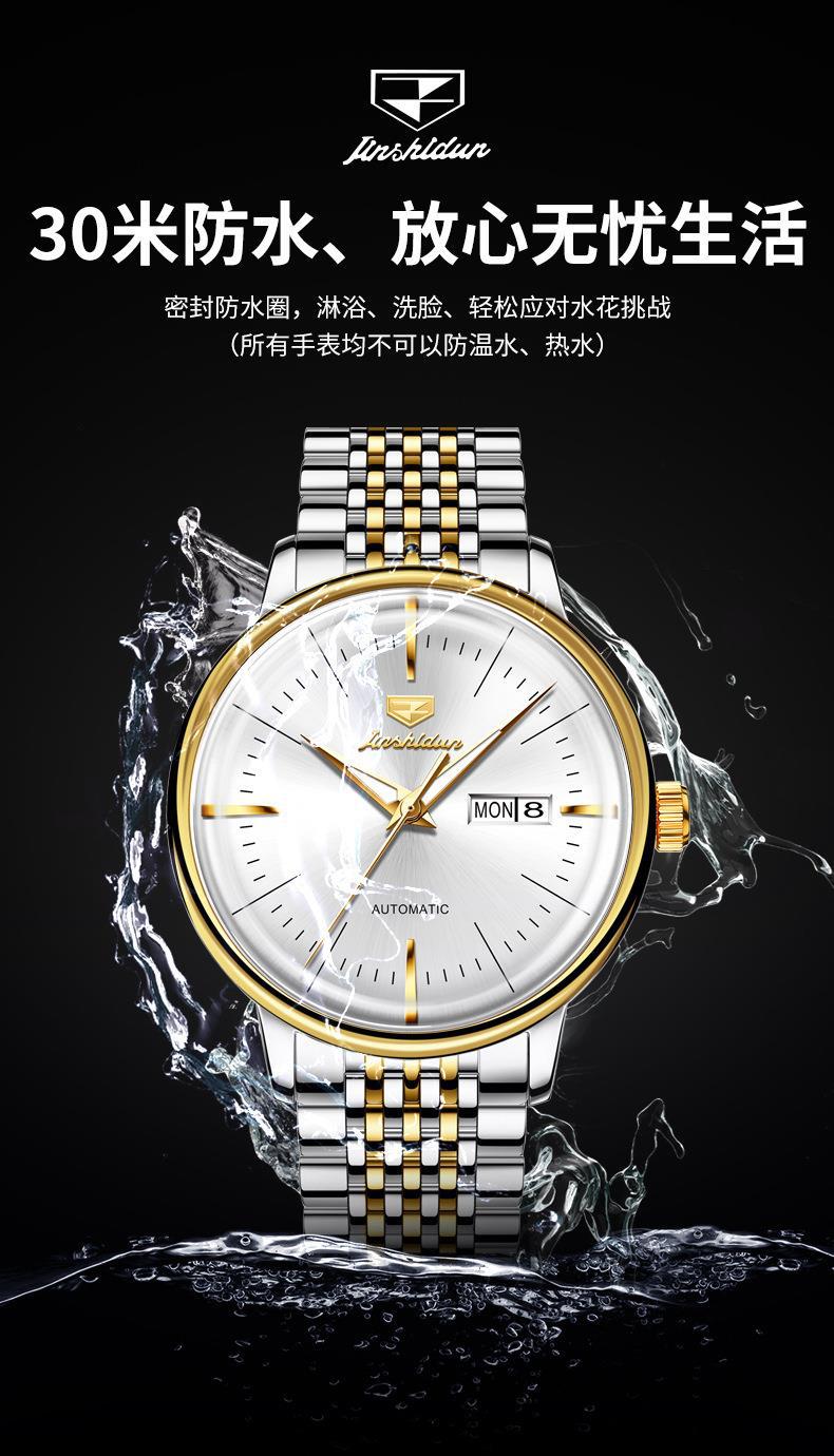 Reloj Nuevo Marca Jinshi Dun Venta al por Mayor Reloj Mecánico Automático Doble Calendario Impermeable Correa de Acero Reloj para Hombre Reloj para Hombre
