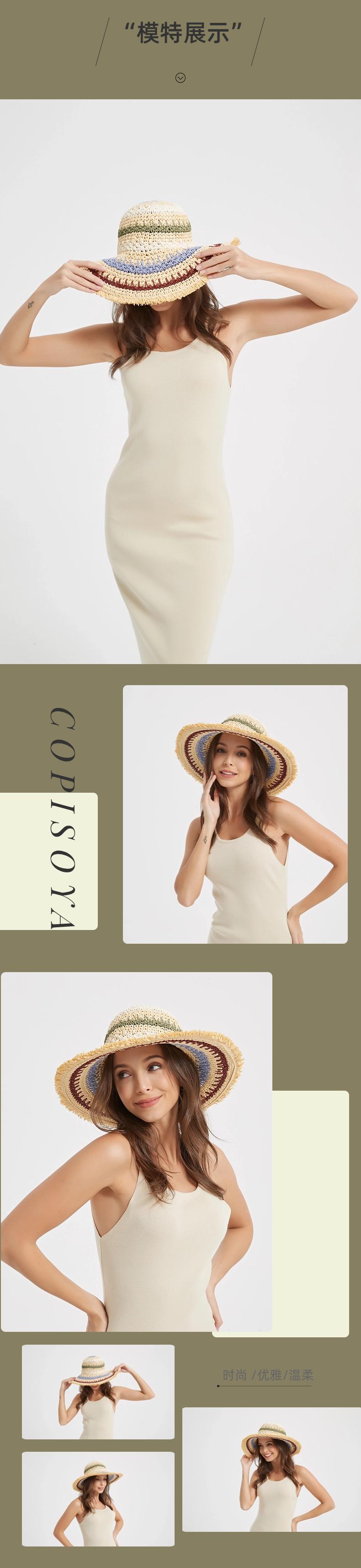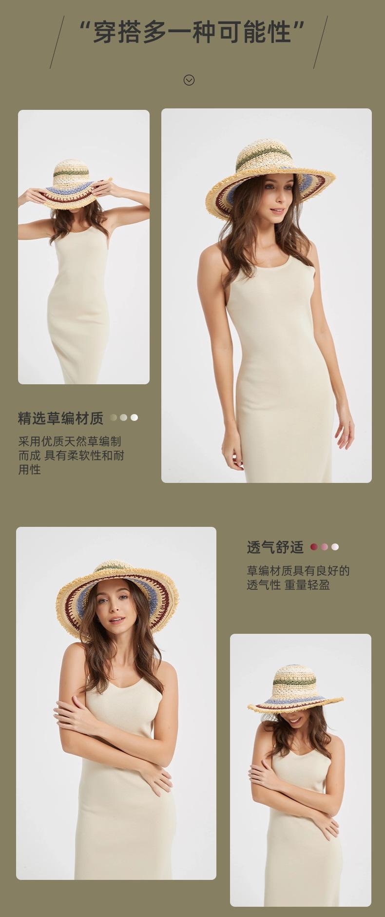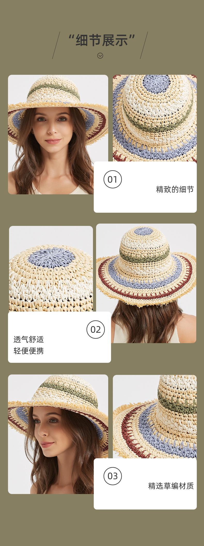 Sombrero de gancho de papel de cuerda multicolor para mujer para primavera y verano, vacaciones al aire libre, protección solar, sombrero para el sol, sombrero de playa