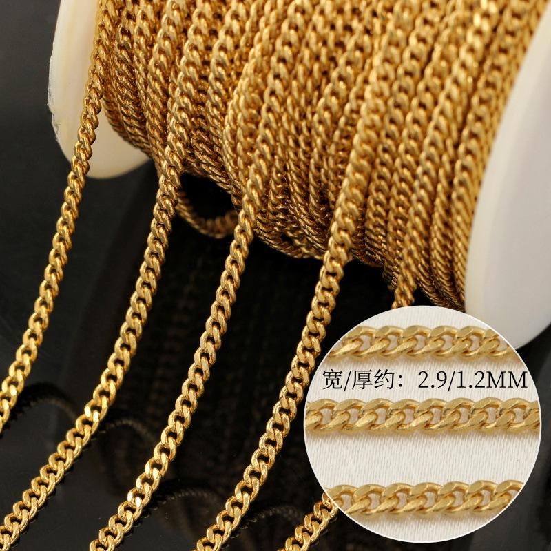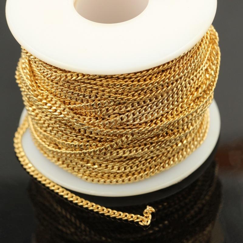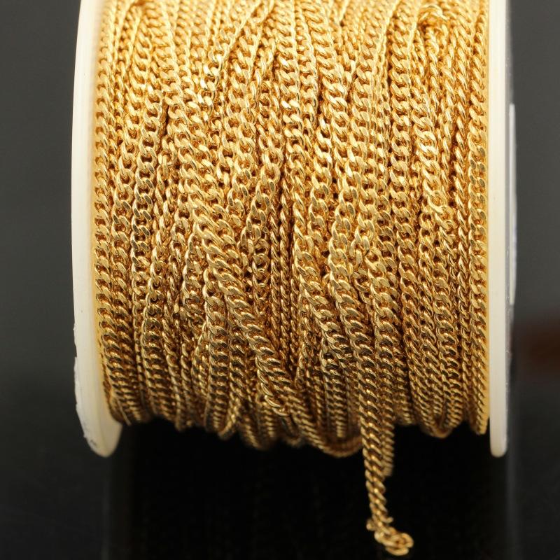 Cadena Plana Paso a Paso Americana Rellena de Oro de 14K Cadena Látigo para Montar Cadena Cubana DIY Pulsera Tobillera Accesorios de Joyería