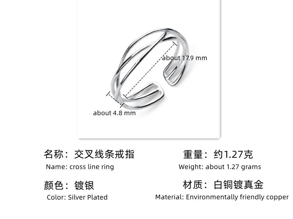 Moda Coreana Anillo de Apertura Cruzada para Mujer Simple Combinable Línea Hueca Pequeños Accesorios de Celebridad de Internet Anillo para el Dedo Índice