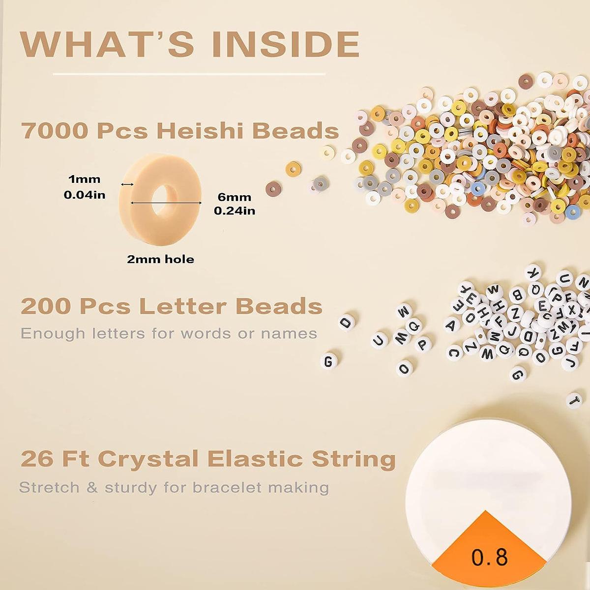 Pulsera de cerámica blanda de 6 mm, 20 colores neutros, 7200 piezas, para hacer trajes con letras, manualidades DIY