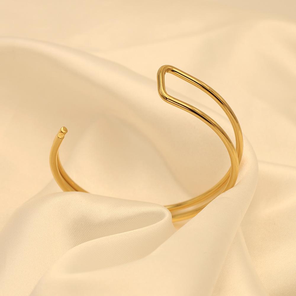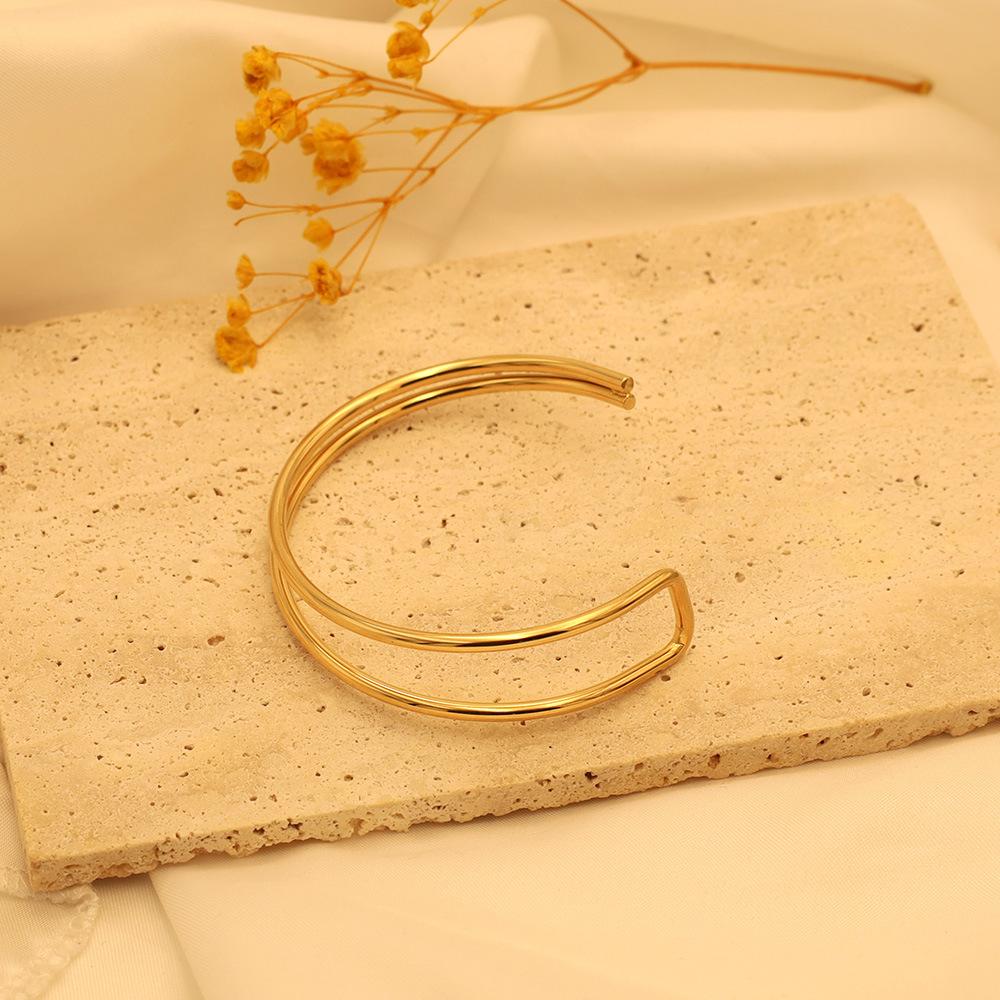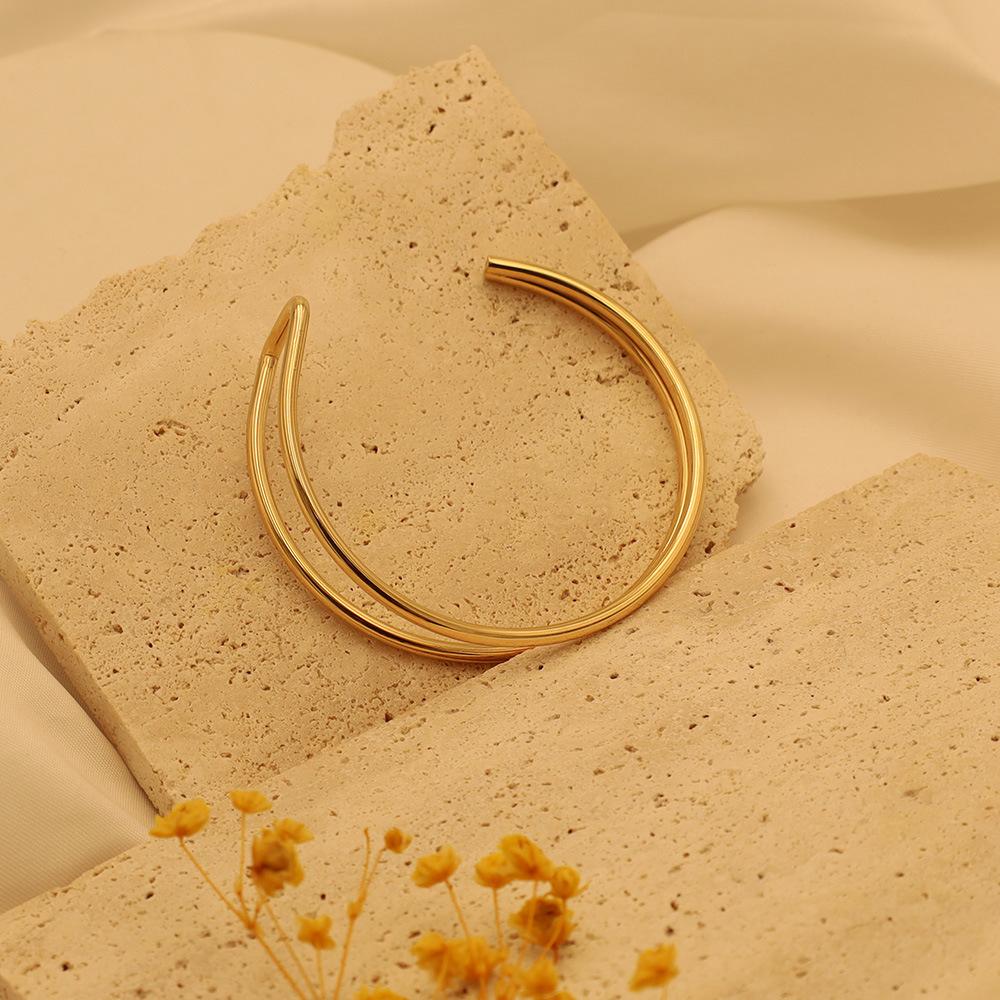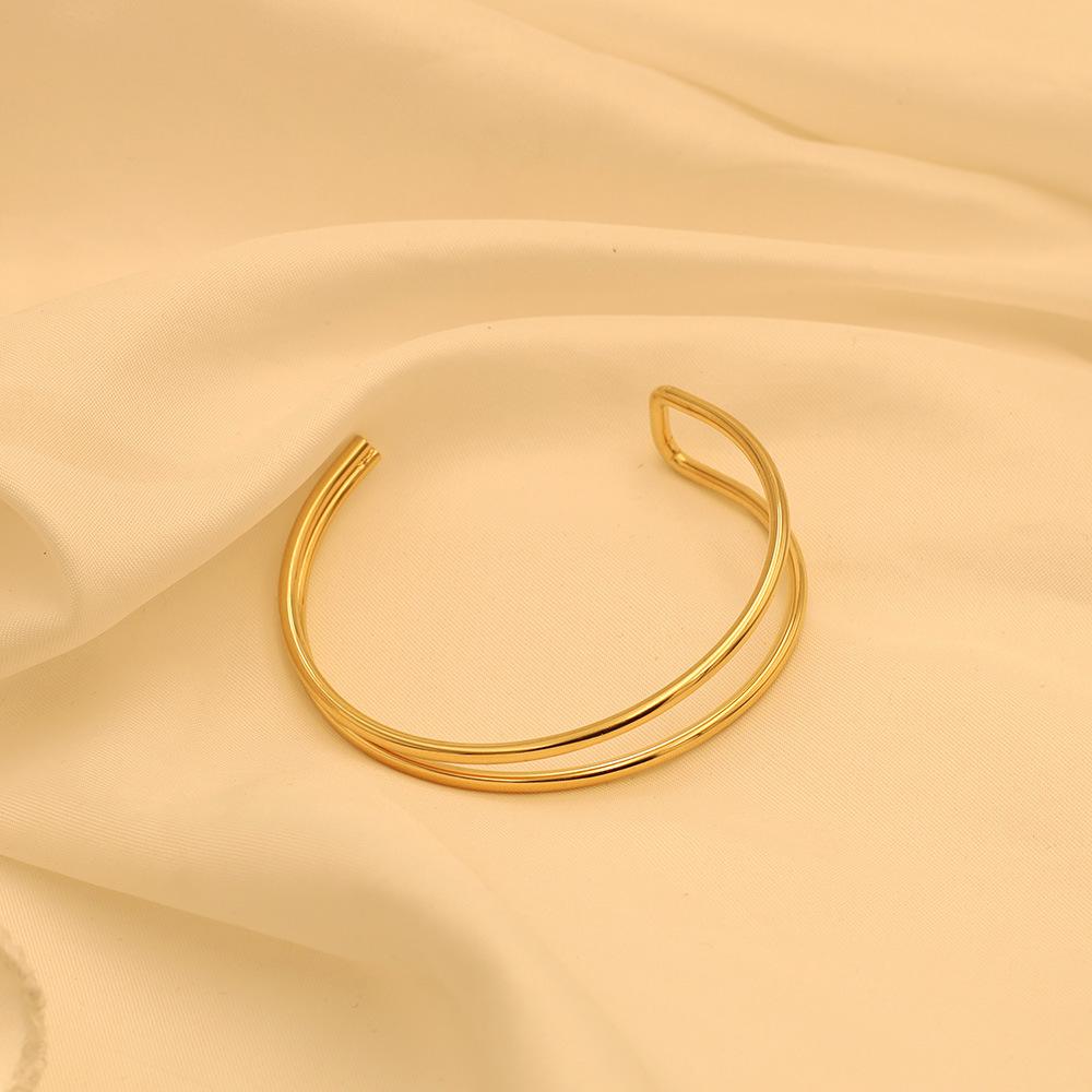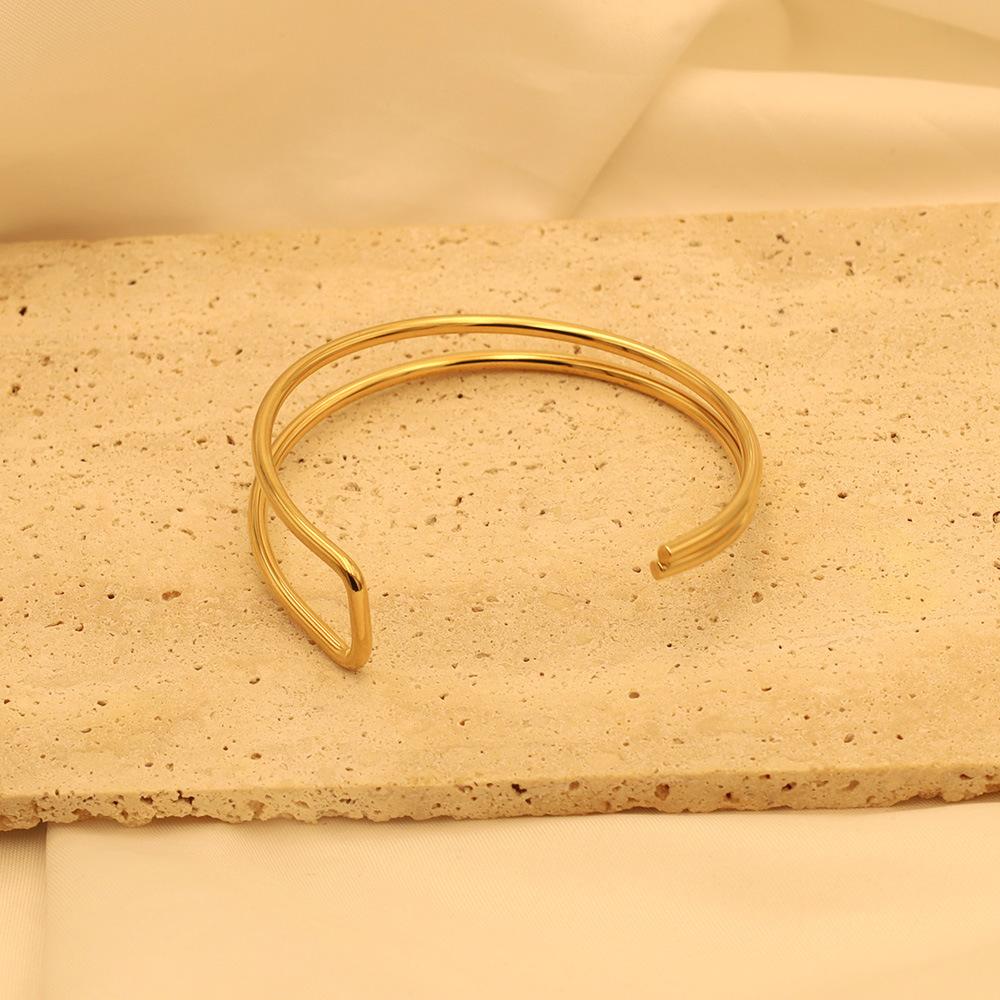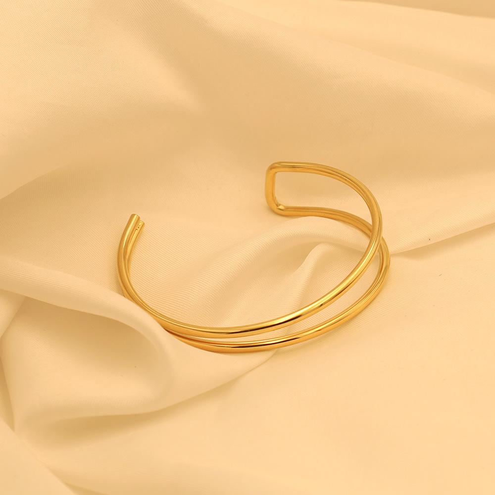 Pulsera de moda estilo ins europeo y americano en forma de C de doble capa asimétrica de acero de titanio para mujer, joyería de mano simple de oro de 18k de alta calidad
