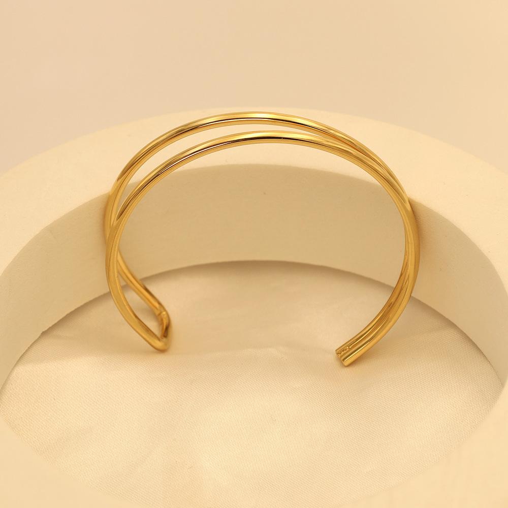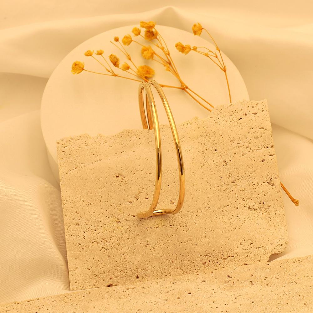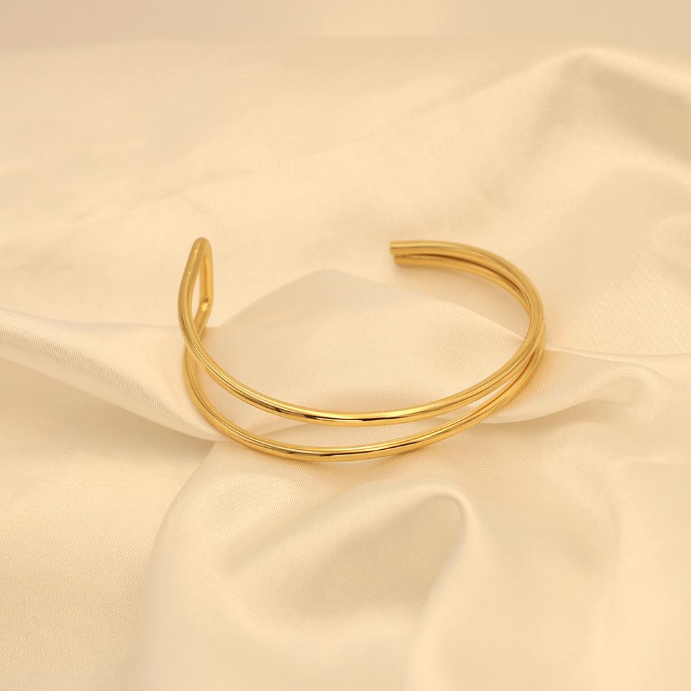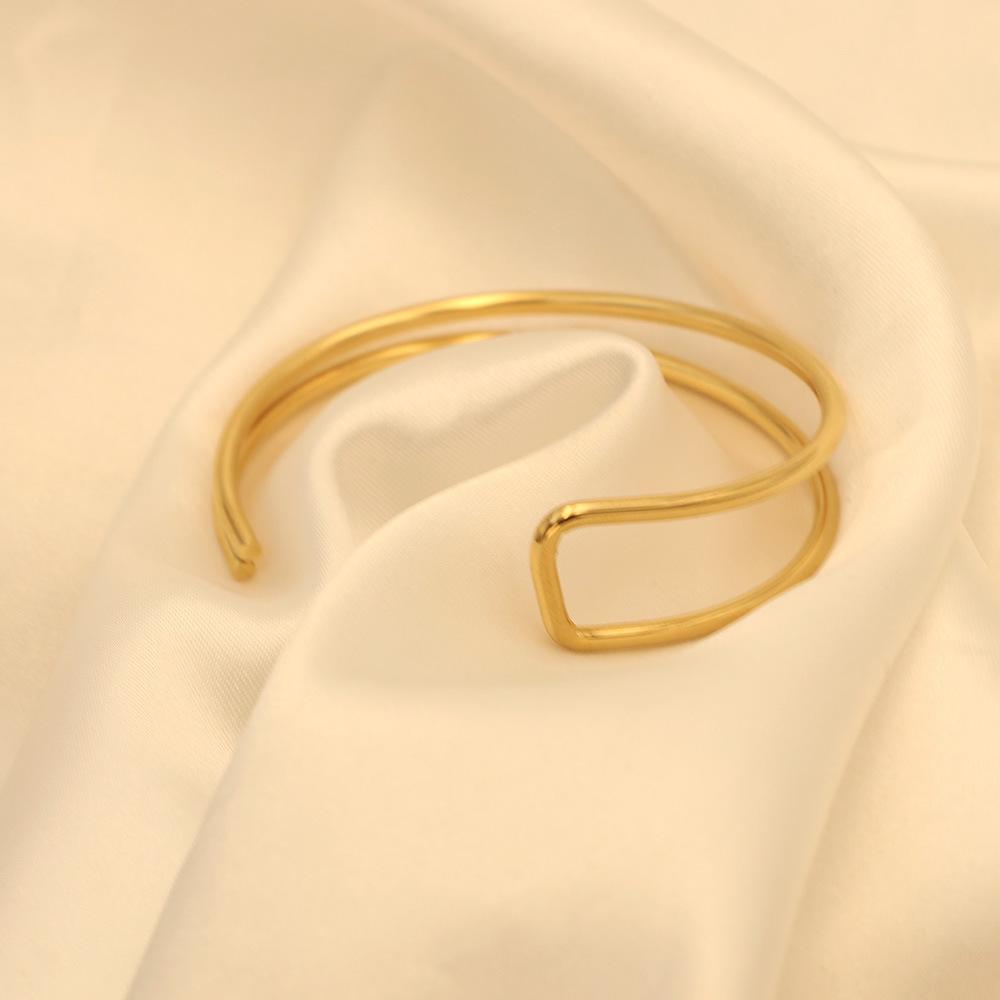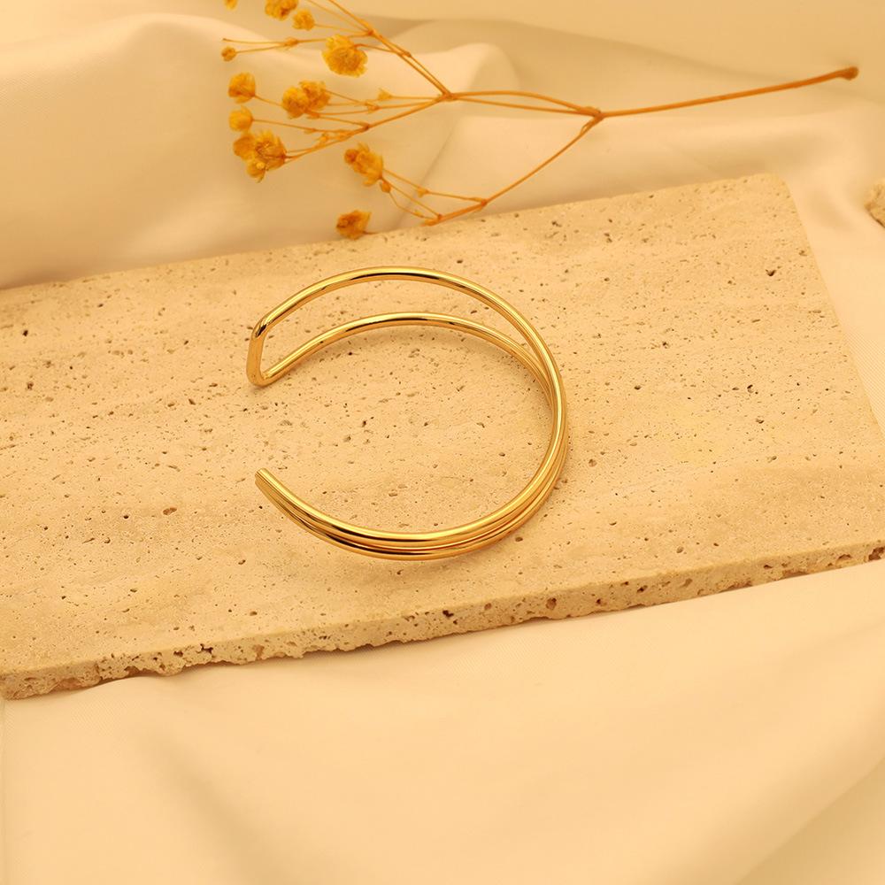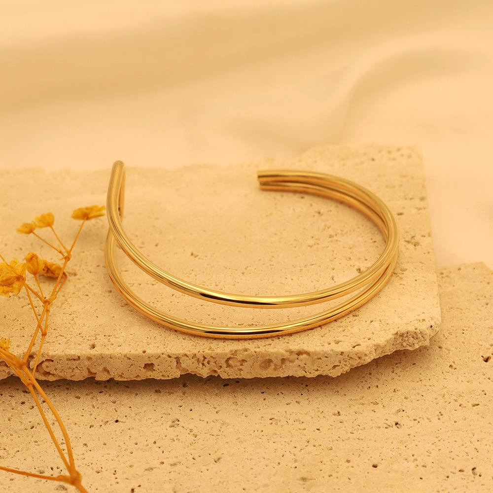 Pulsera de moda estilo ins europeo y americano en forma de C de doble capa asimétrica de acero de titanio para mujer, joyería de mano simple de oro de 18k de alta calidad