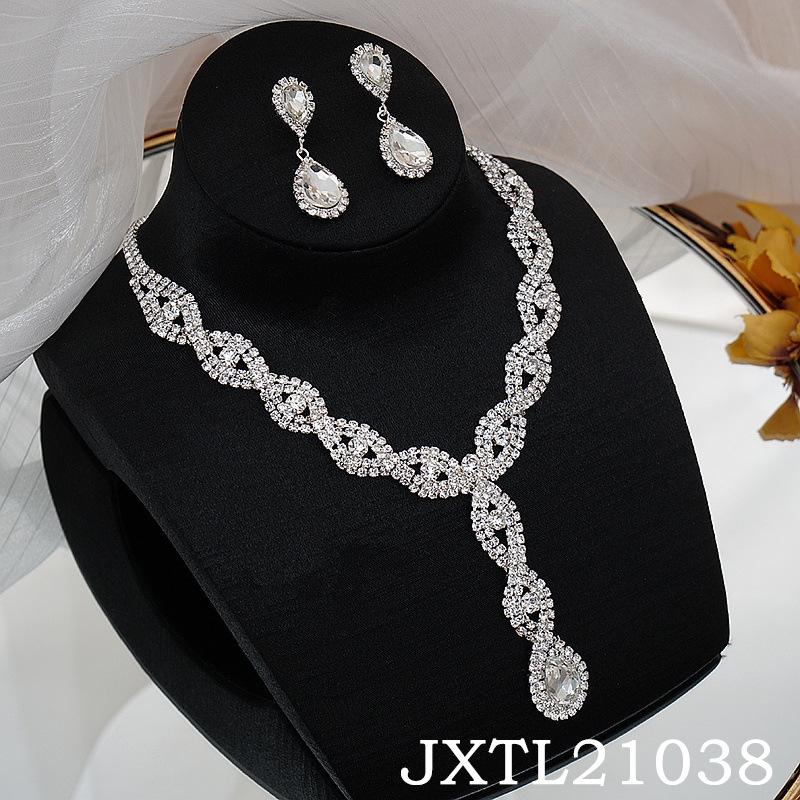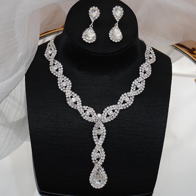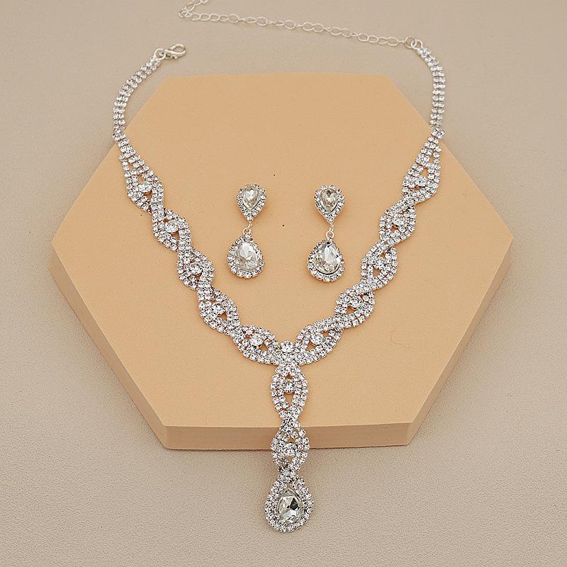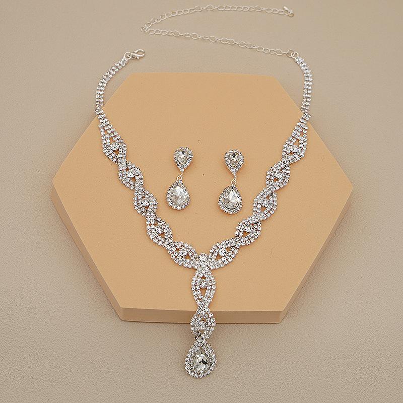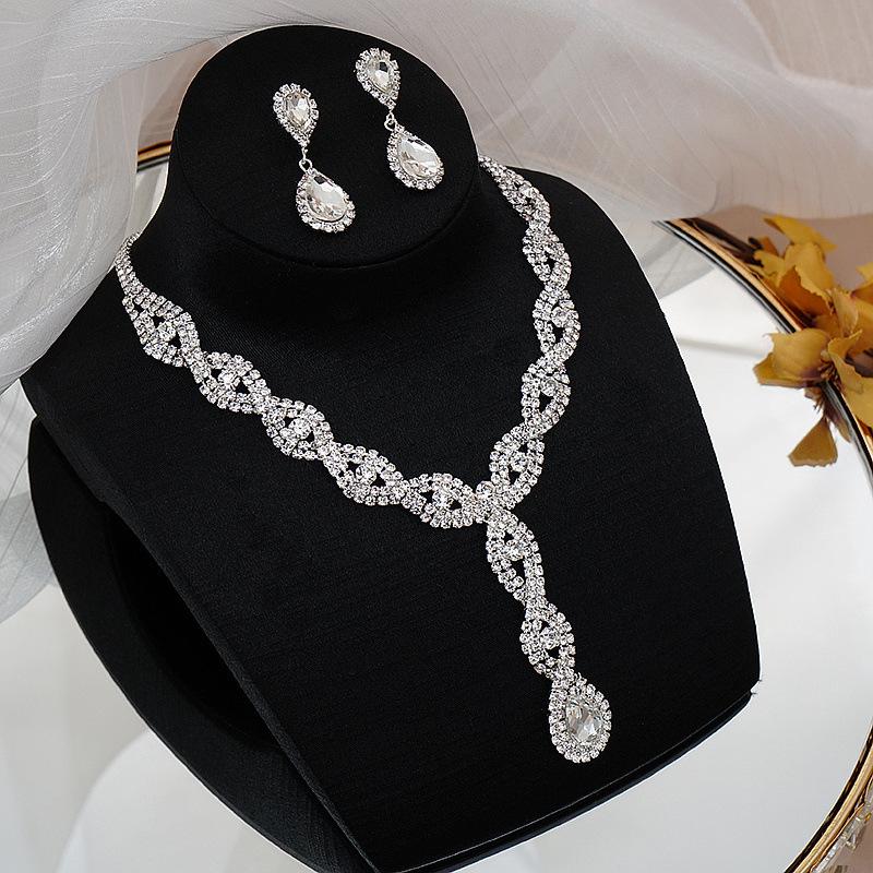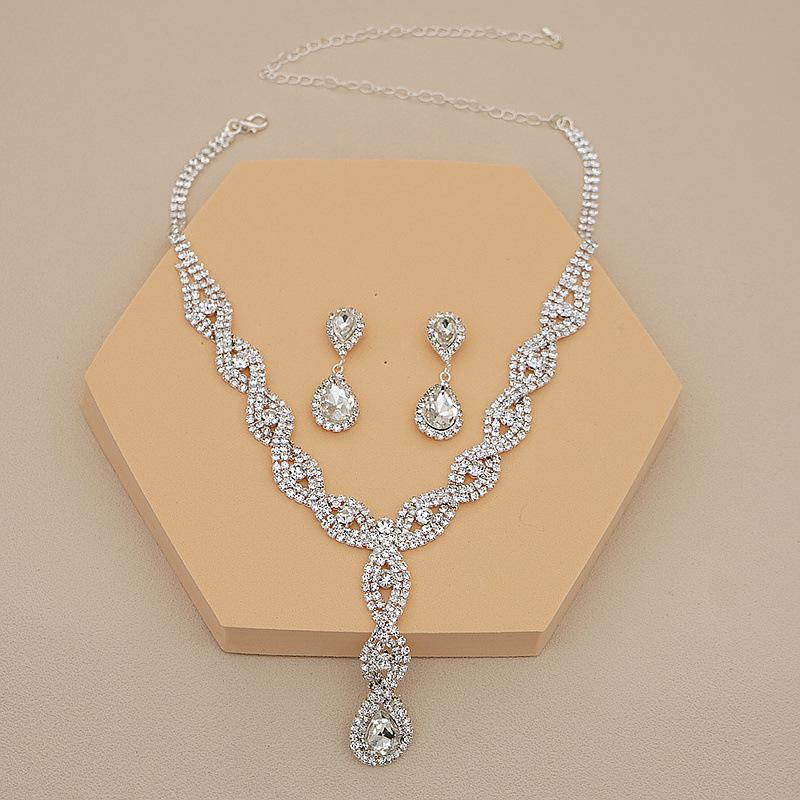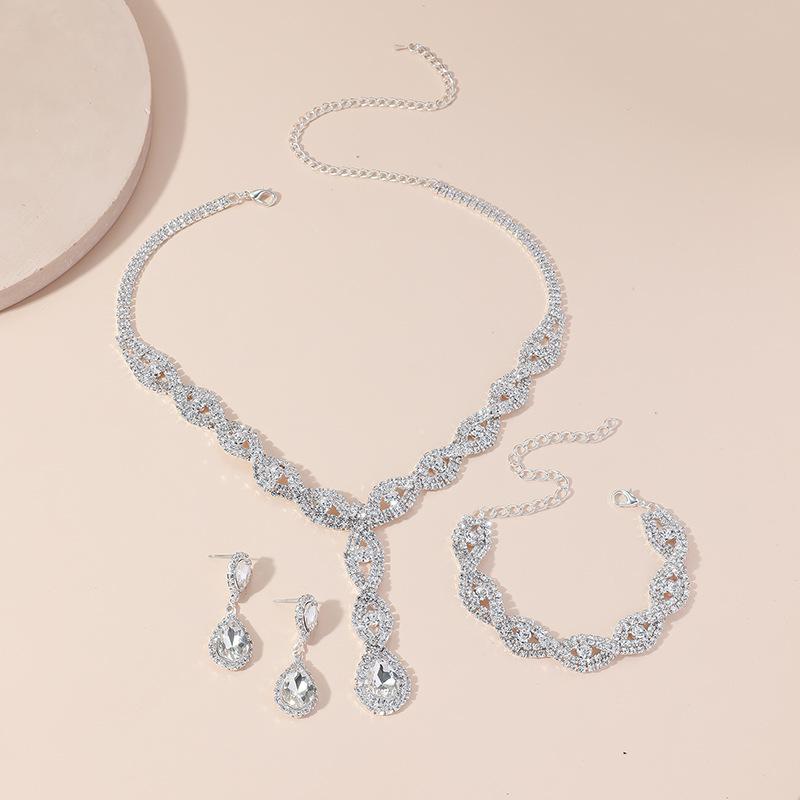 Conjunto de joyería con cadena de garra y diamantes de imitación para mujer, accesorios de boda, collar, pendientes, pulsera, conjunto de tres piezas