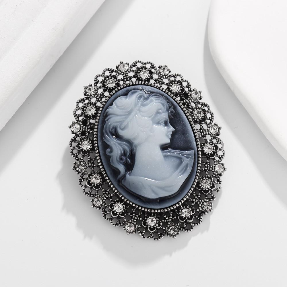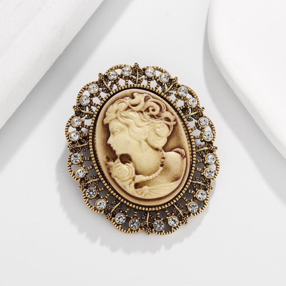 Nuevo broche de cabeza de belleza transfronterizo europeo y americano con incrustaciones de diamantes de alta gama para mujer, alfiler de ramillete, accesorios de ropa, insignia al por mayor