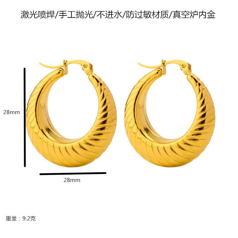 Hollow Round Stripe Earrings-Steel