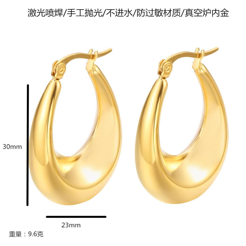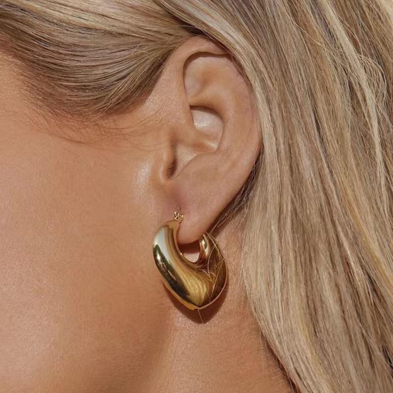 Pendientes geométricos retro de moda transfronterizos de Amazon, estilo francés, en forma de C, con forma de gota de agua hueca, de acero inoxidable.