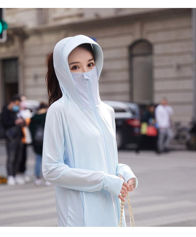 Ropa de Protección Solar para el Verano 2025 para Mujer, Ropa Deportiva Casual Holgada Fresca de Seda de Hielo con Ala Ancha para Cubrir el Rostro, Estilo de Largo Medio