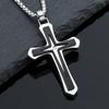 Colgante Hip-Hop Transfronterizo Europeo y Americano de Acero Inoxidable Moderno Acero Titanio Doble Capa Bicolor Collar de Cruz Fabricante Venta al por Mayor