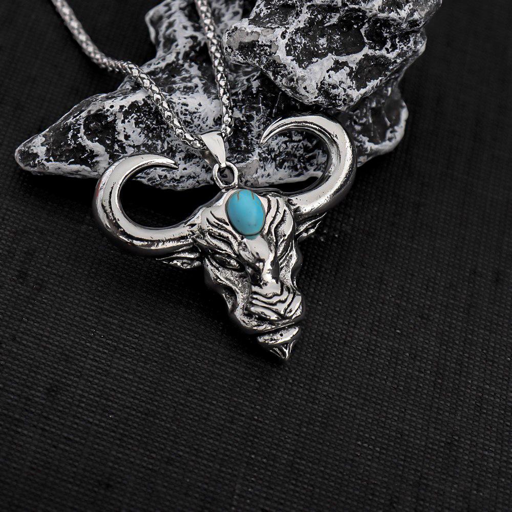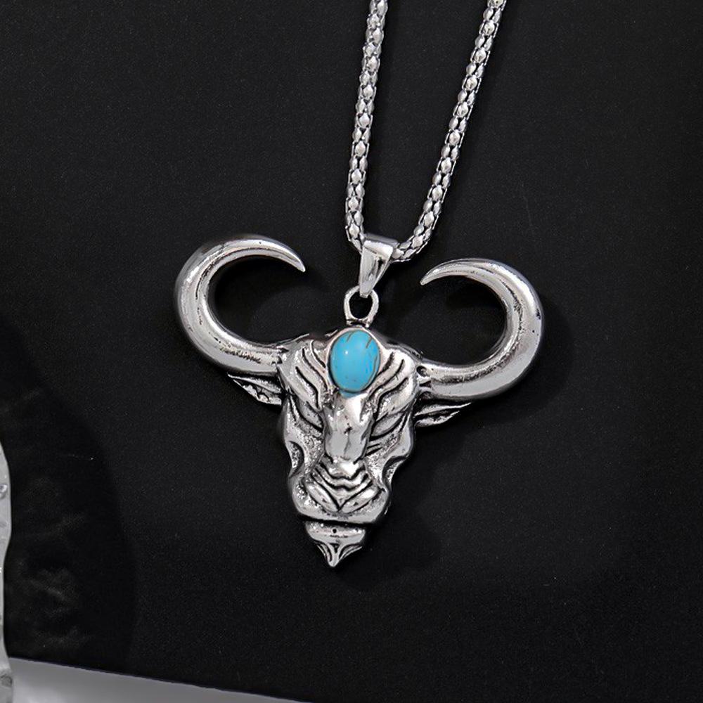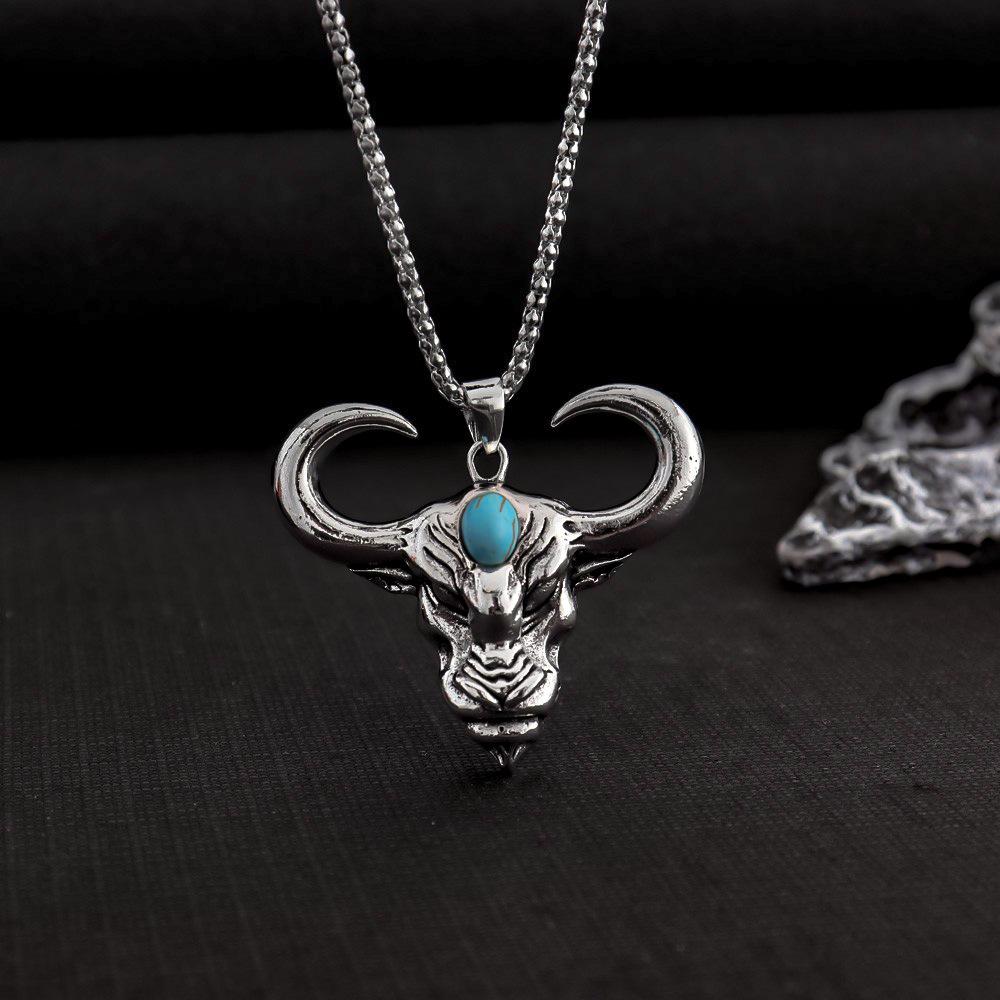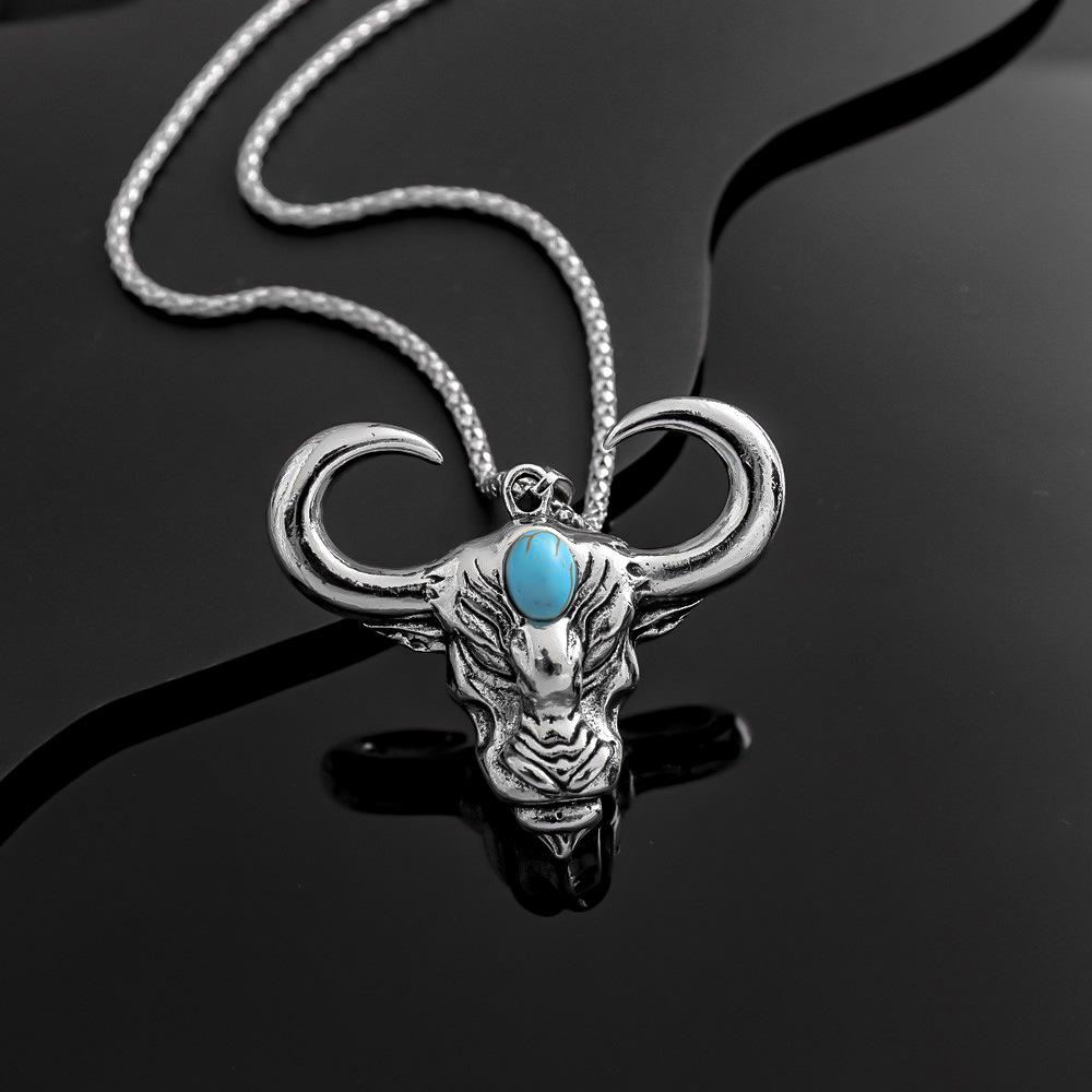 Temu oferta especial Nuevo collar con colgante de cabeza de buey de aleación Colgante de cabeza de buey turquesa retro europeo y americano Entrega única de Temu
