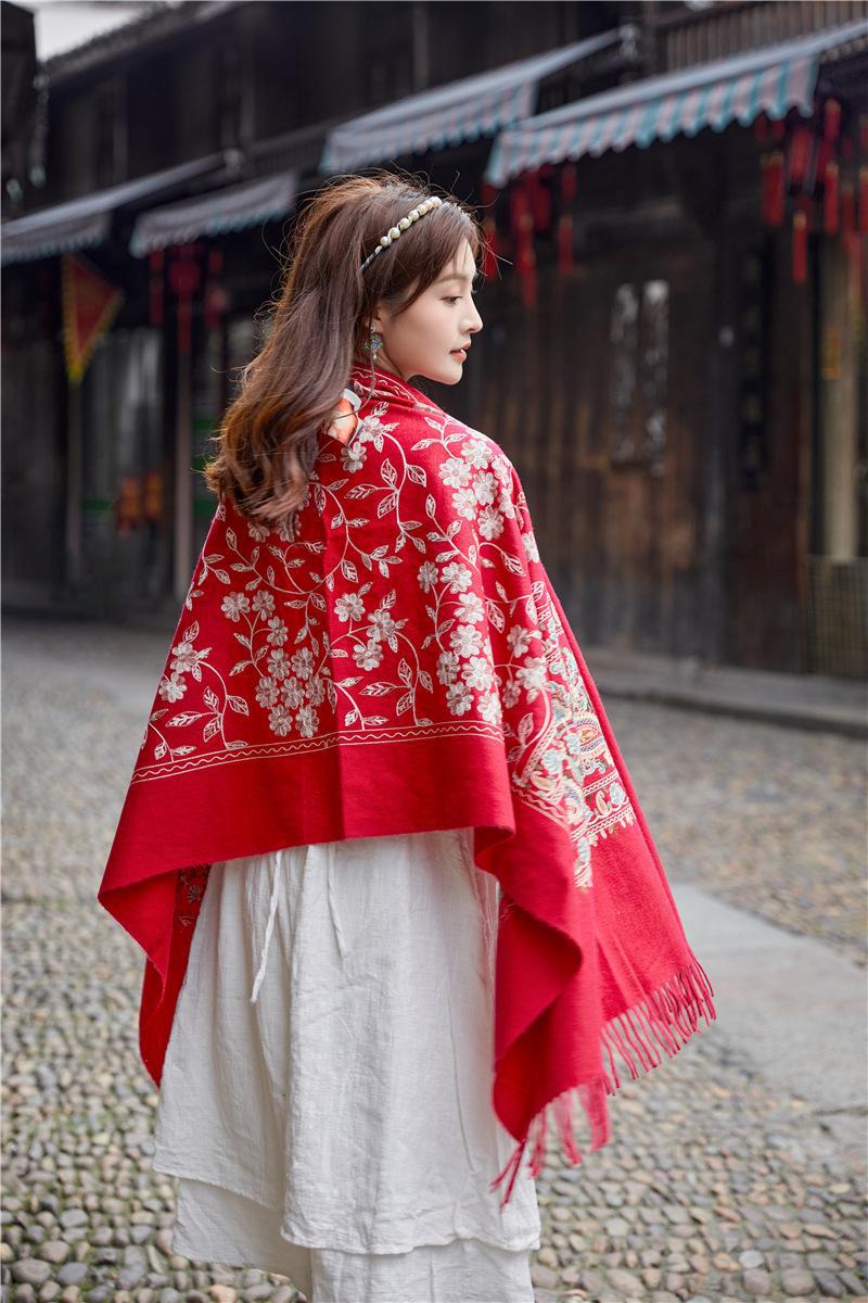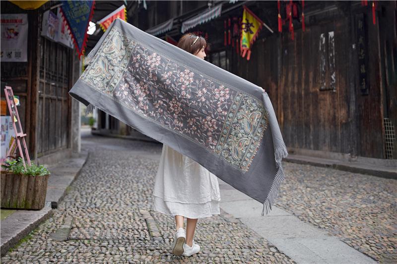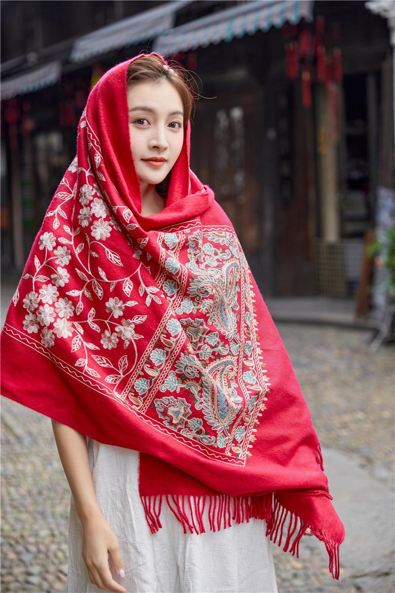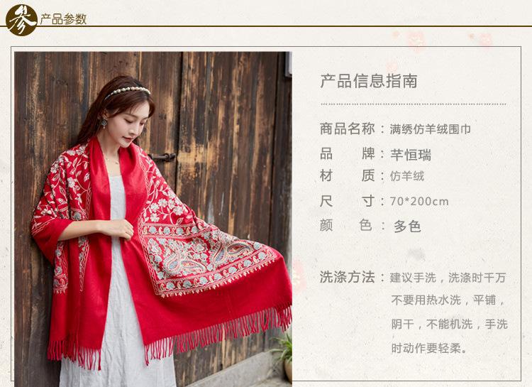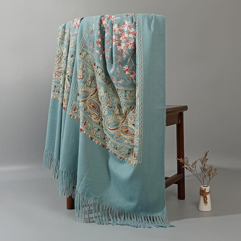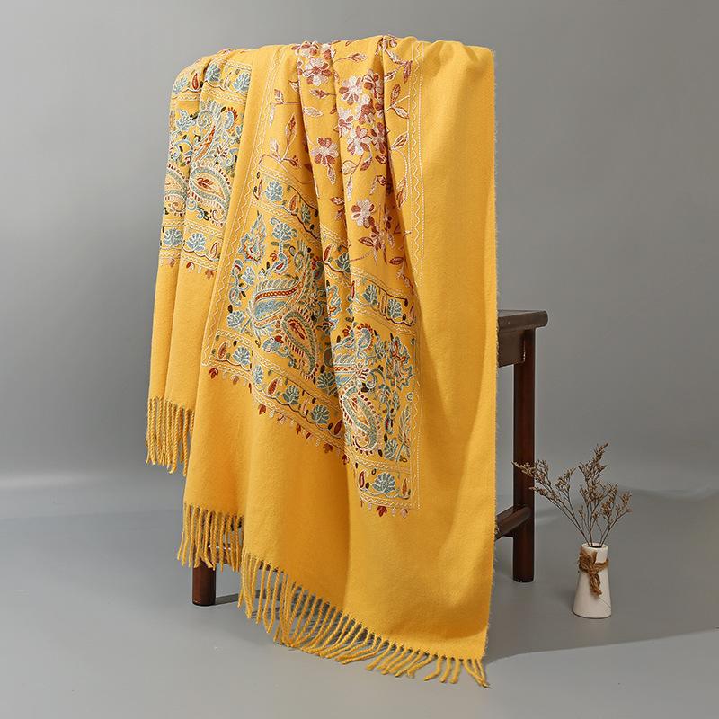 2024 Otoño/Invierno Nuevo Estilo Étnico Cálido Borla Imitación Cachemira Exterior Bufanda Bordado para Mujer Venta al por Mayor Bordado Estilo Étnico