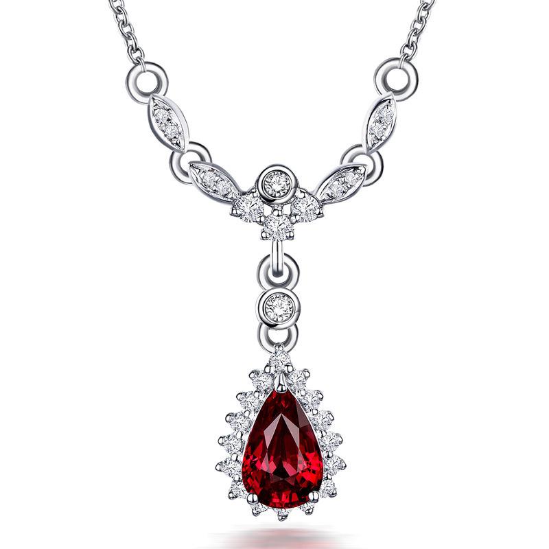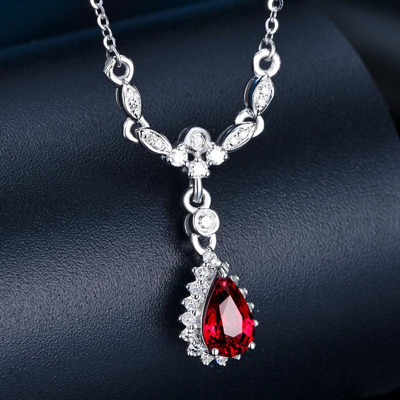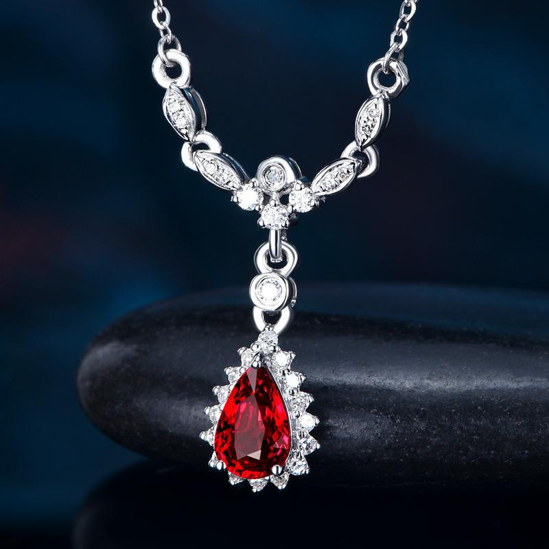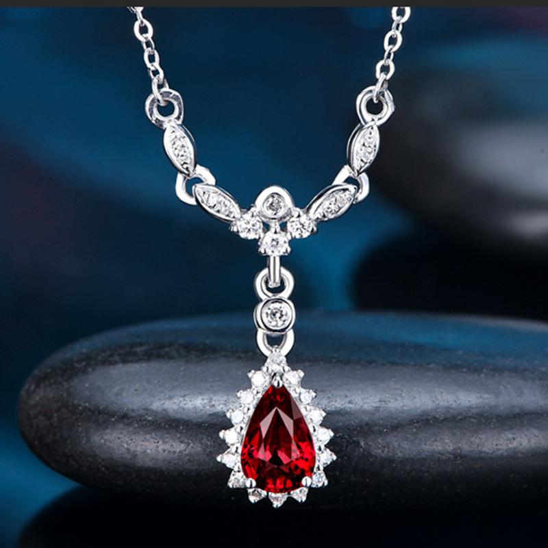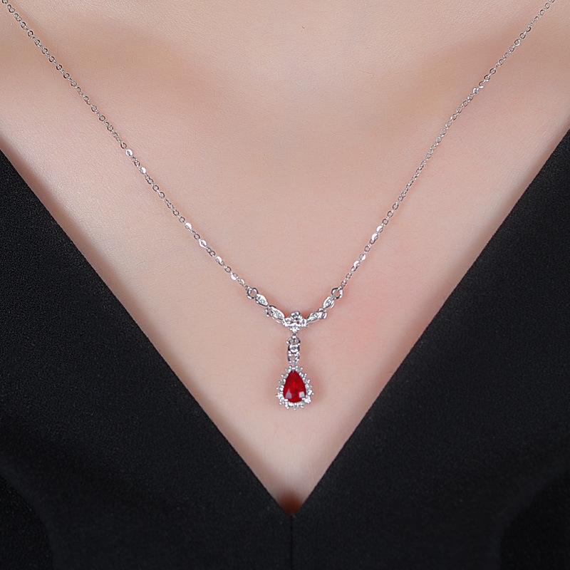 Collar de cadena para clavícula de cristal rojo, colgante de piedra preciosa rojo paloma elegante de bajo lujo europeo y americano para mujer, diamantes completos al por mayor
