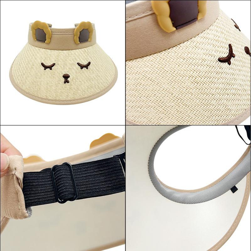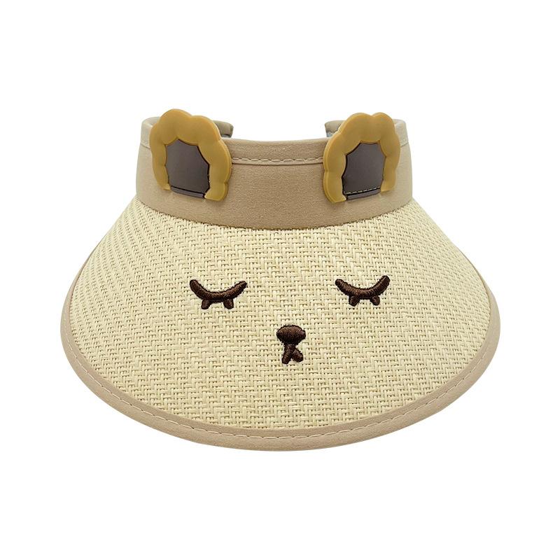 Sombrero de Paja de Verano para Niños con Dibujos Animados, Sombrero de Copa Vacío, Lindo Sombrero de Paja para Deportes al Aire Libre para Bebés, Ala Grande, Protector Solar, Sombrero para el Sol para Niños y Niñas