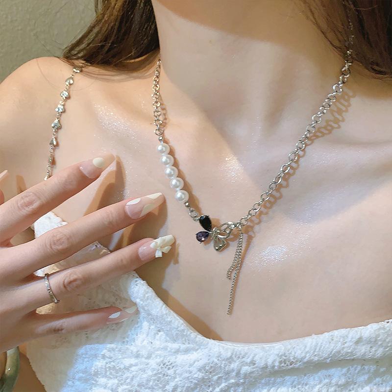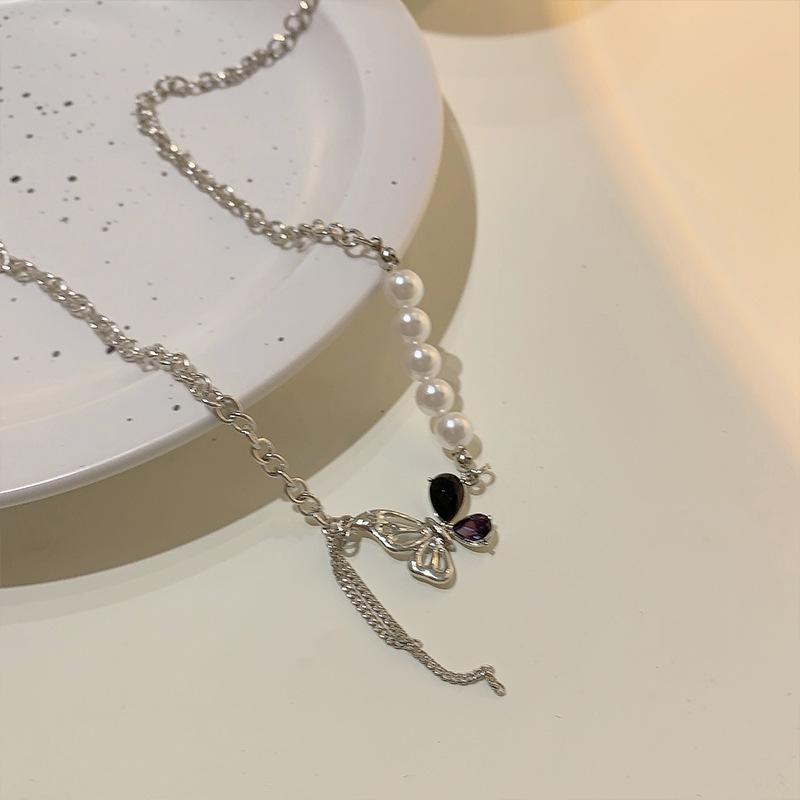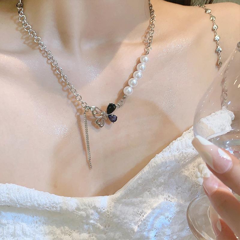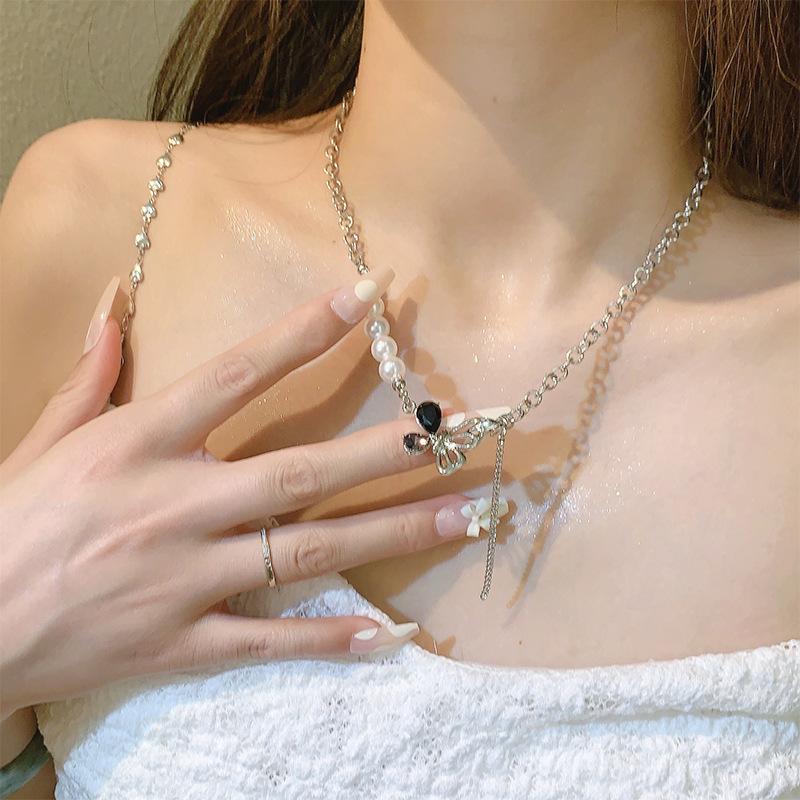 Collar de mariposa con perlas y costuras de Tiktok, diseño de nicho femenino, dulce, genial, sexy, cadena de clavícula, collar de moda que combina con todo.