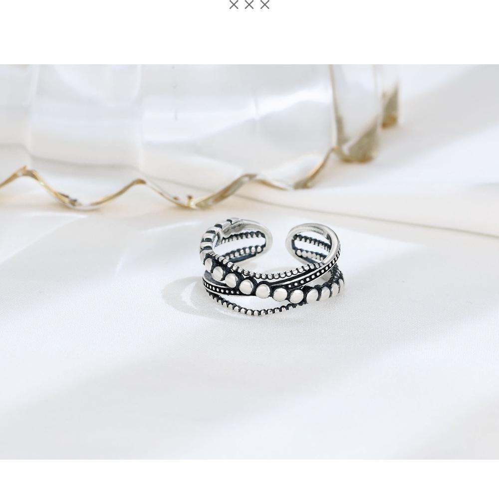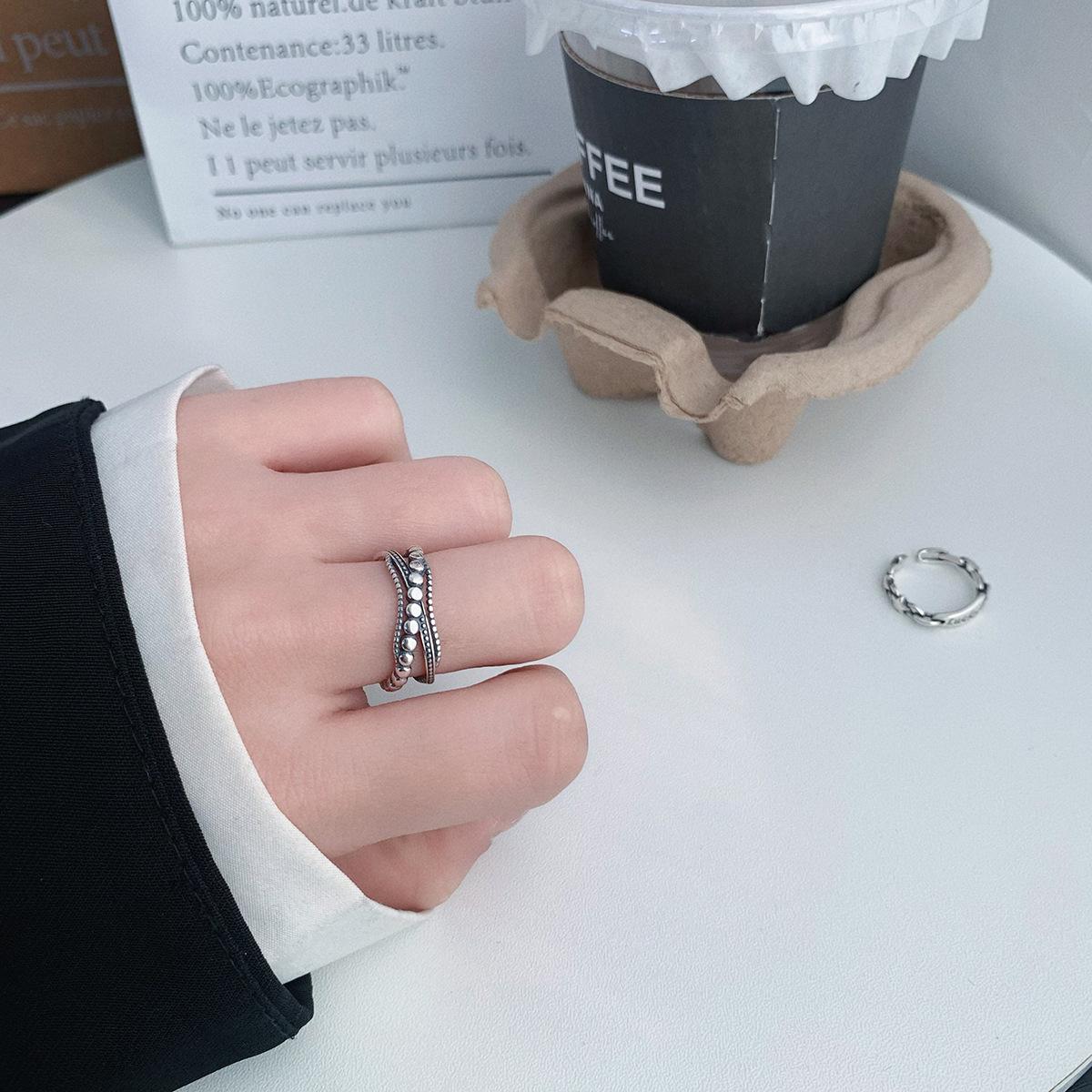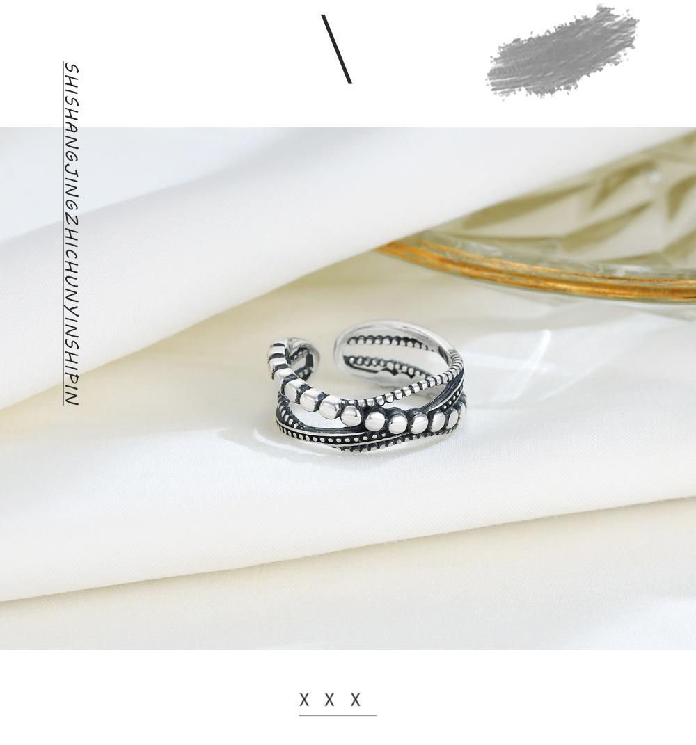 Anillo abierto con diseño de cruz retro y puntos en plata de ley S925, elegante y a la moda, para mujer