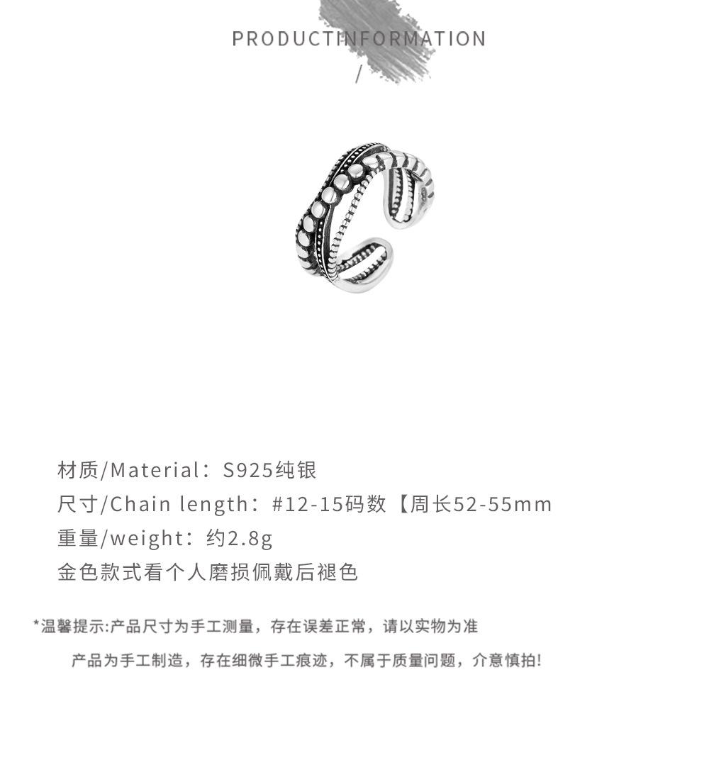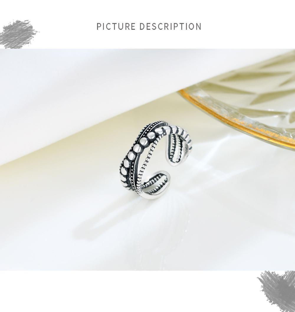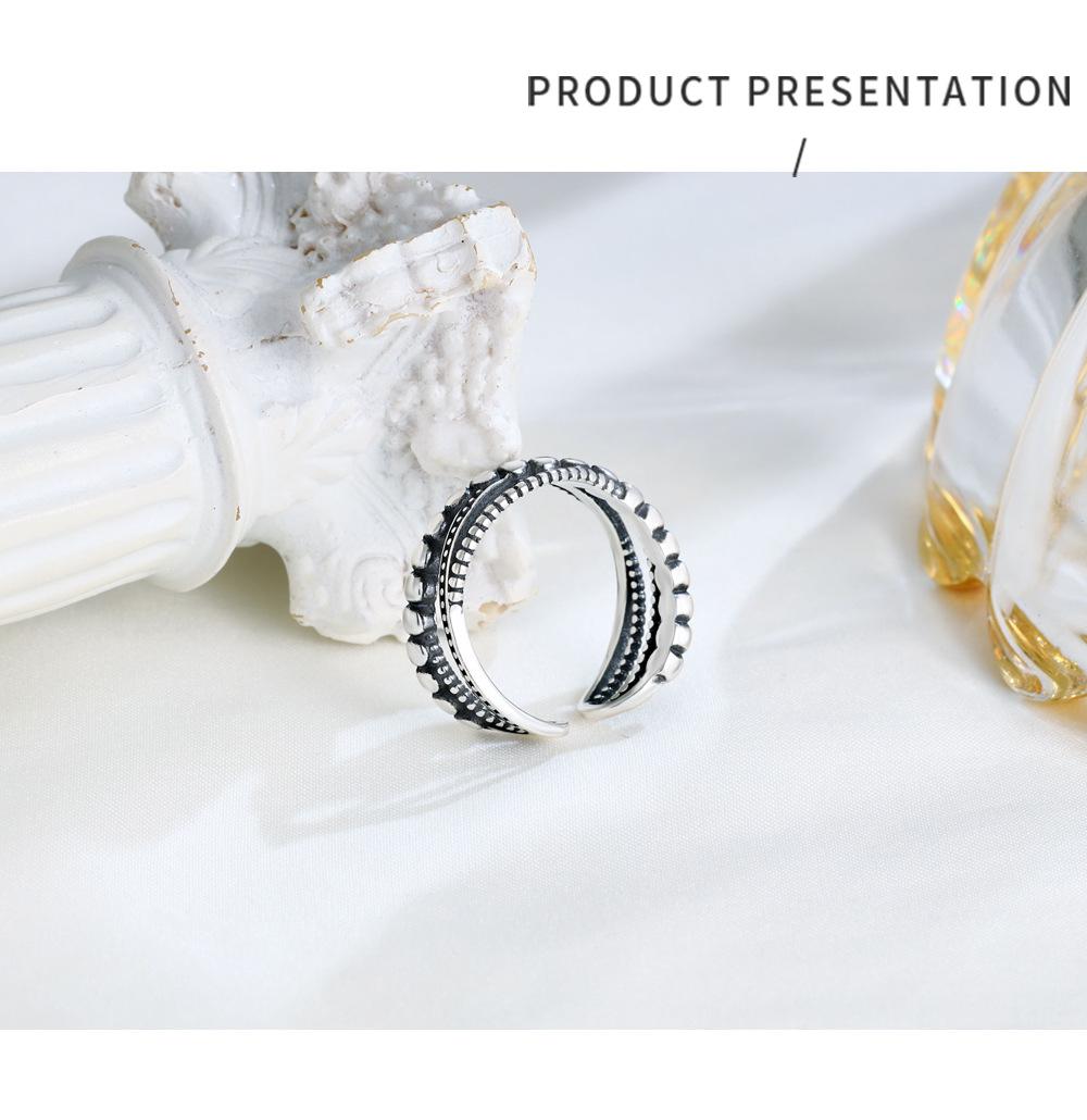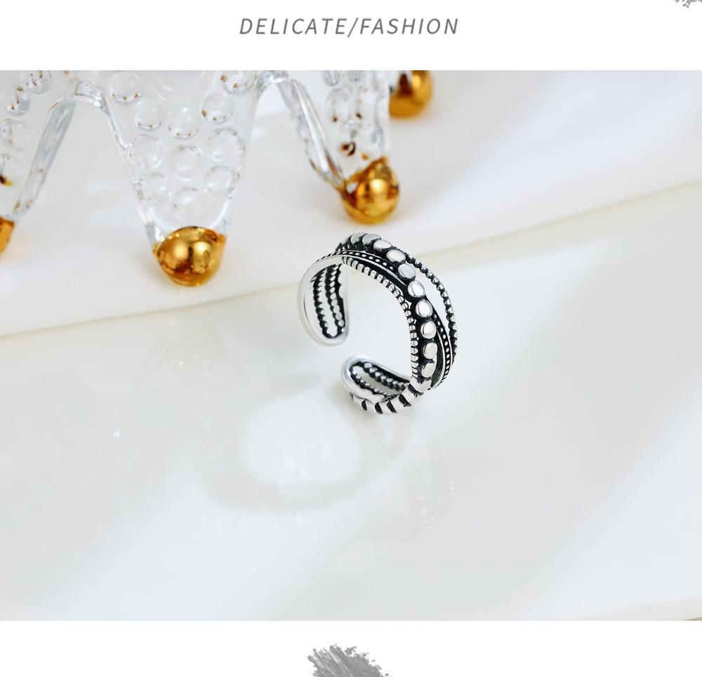 Anillo abierto con diseño de cruz retro y puntos en plata de ley S925, elegante y a la moda, para mujer