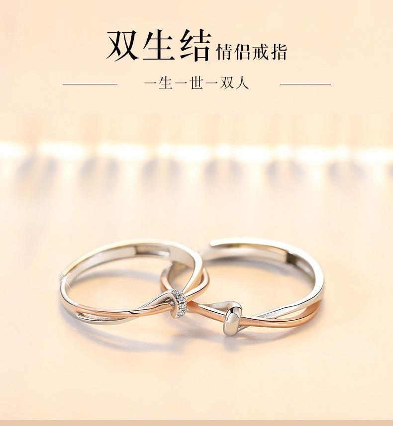 Anillo de pareja de plata esterlina S925 Jianjia y Bailu, par masculino y femenino, diseño de nicho original, anillo de par de boca viva de lujo ligero |
