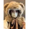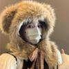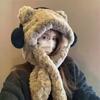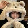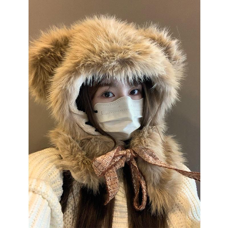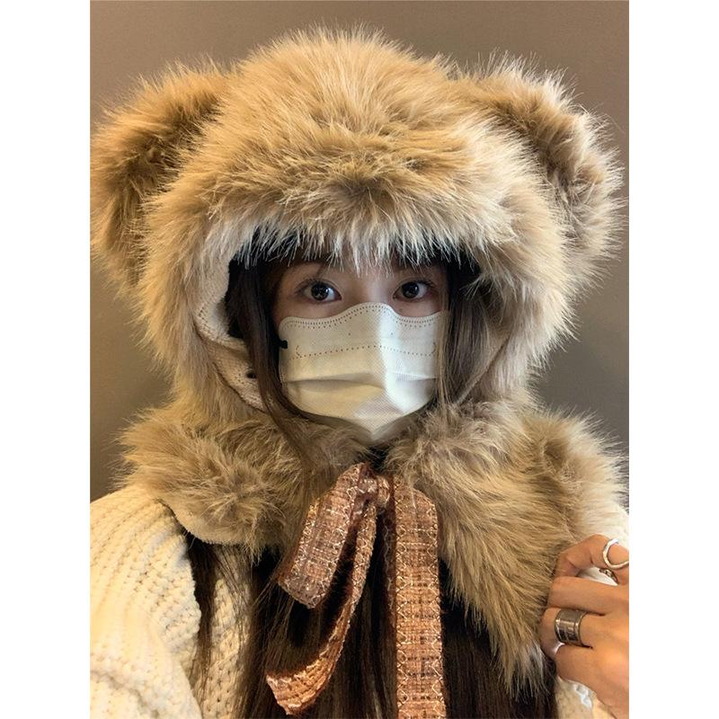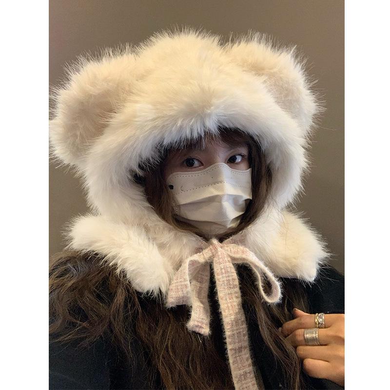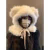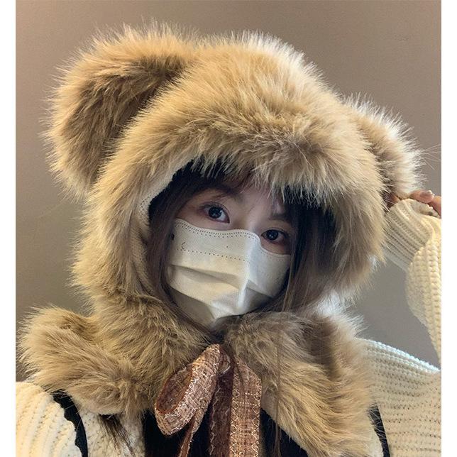 Lindo oso de peluche gorro cálido grueso para mujer otoño e invierno orejeras bufanda integrada a prueba de viento gorro Lei Feng marea