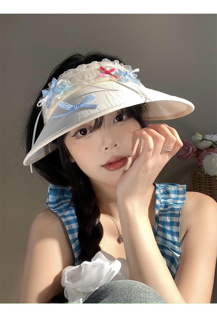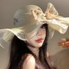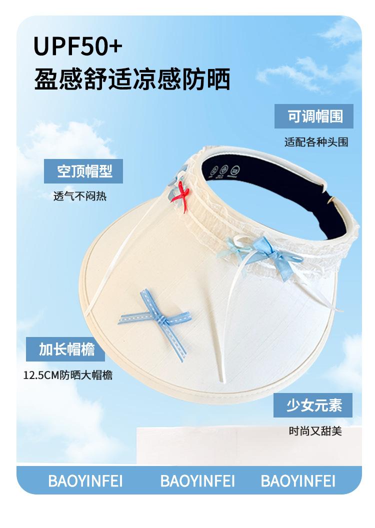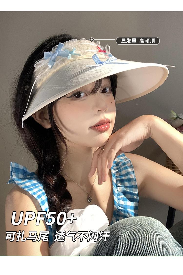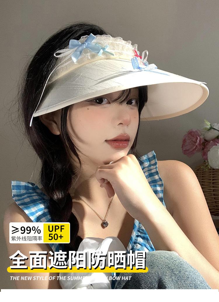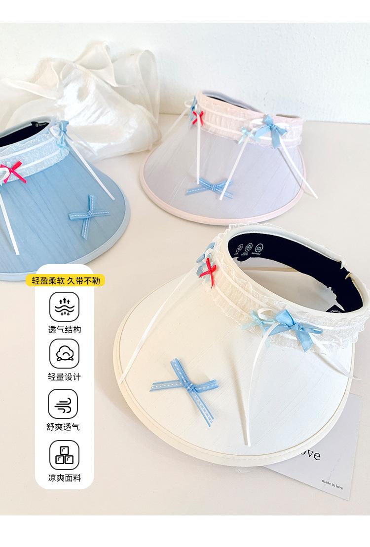 Sombrero de Sol de Copa Vacía con Encaje de Lazo para Mujer Verano Ala Ancha Anti-Uv Sombrero de Sol para Exterior Moderno