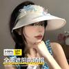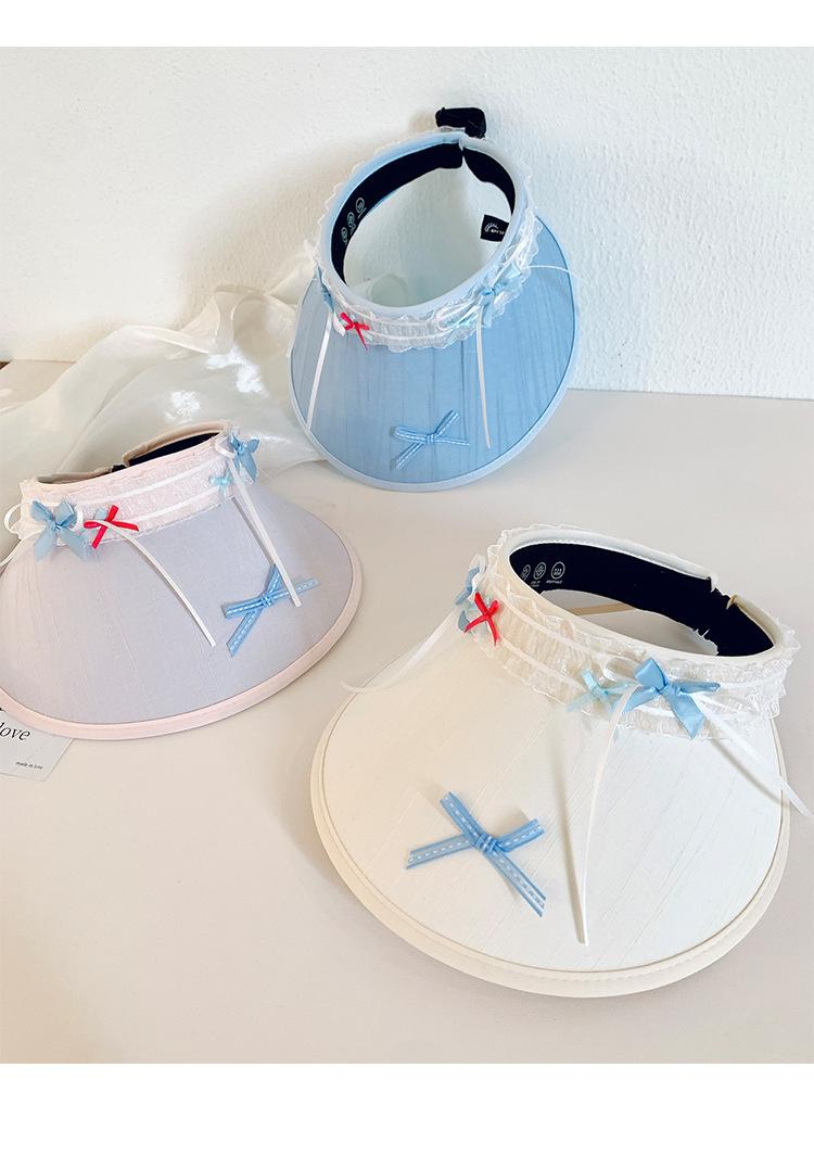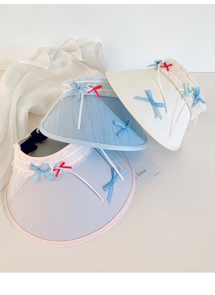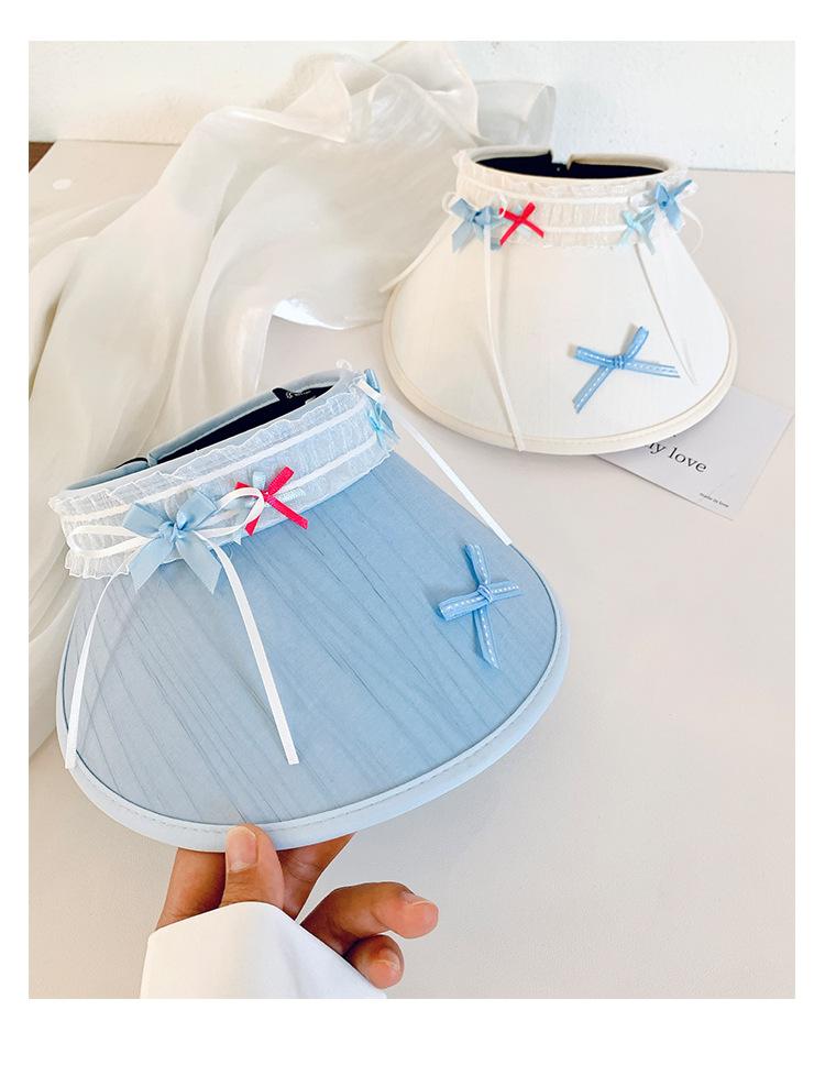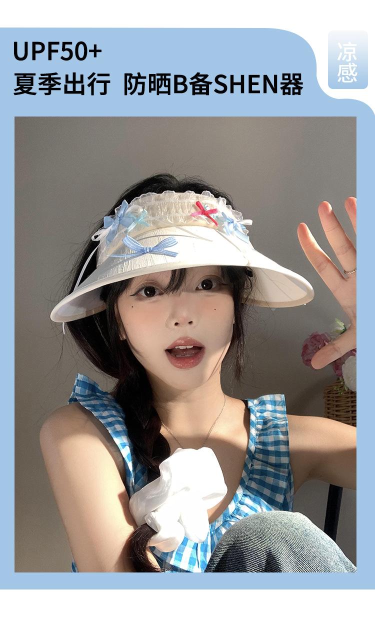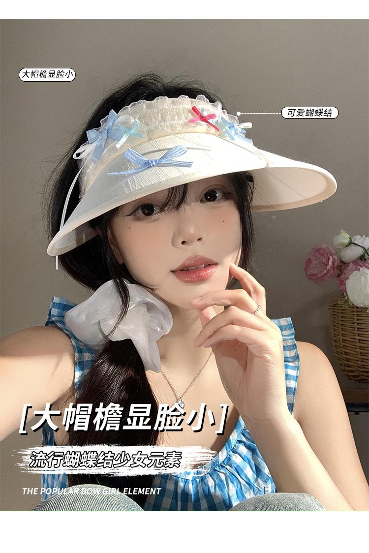 Sombrero de Sol de Copa Vacía con Encaje de Lazo para Mujer Verano Ala Ancha Anti-Uv Sombrero de Sol para Exterior Moderno