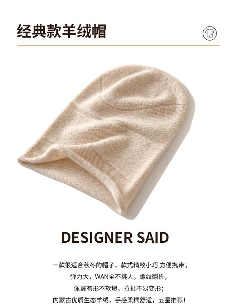 Gorro de cachemira para mujer, otoño e invierno, nuevo jersey de punto, gorro de lana cálido de color liso que combina con todo, gorro de pelo, regalo