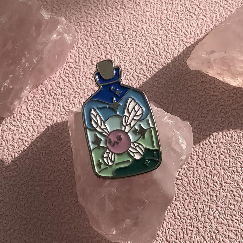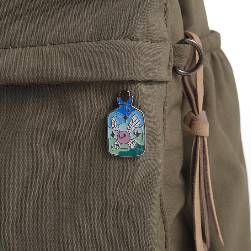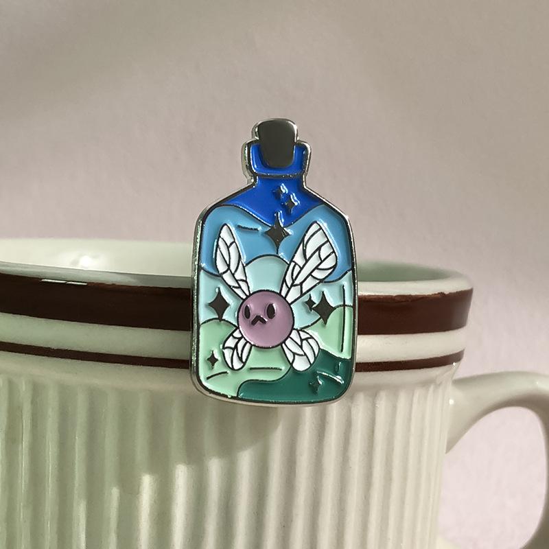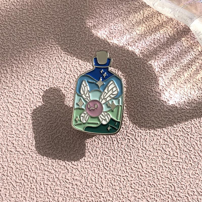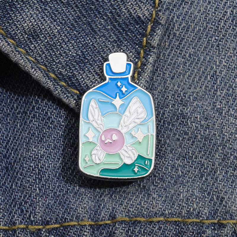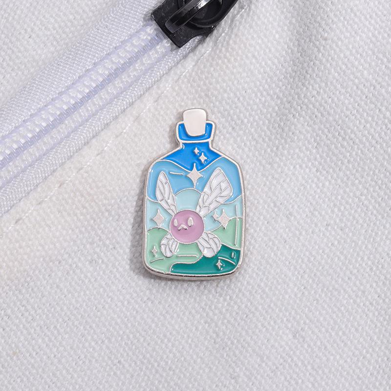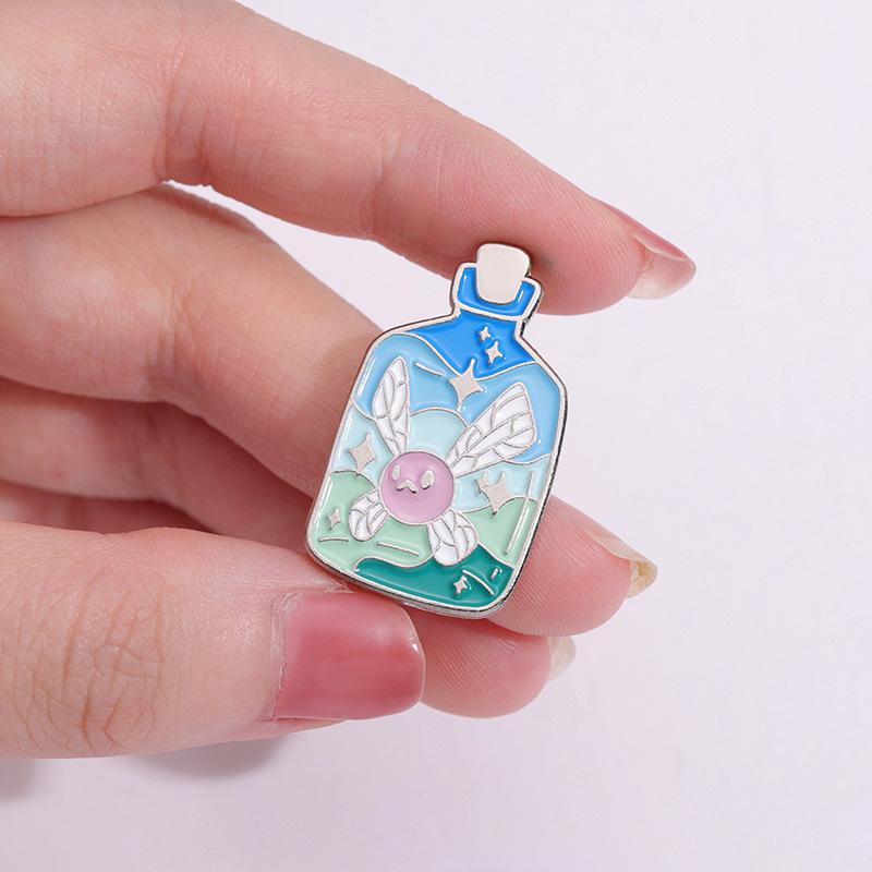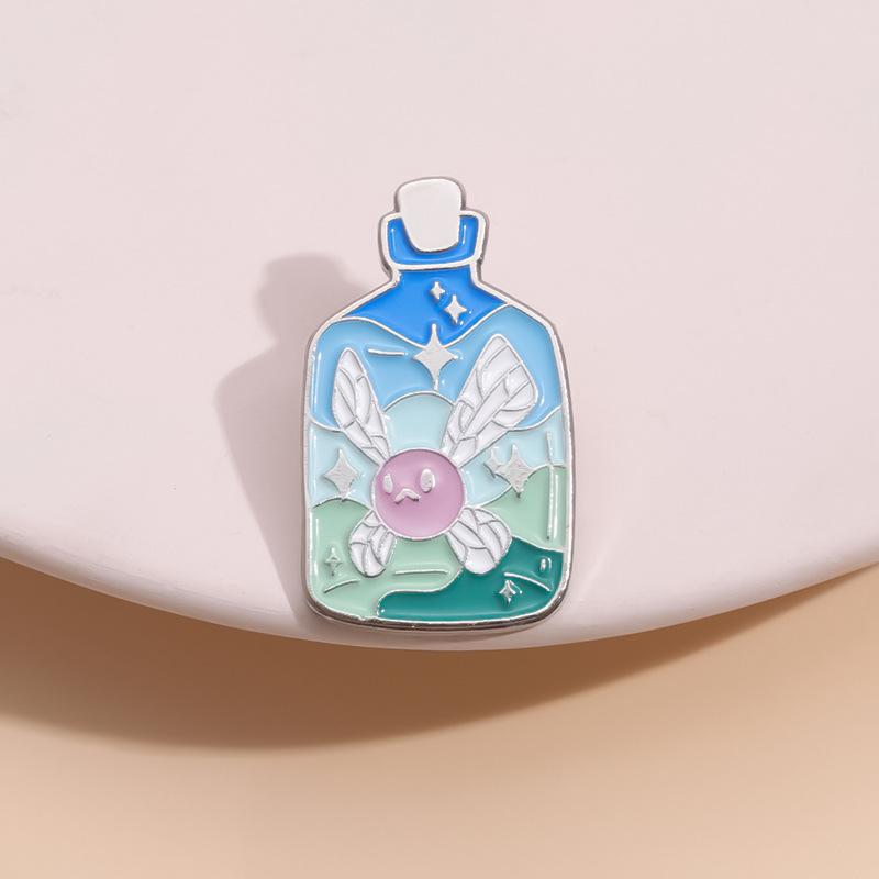 Nueva insignia de metal con forma de botella azul de dibujos animados, juego de anime, accesorios de regalo pequeños, broche.
