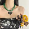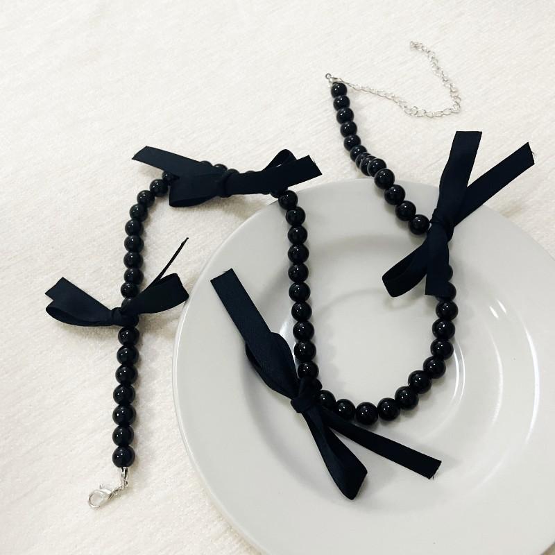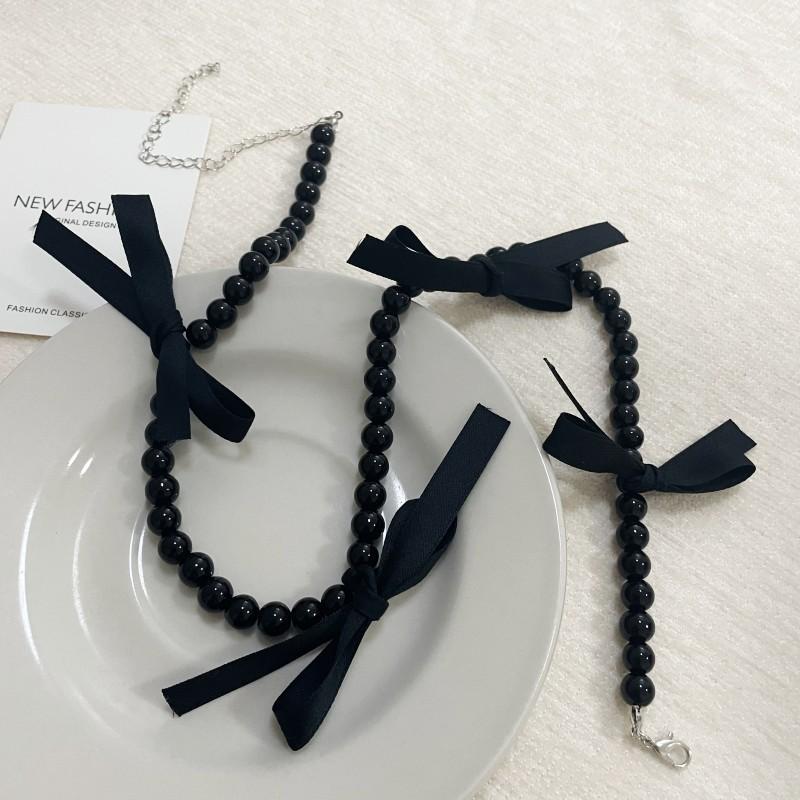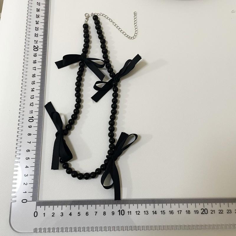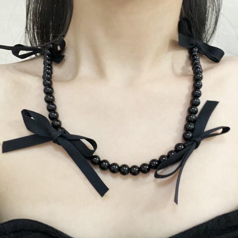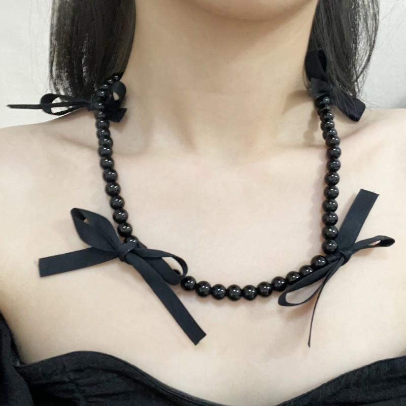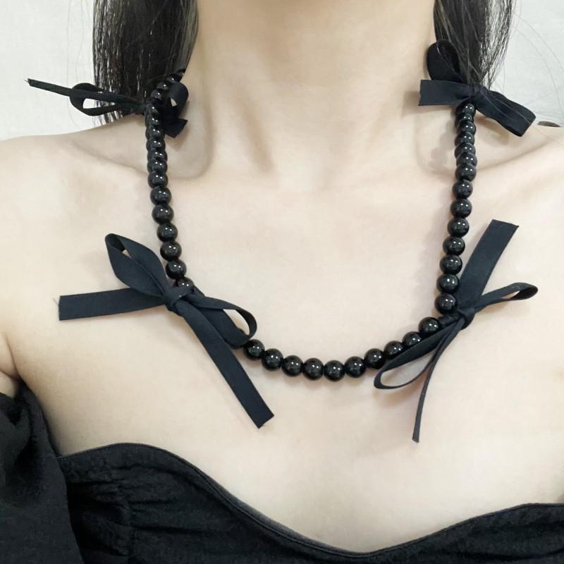Collar de nicho moderno y moderno con cadena de clavícula con cuentas y lazo negro clásico retro, estilo único y moderno.