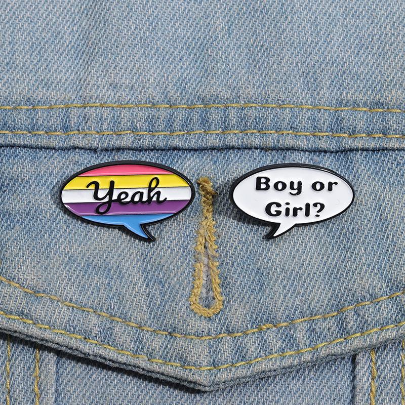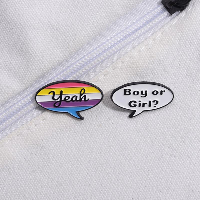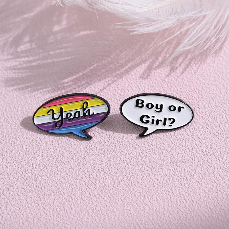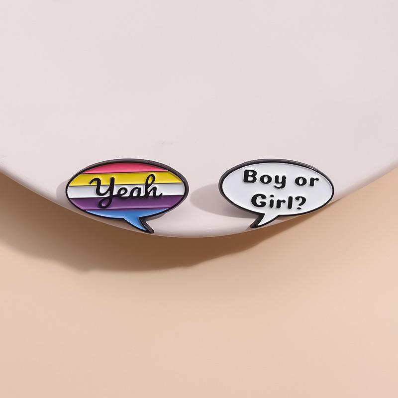 Insignia de Letra Inglesa de Caja de Diálogo de Dibujos Animados Más Vendida de Amazon Moda Personalizada Estilo Pareja Broche de Joyería Simple