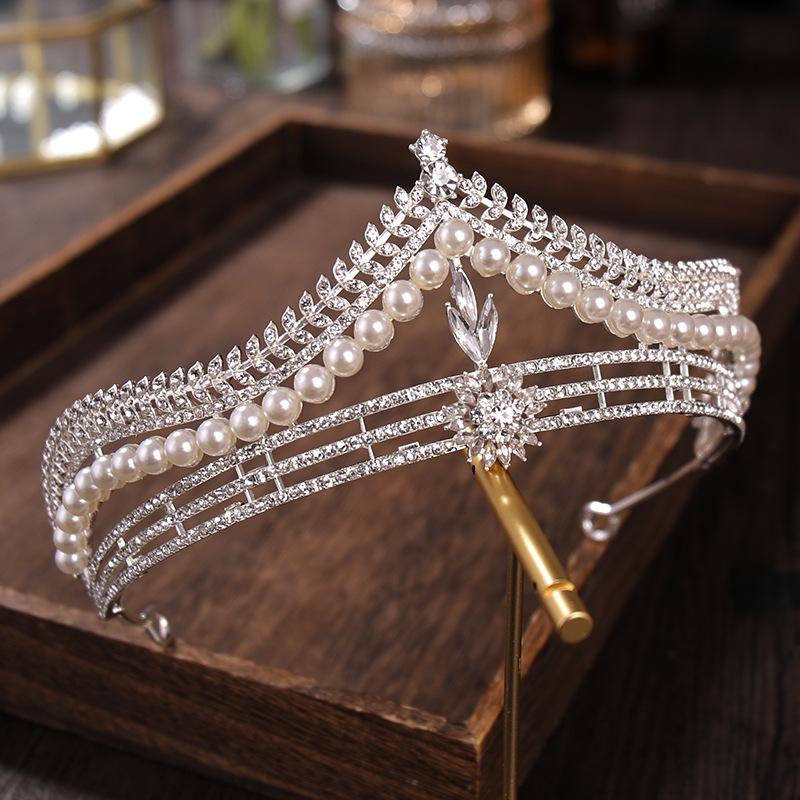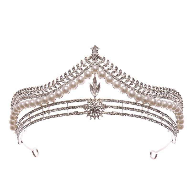 Tuan Ming Nuevo Tocado de Corona de Perlas Europeas y Americanas Sencillo Diamante de Imitación Media Circunferencia Corona de Princesa Accesorios para Peinado de Cena