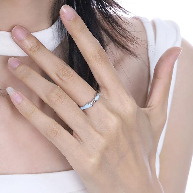 Anillo de mariposa rosa con goteo de aceite de esmalte para mujer, no se desvanece, la apertura es ajustable, nicho, alta gama, lujo ligero, nuevos productos al por mayor