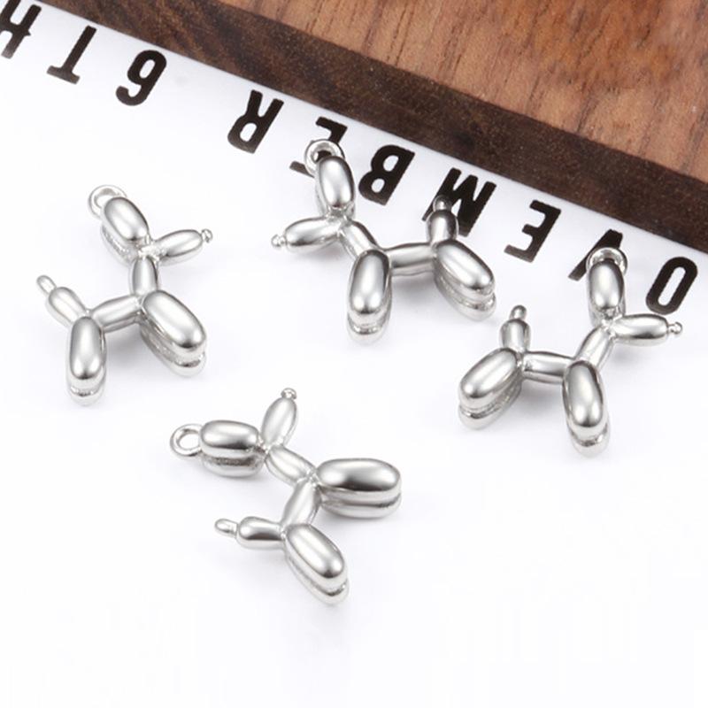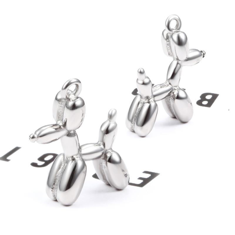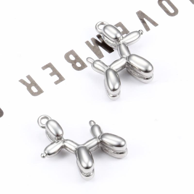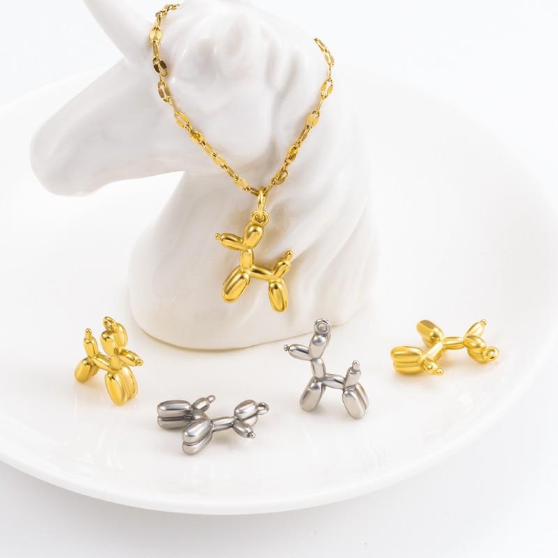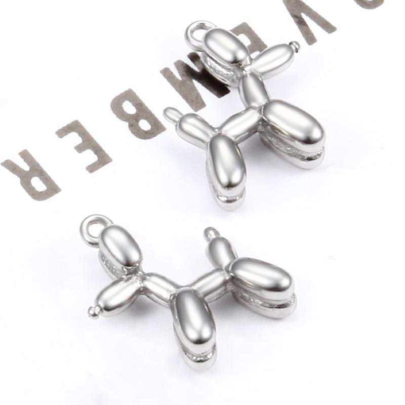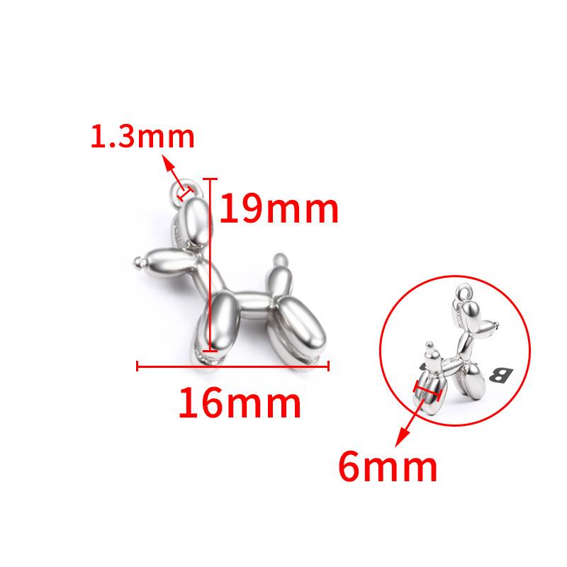 Steel color three-dimensional balloon dog pendant 19mm, Vacuum electroplating 18k gold balloon dog pendant 19mm