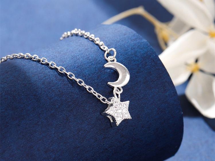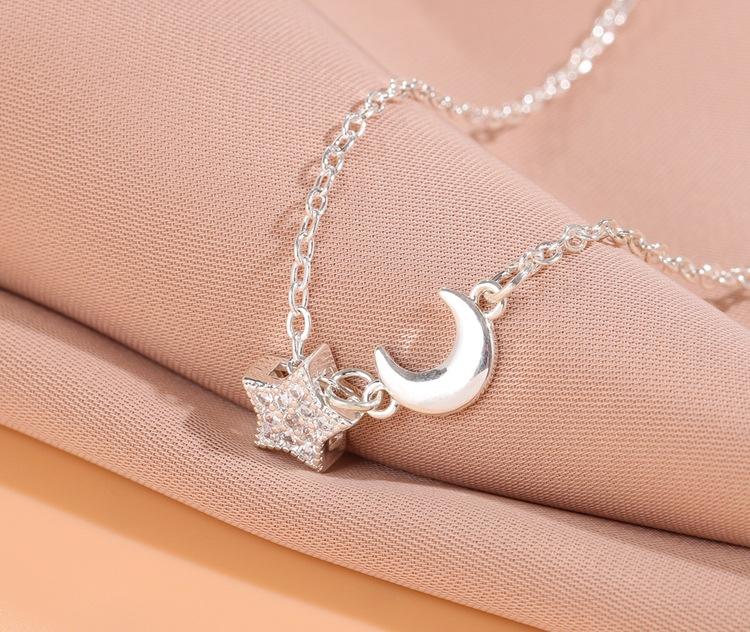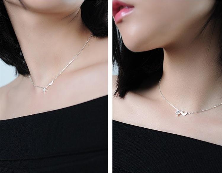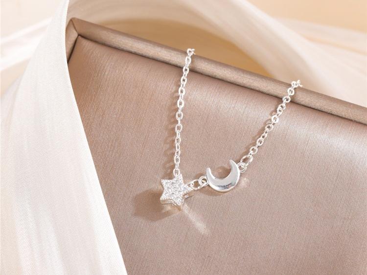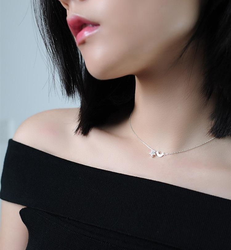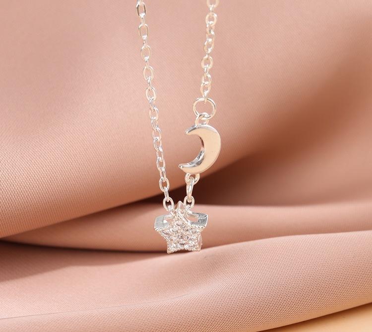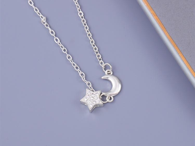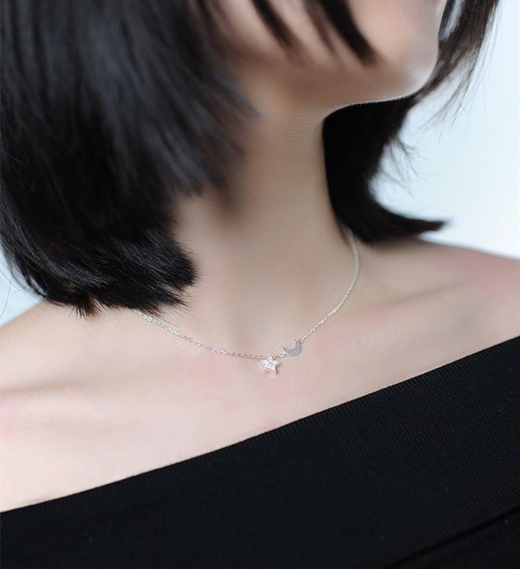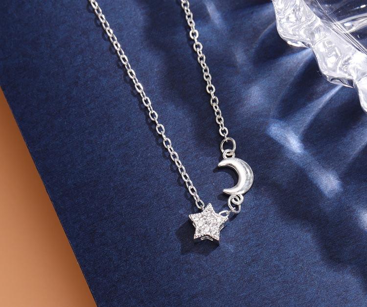 Collar con colgante de estrella y luna con diamantes de moda para mujer, cadena de clavícula con personalidad, temperamento, venta al por mayor