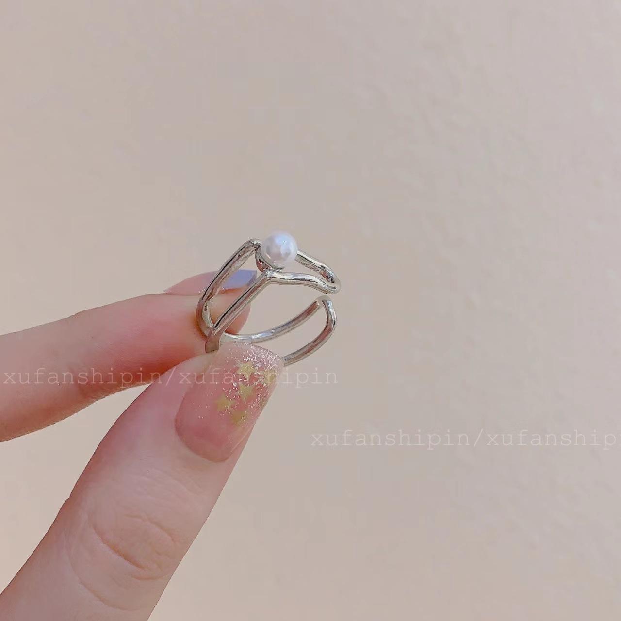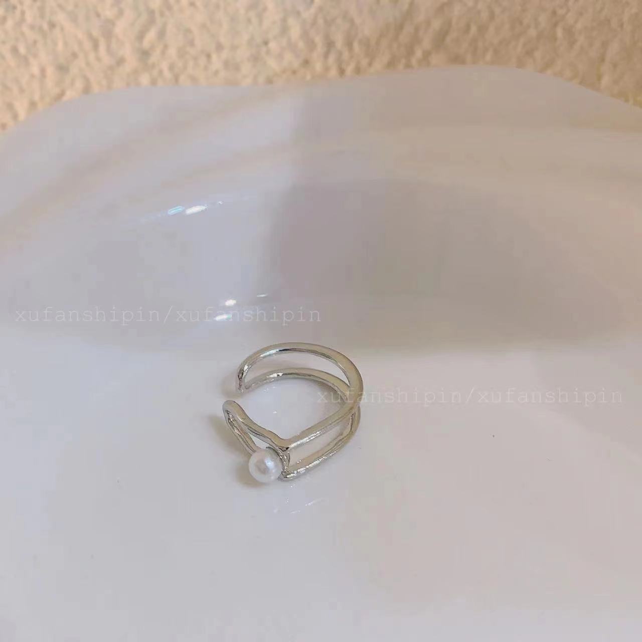 Anillo irregular de doble capa con perla y amor para mujer, diseño de nicho, anillo de alta calidad, anillo de dedo distintivo y de moda.