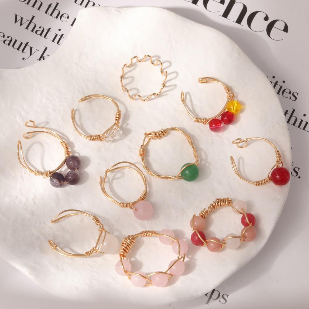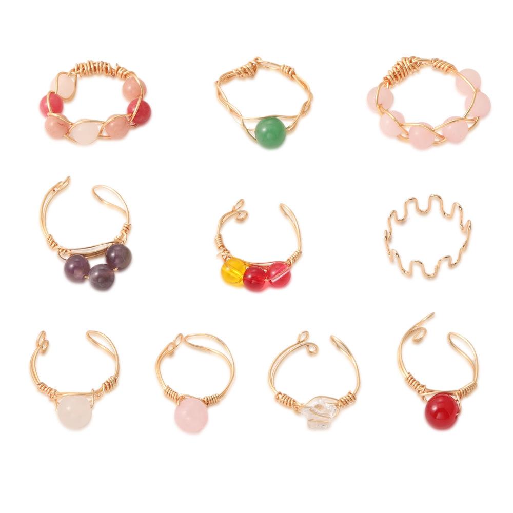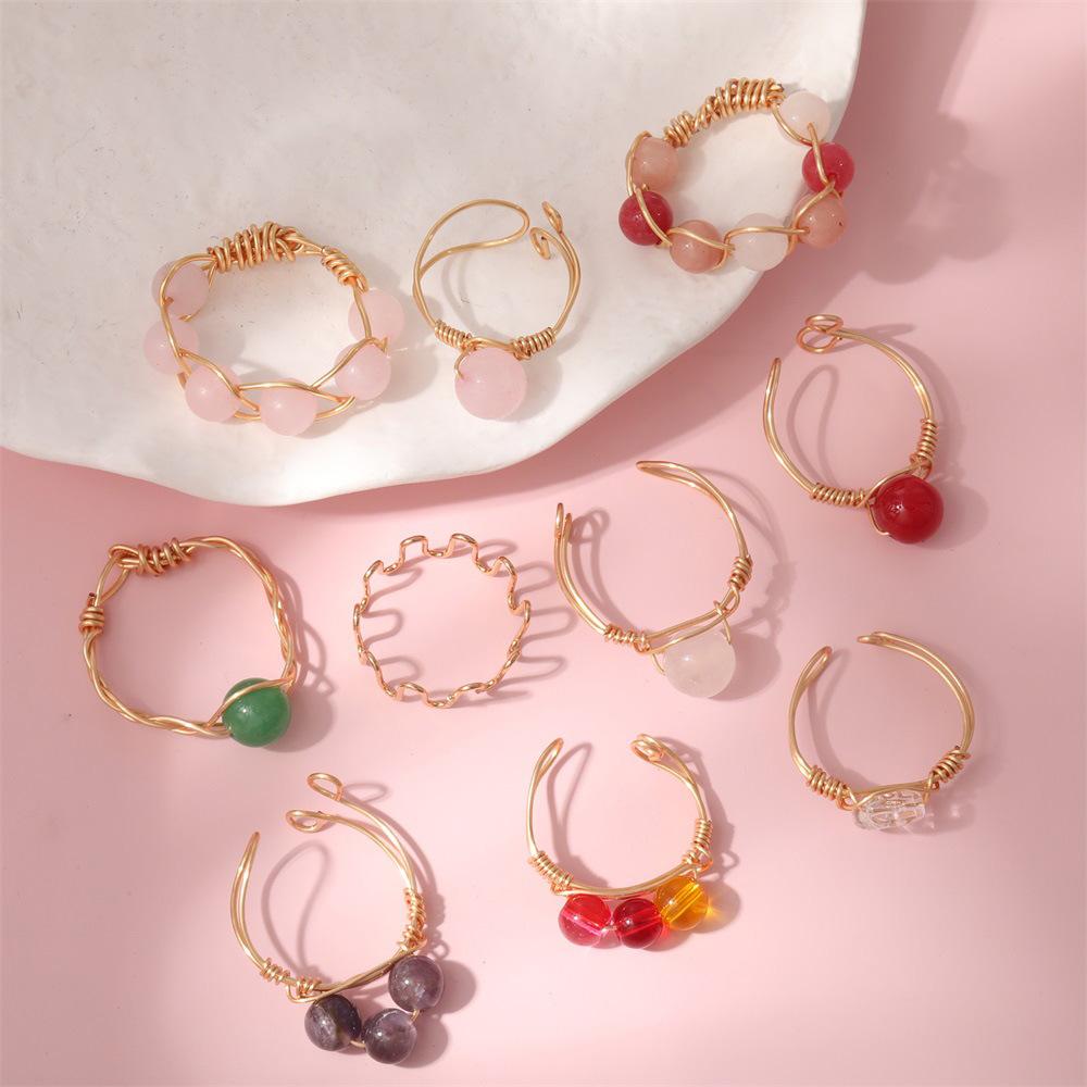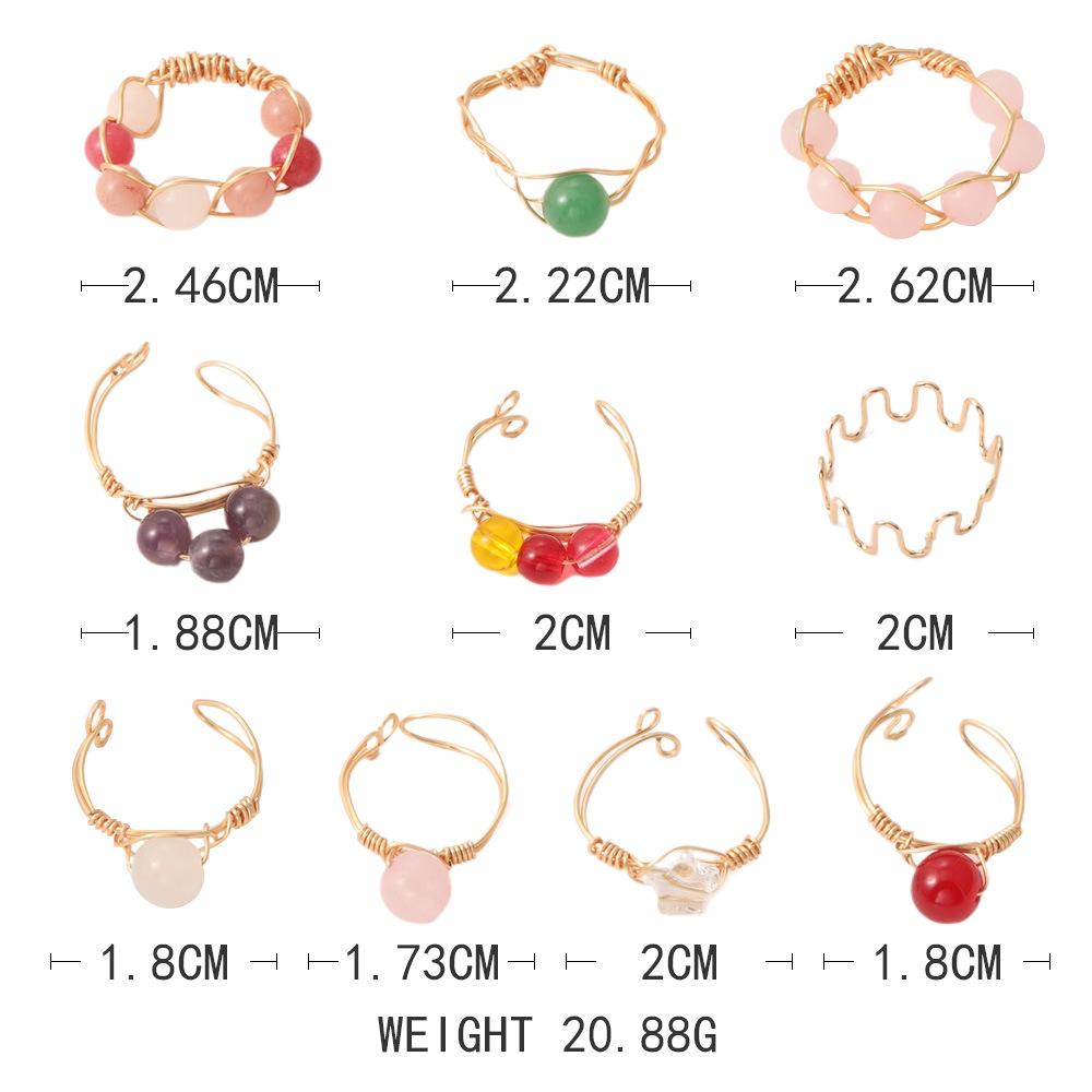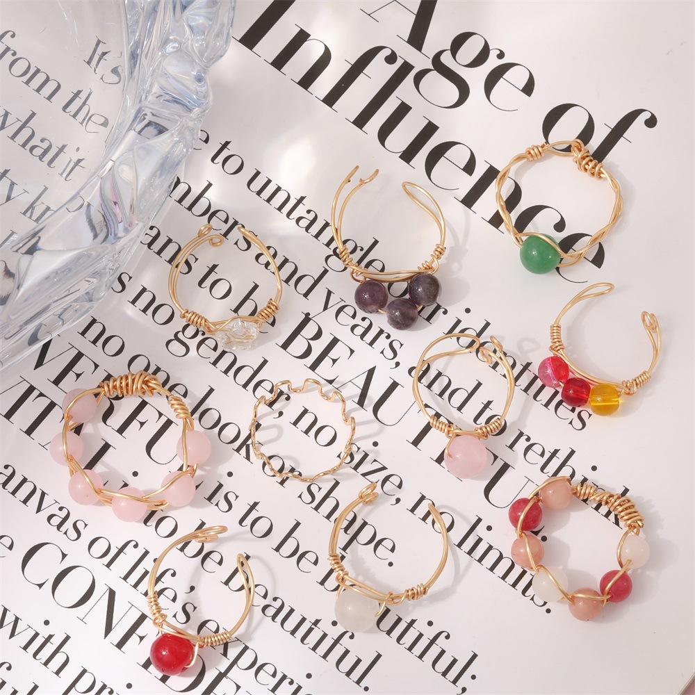 Europa y Estados Unidos nuevo anillo de traje de 10 piezas con apertura envuelta a mano de cuentas de resina de color personalizadas transfronterizas, venta al por mayor de joyería