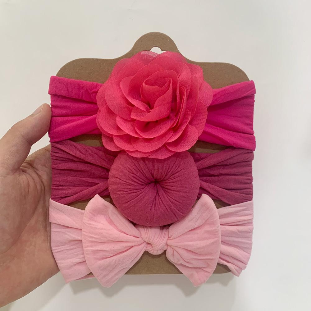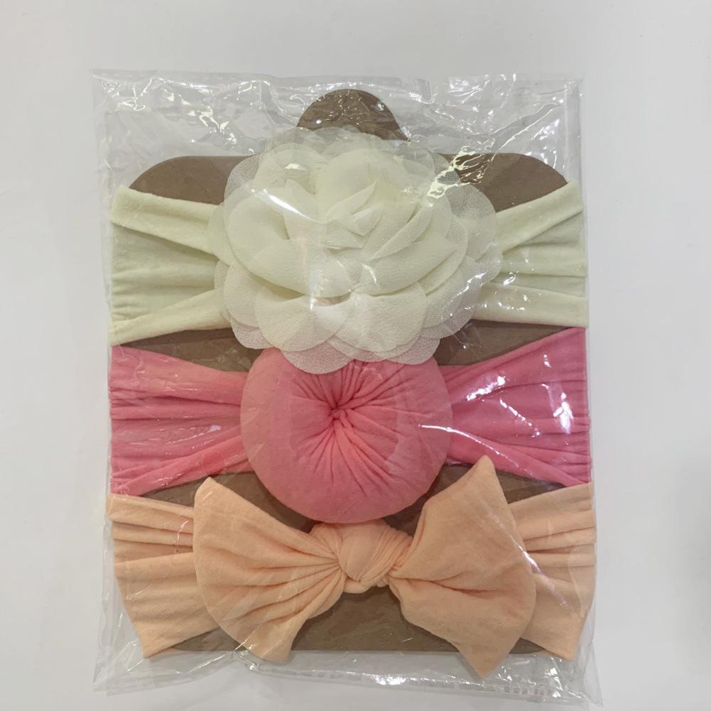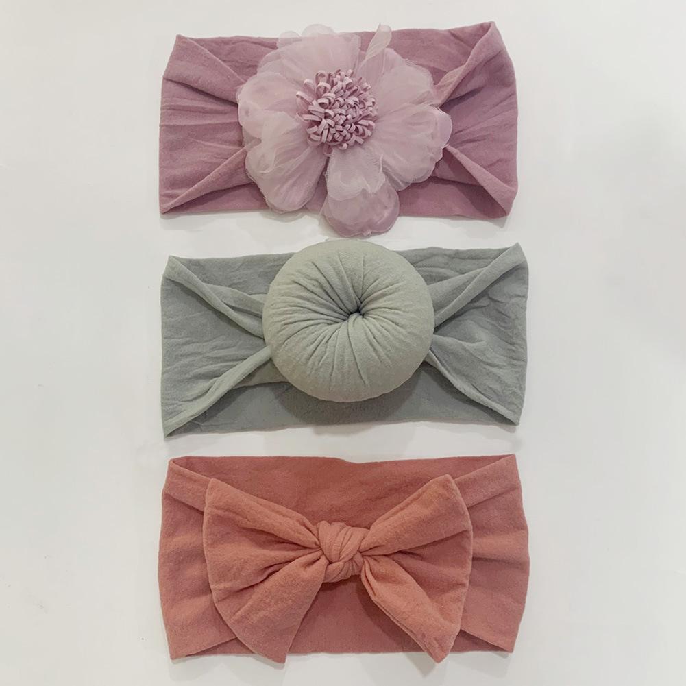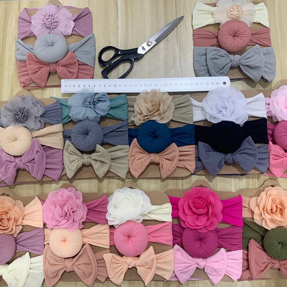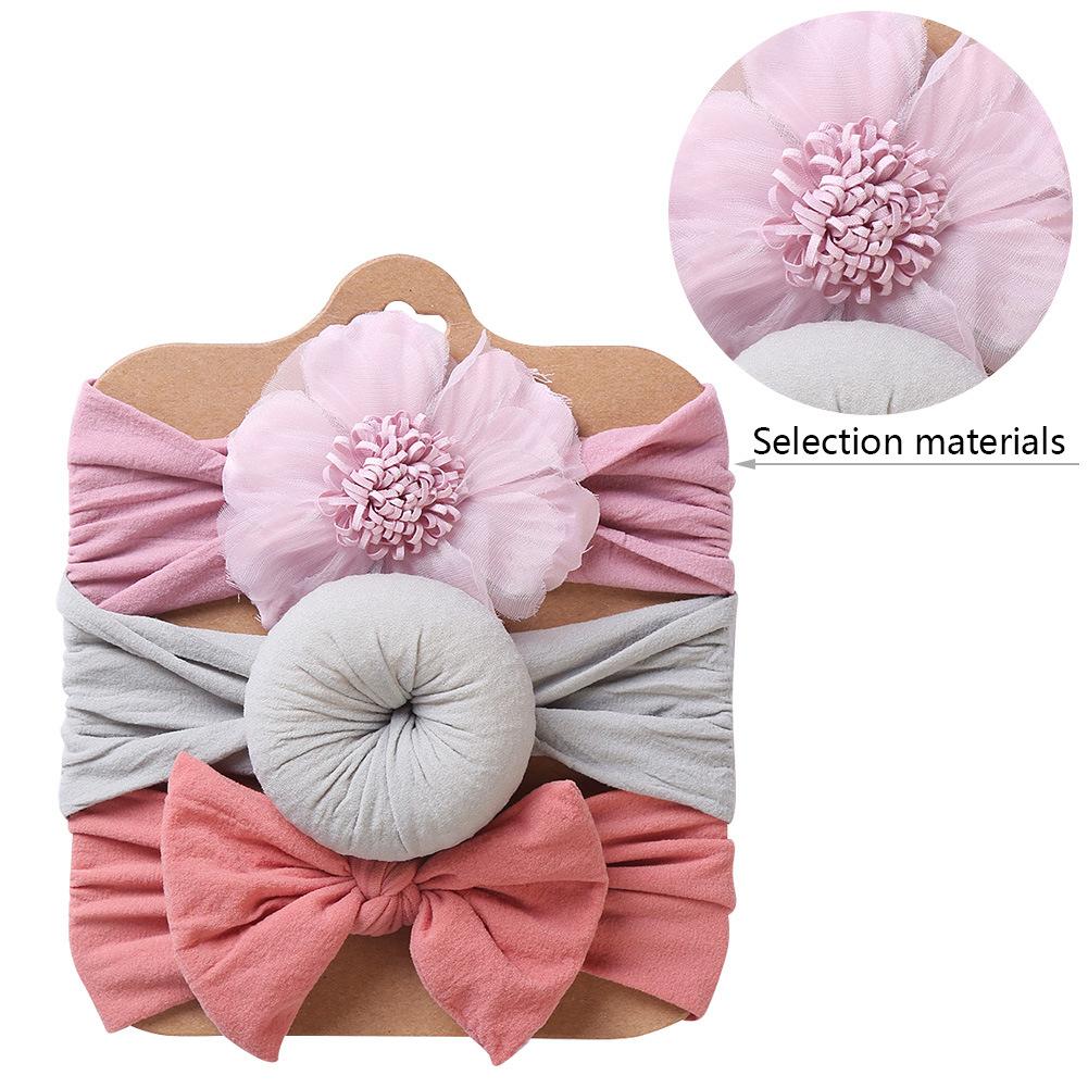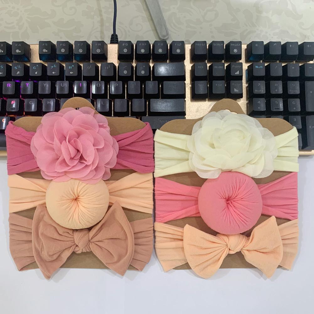 Conjunto de tres piezas de diadema con lazo de flores para niños de Europa y América, tocado elástico bonito de moda para bebés