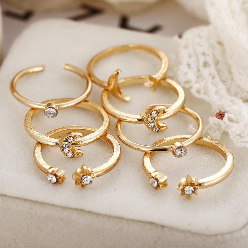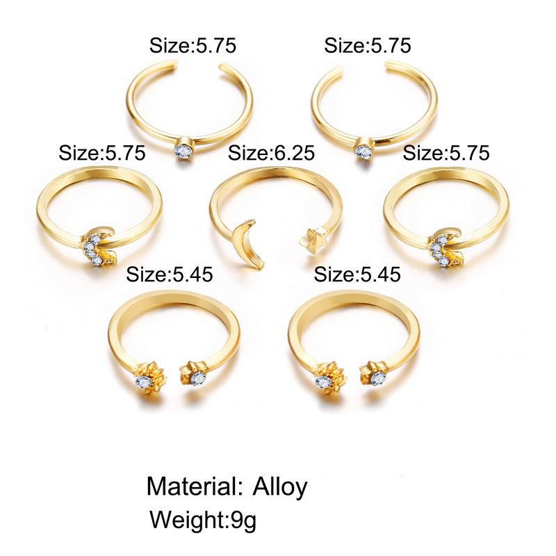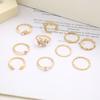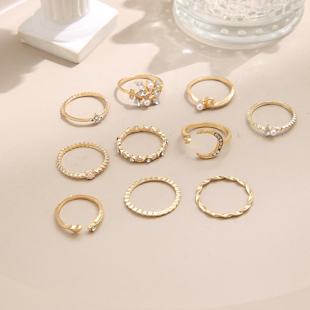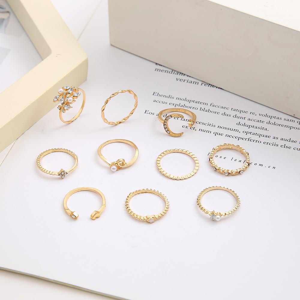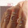 Anillo de Estrella y Luna Transfronterizo Corazón Hoja Geométrico Juego de 10 Anillos Creativo Retro Juego de Anillos de Articulación Femenino