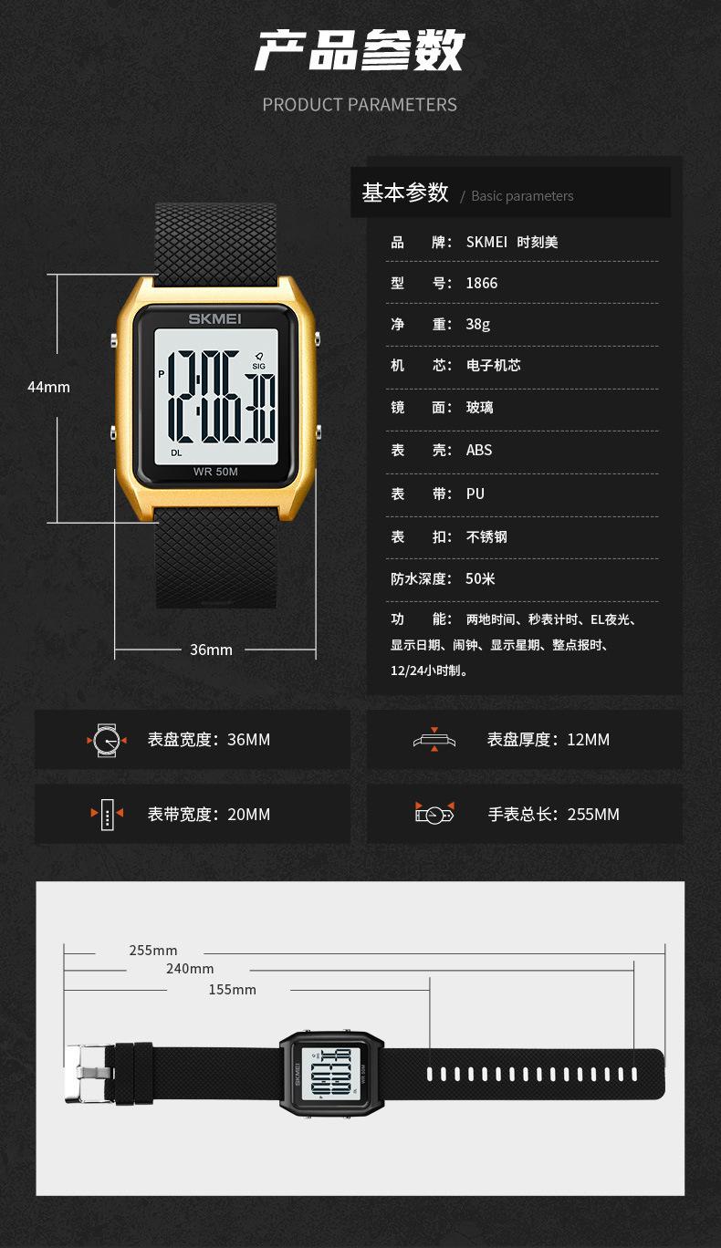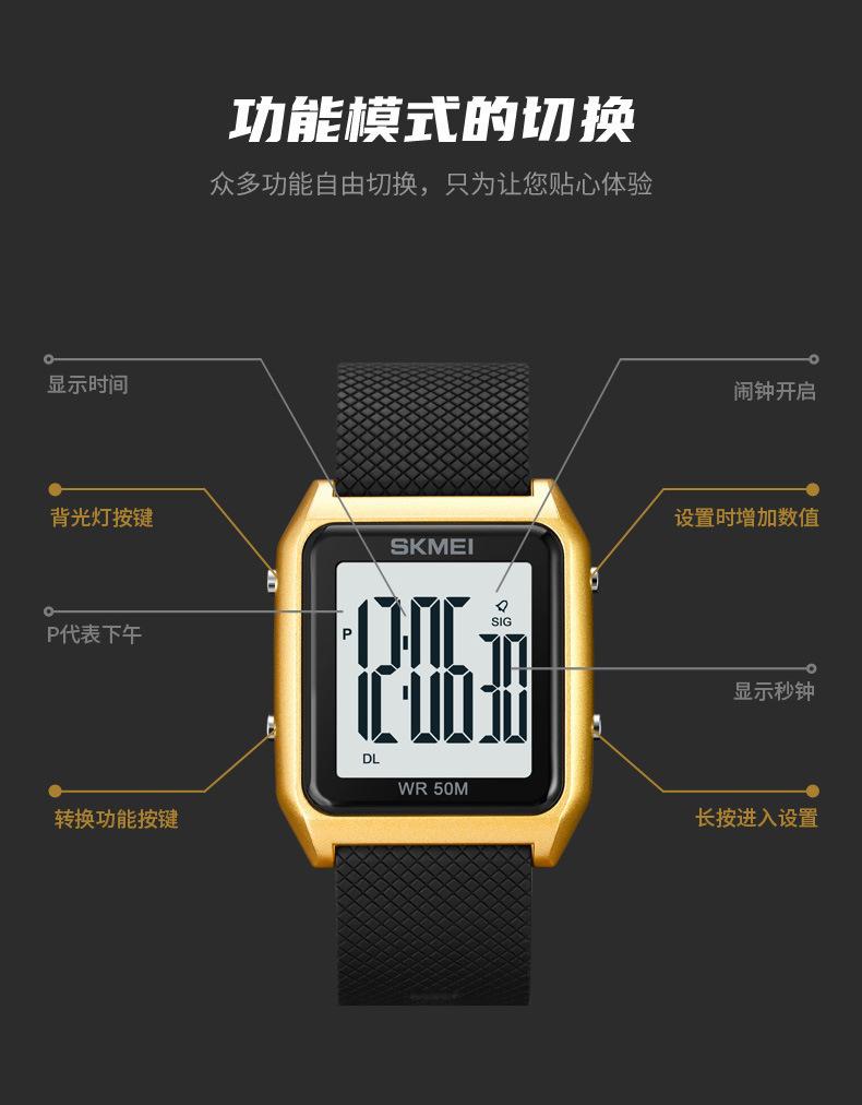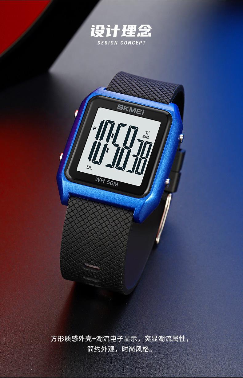 Reloj de ejercicio multifuncional para estudiantes de moda skmei reloj cuadrado resistente al agua reloj electrónico moderno para hombres y mujeres adolescentes