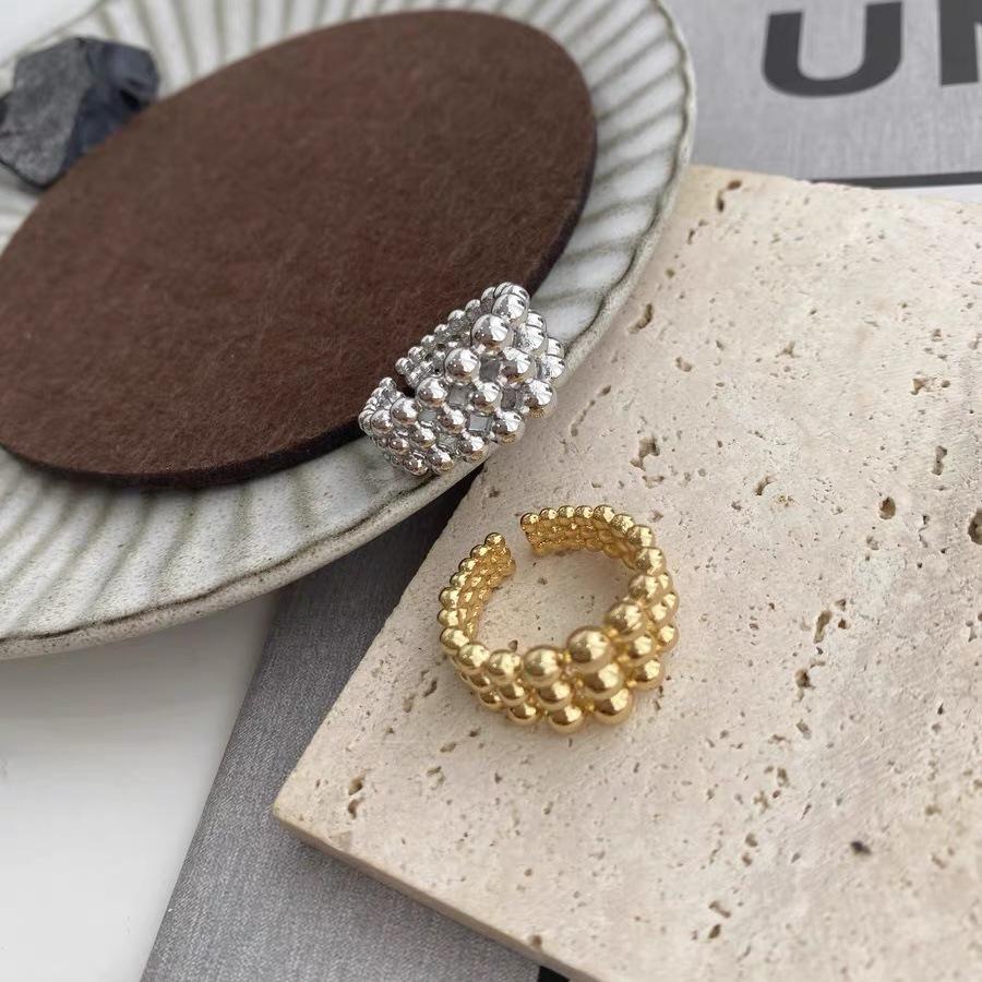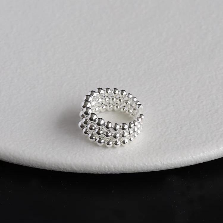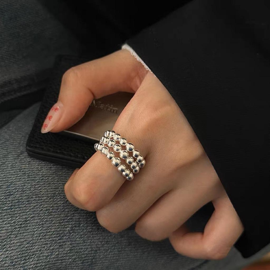 Sentido del Diseño Anillo Nicho de Clase Alta para Mujer Simple de Tres Capas con Cuentas Redondas Abierto Personalidad Estilo Ins Anillo Grande de Alta Resistencia Japonés-Coreano