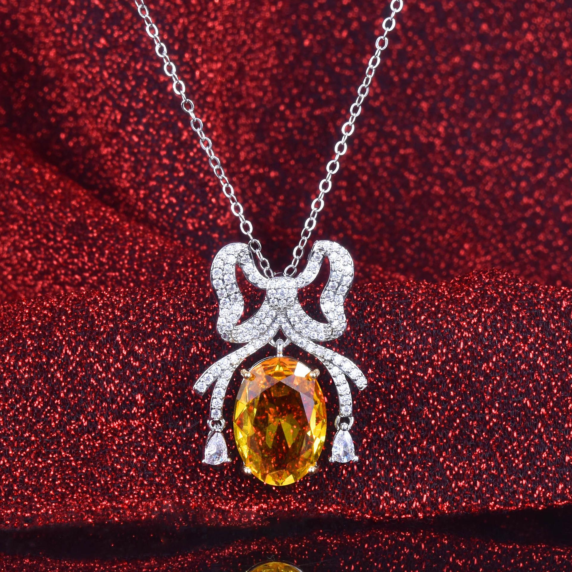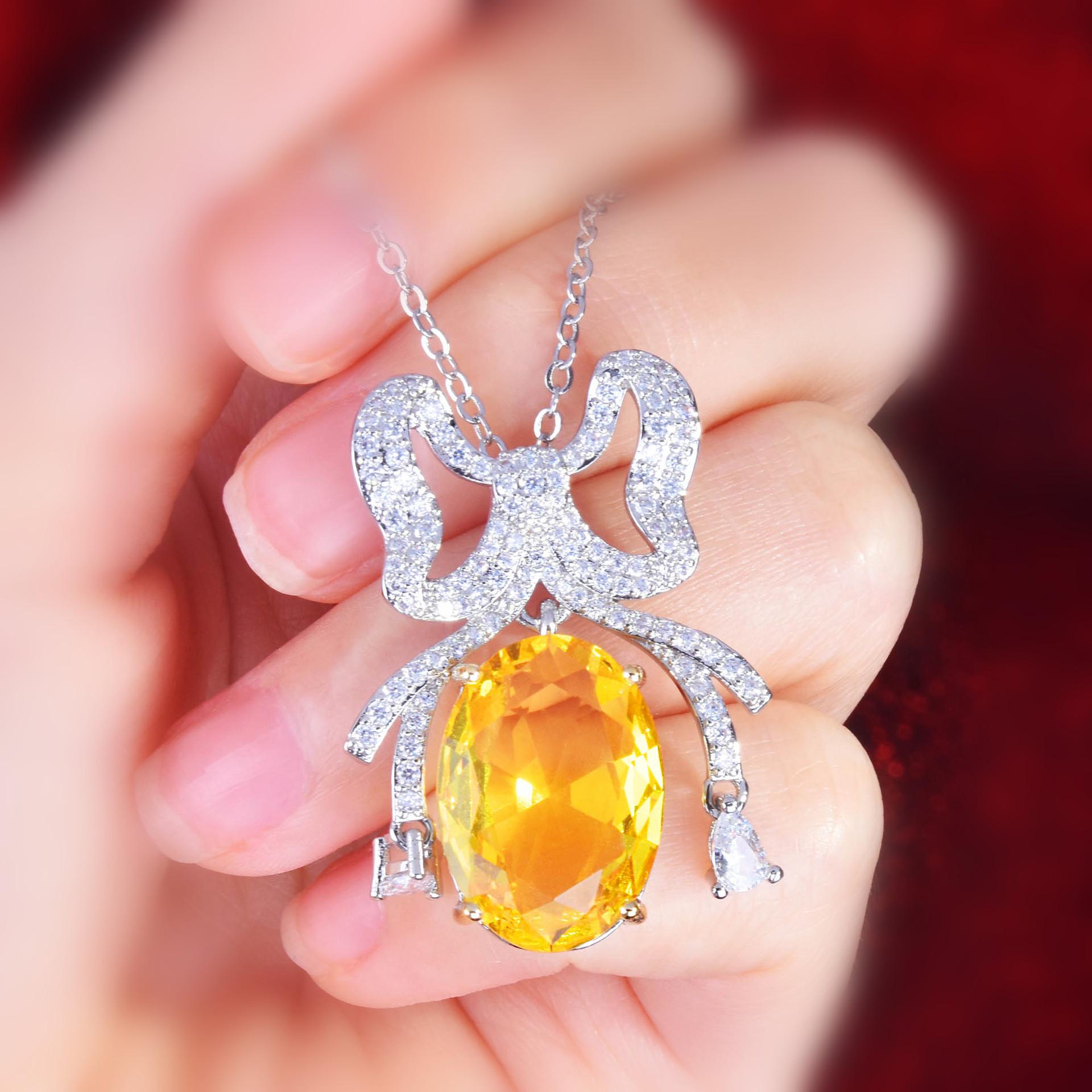 Collar de mariposa con diseño de flor y diamantes, recomendado por el libro Little Red Riding, con diseño de joyería de alta gama, colgante de huevo de paloma con diamantes amarillos y superbrillante.