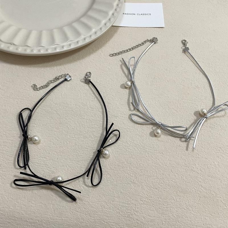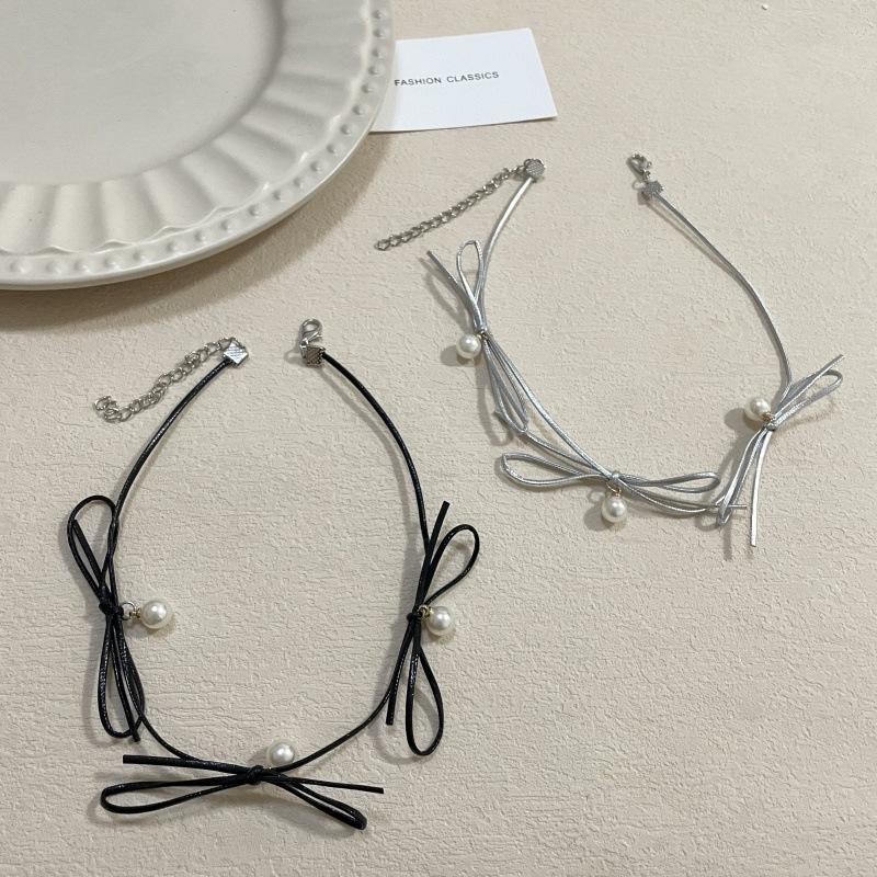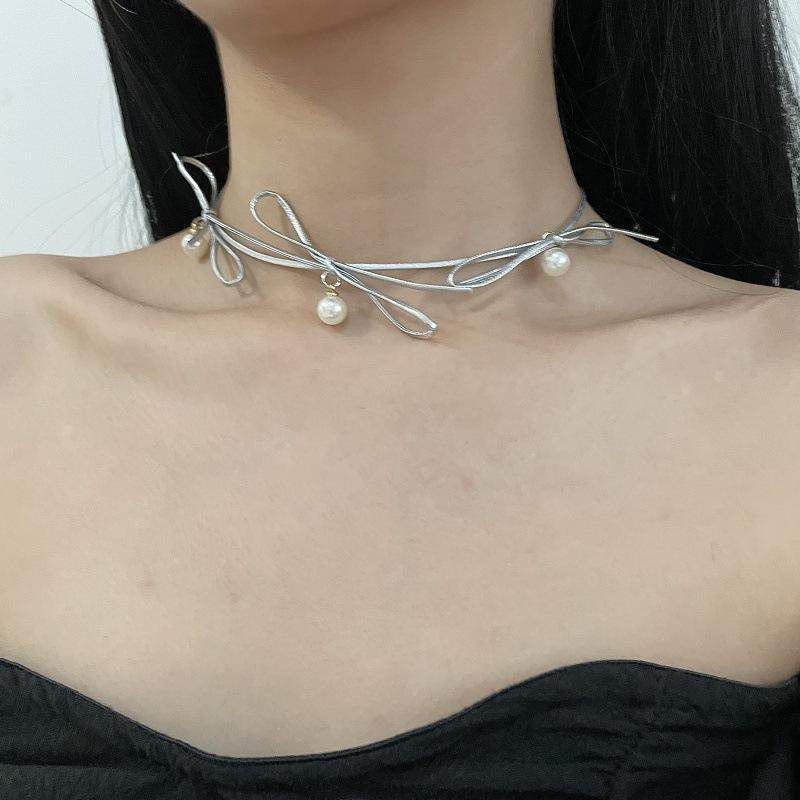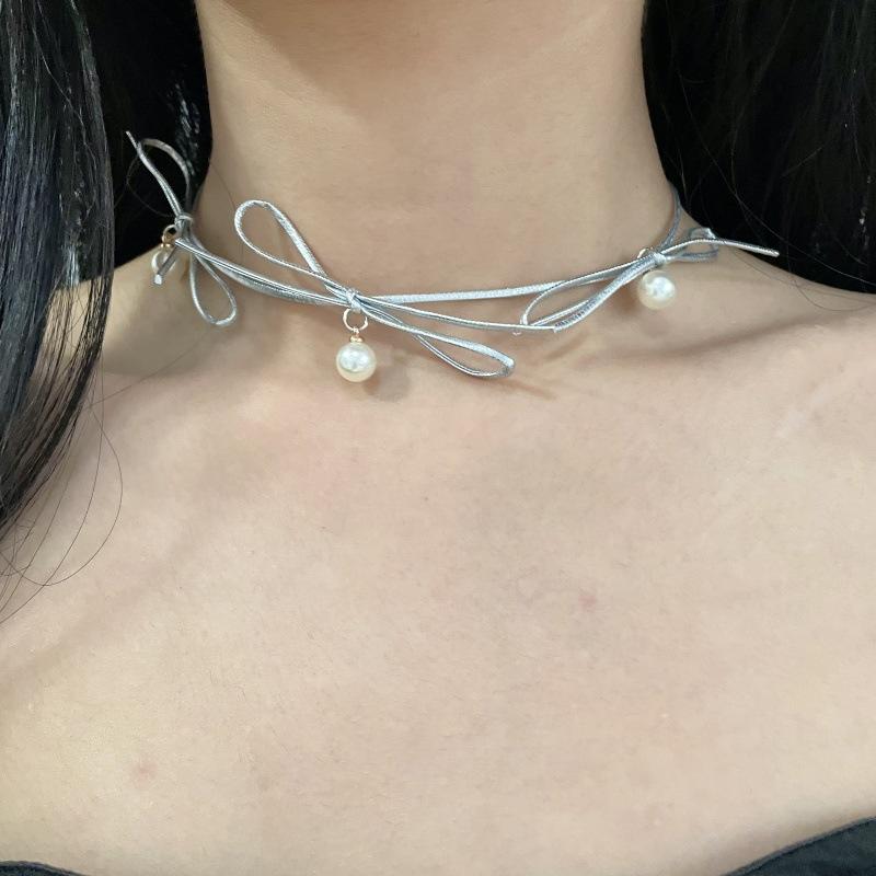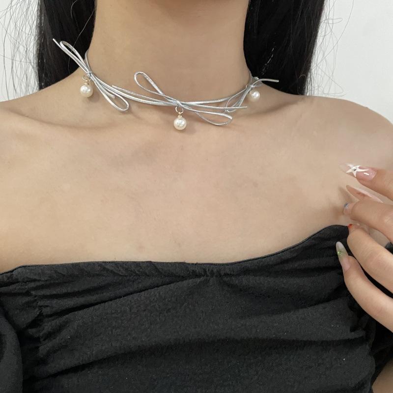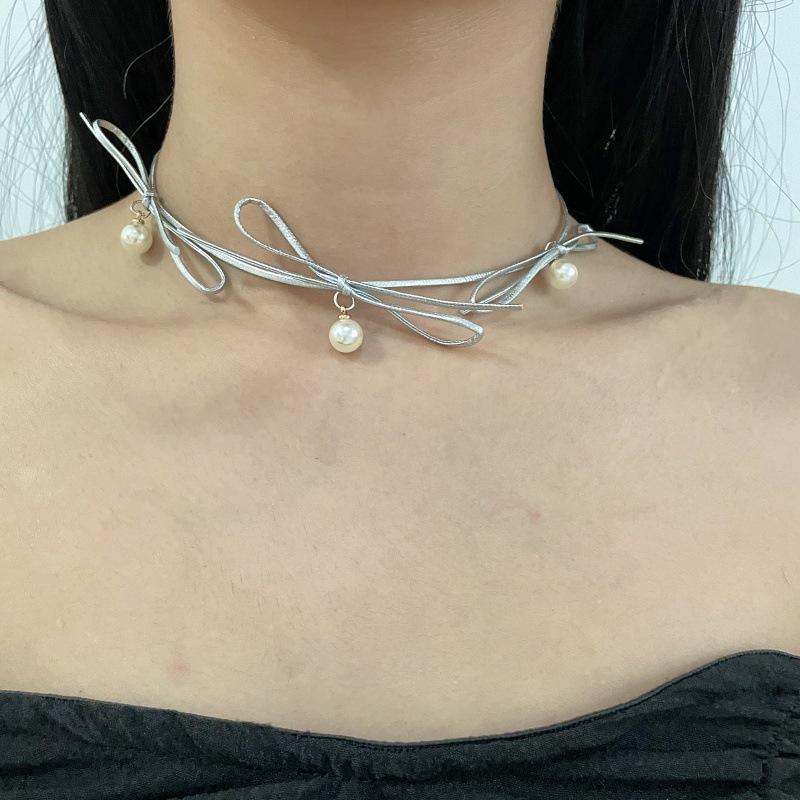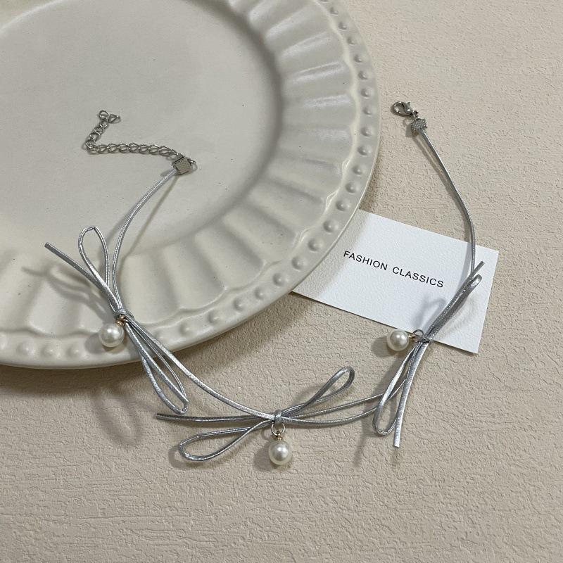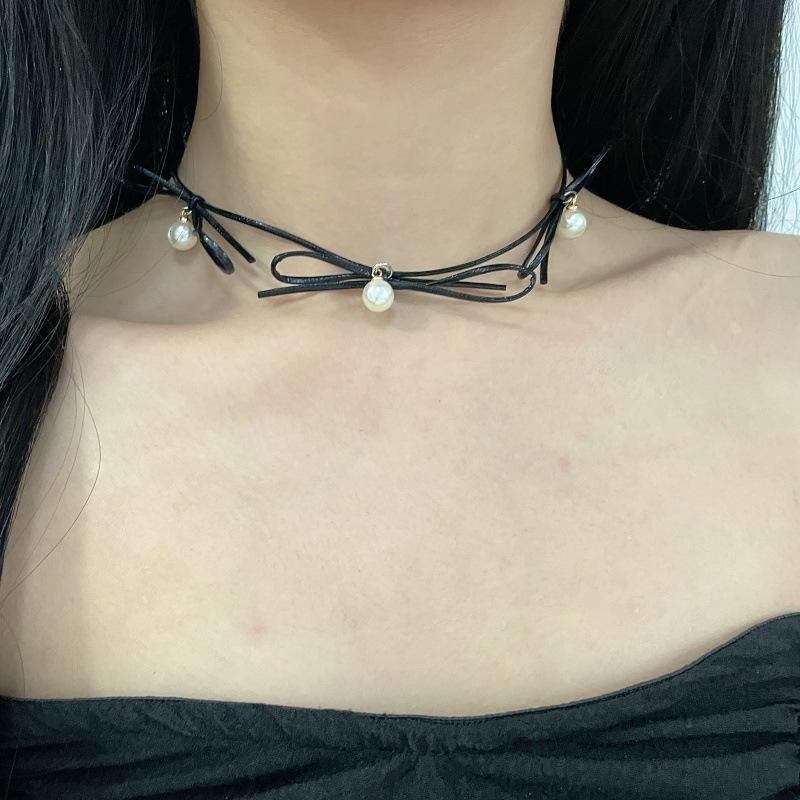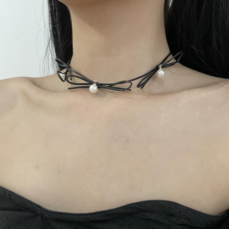 Compra Collar con colgante de cuerda de cuero con lazo y perlas para mujer, exquisito, ligero, de lujo, elegante, con diseño de nicho, nuevo estilo, cadena de clavícula. al por mayor en Joom.pro