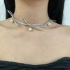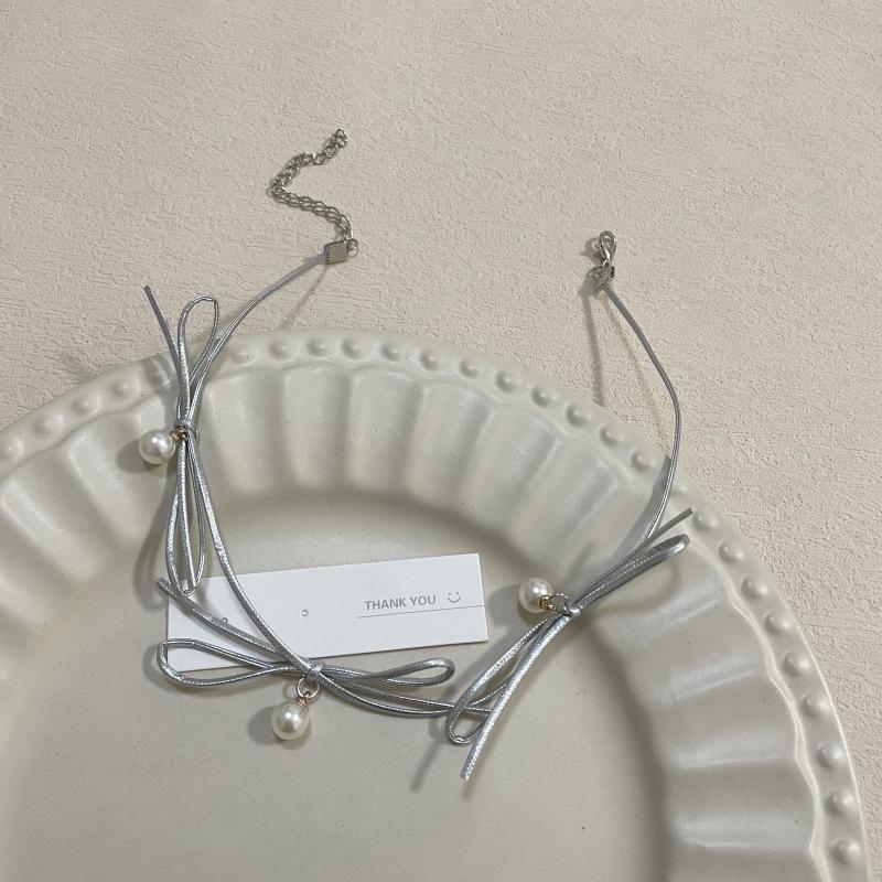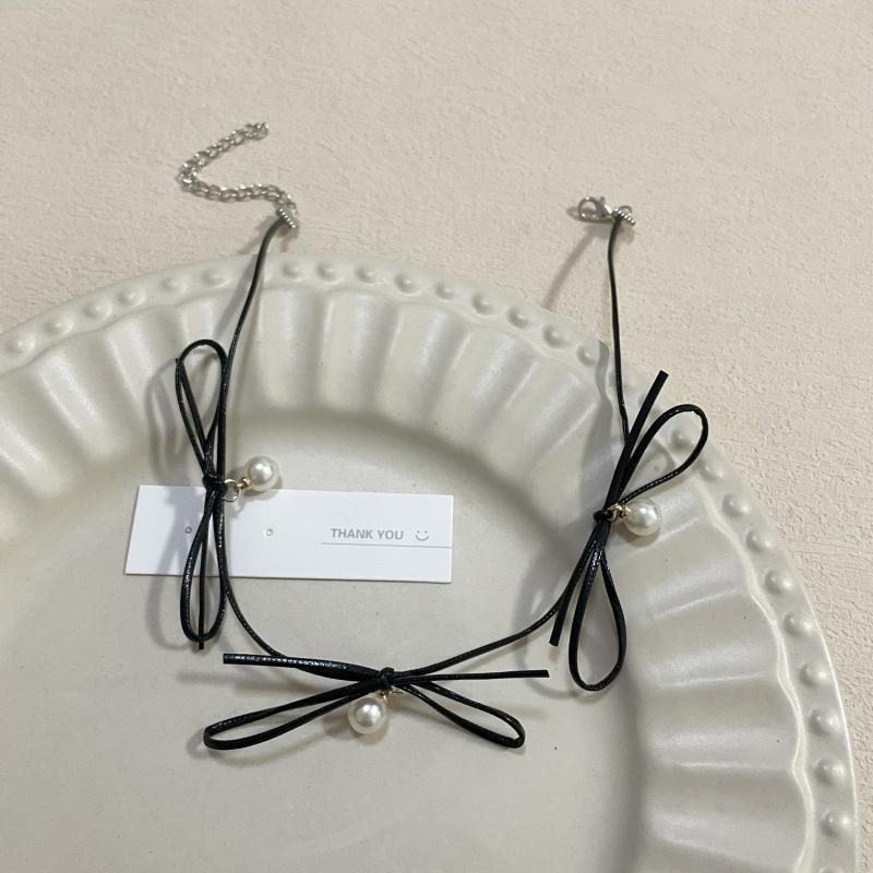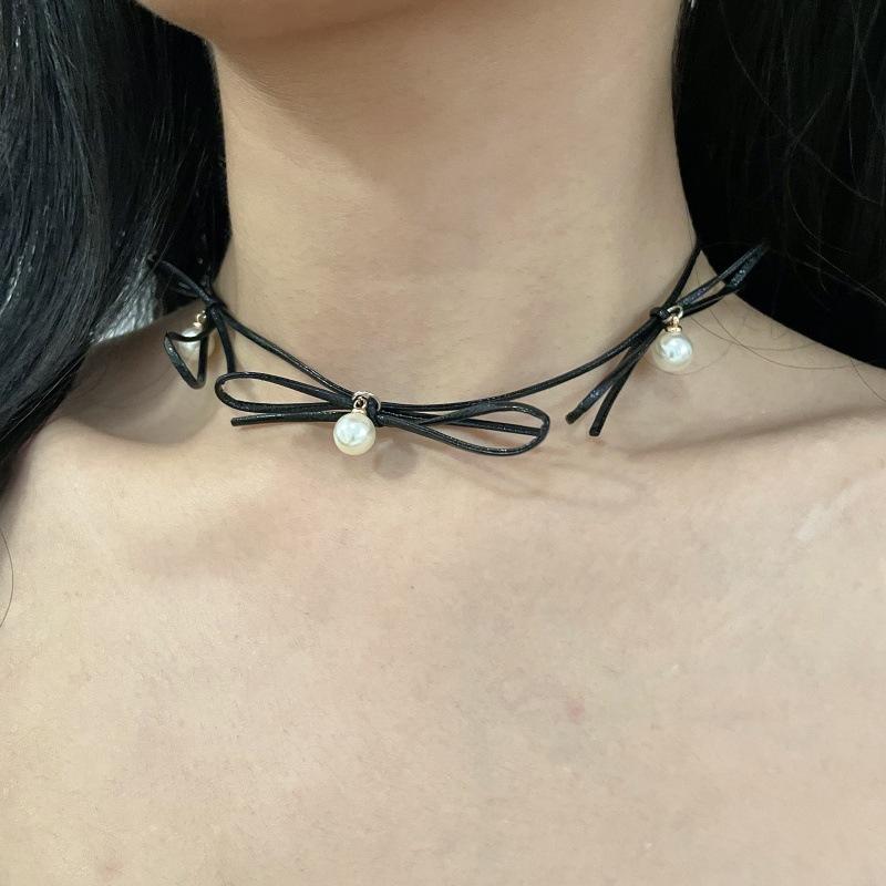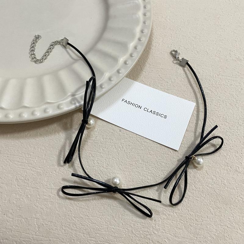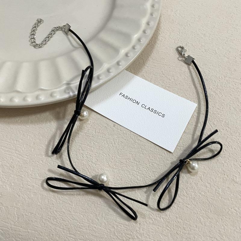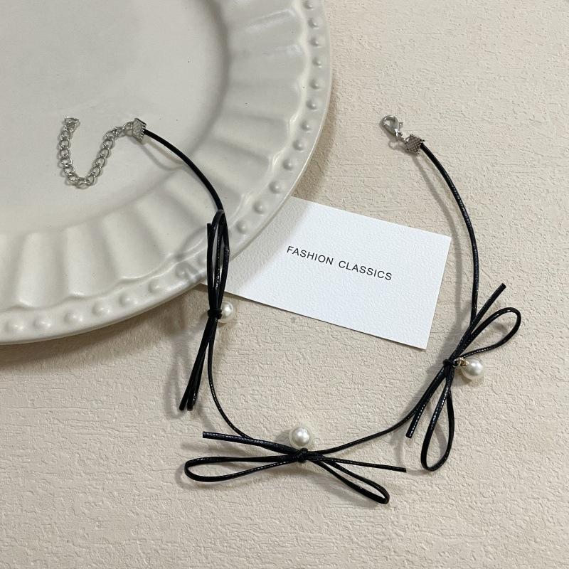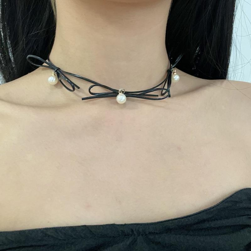 Collar con colgante de cuerda de cuero con lazo y perlas para mujer, exquisito, ligero, de lujo, elegante, con diseño de nicho, nuevo estilo, cadena de clavícula.
