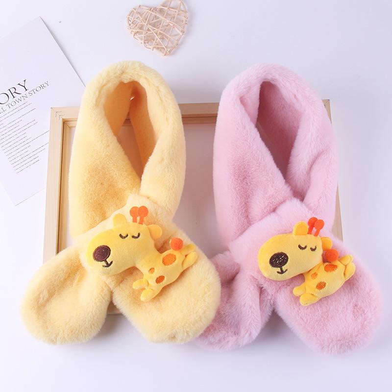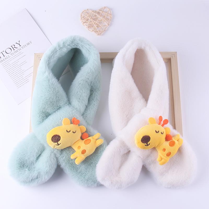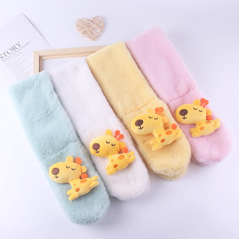 Bufanda para niños Otoño e Invierno Felpa Padre-hijo Navidad Lindo Jirafa Gruesa Dibujos animados Imitación Piel de Conejo Bufanda de Bebé Invierno